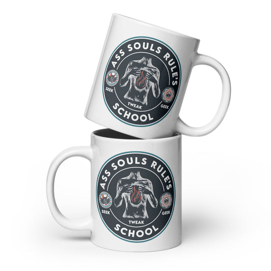 Ass Souls Rule's School white glossy mug