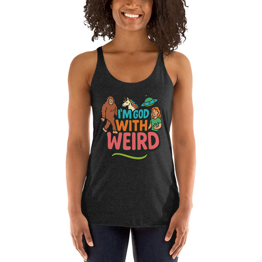 I'm Good With Weird Divinely Glitched Permanently Weird Women's Racerback Tank