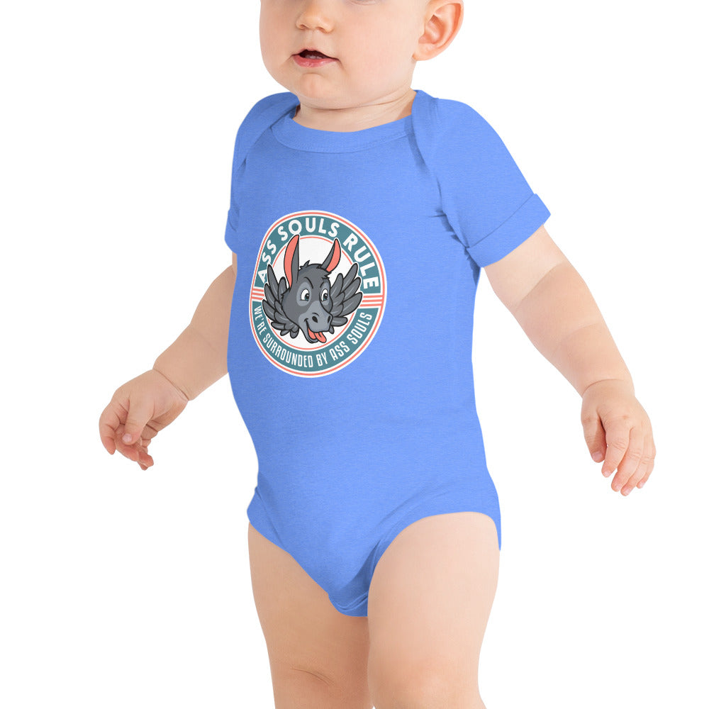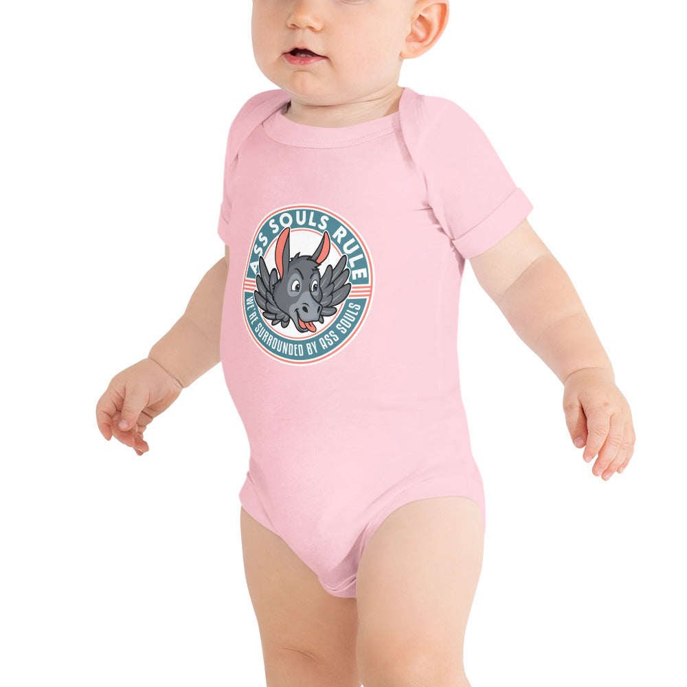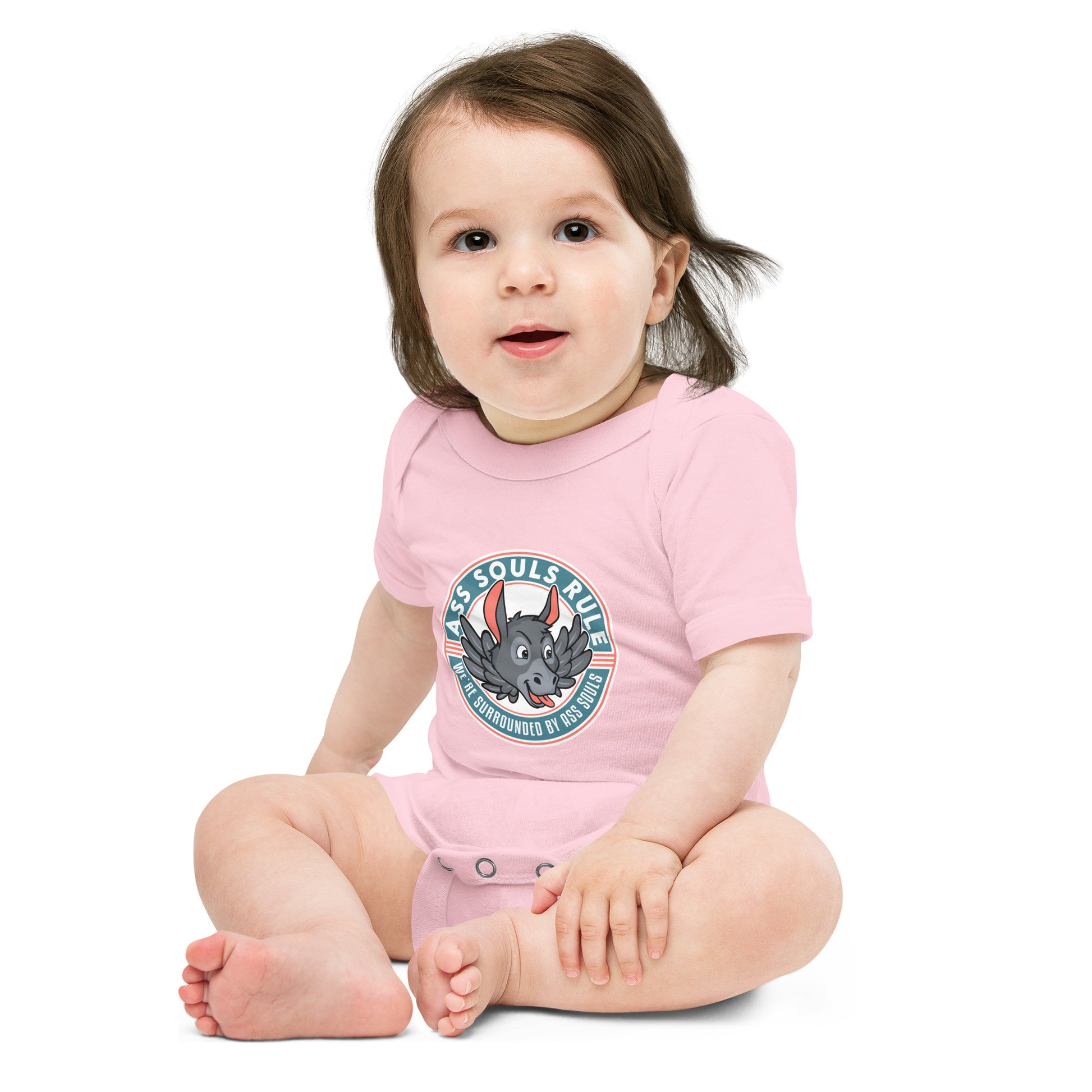 Dress your baby Ass Soul to the nines with this 100% cotton one piece for your own amusement. It has three snap leg closure for easy changing, a comfortable envelope neckline, and a beautiful print that's bound to get the baby all happy and giggling...and you as well!
