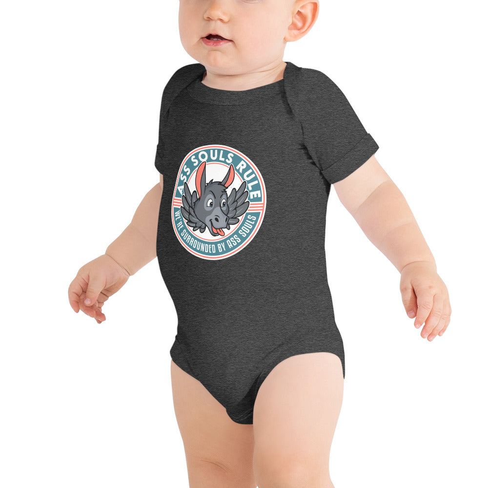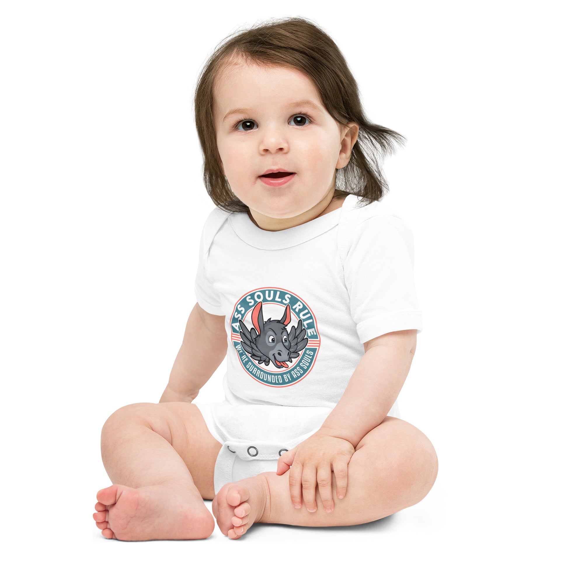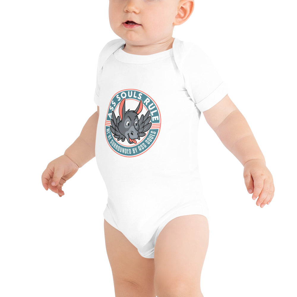 Dress your baby Ass Soul to the nines with this 100% cotton one piece for your own amusement. It has three snap leg closure for easy changing, a comfortable envelope neckline, and a beautiful print that's bound to get the baby all happy and giggling...and you as well!