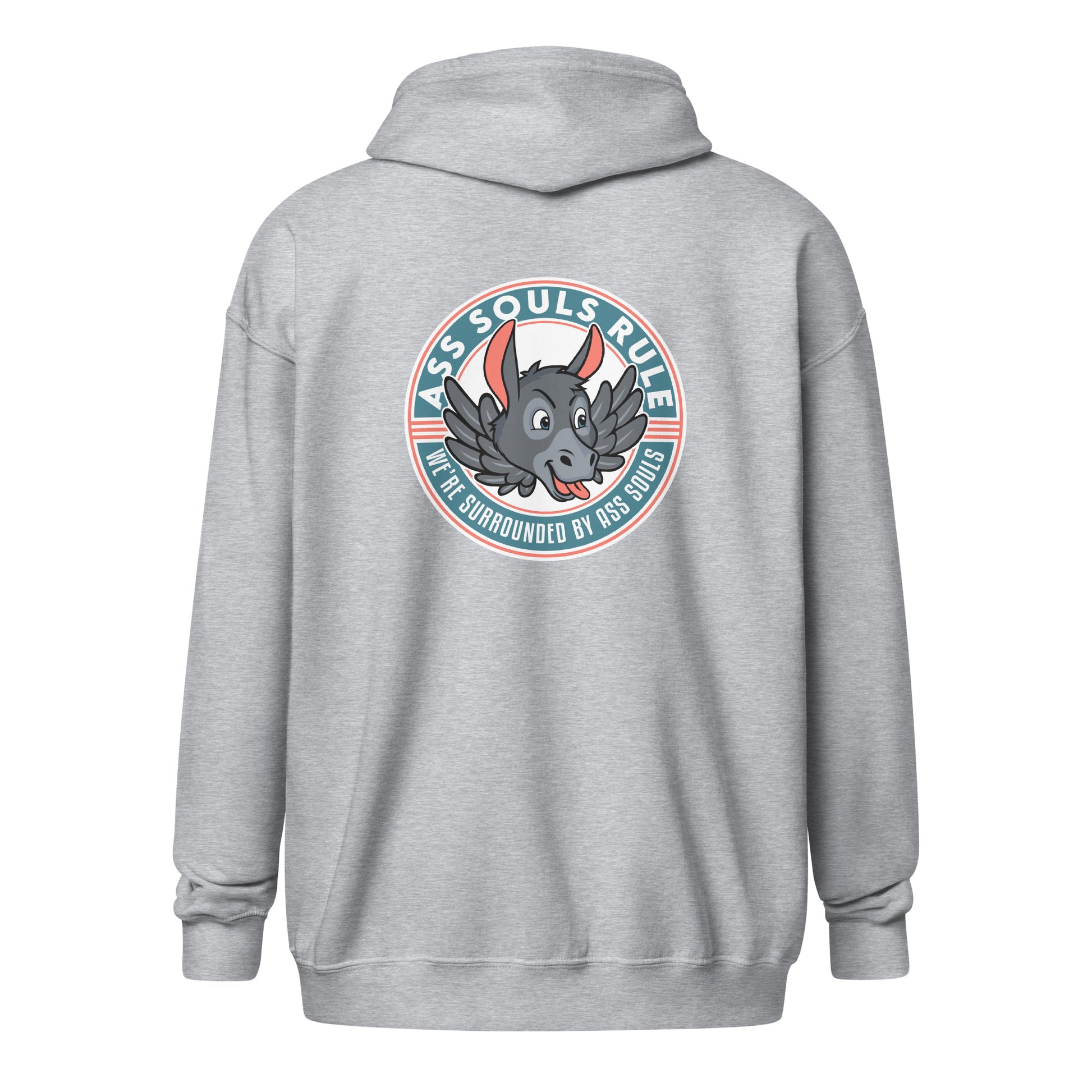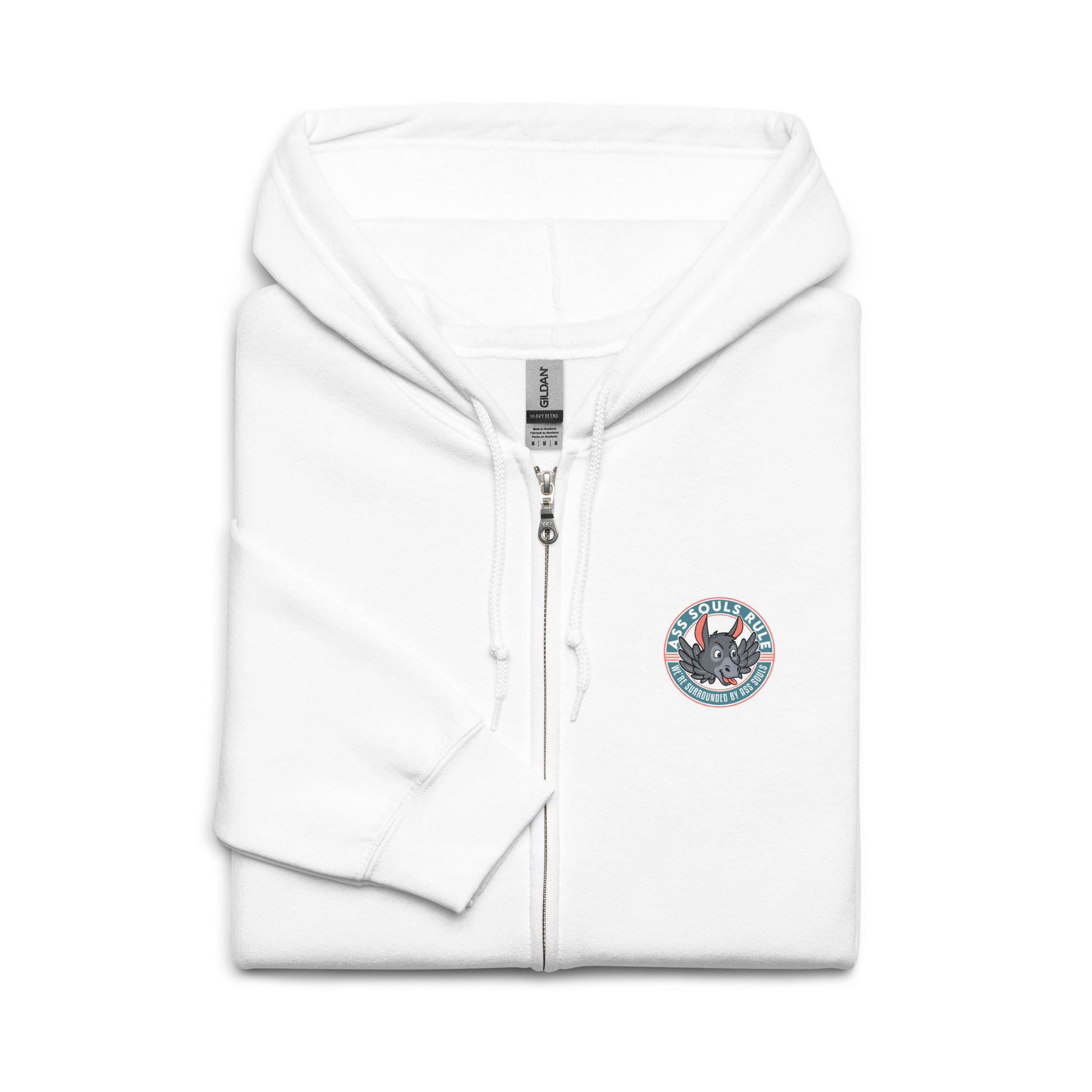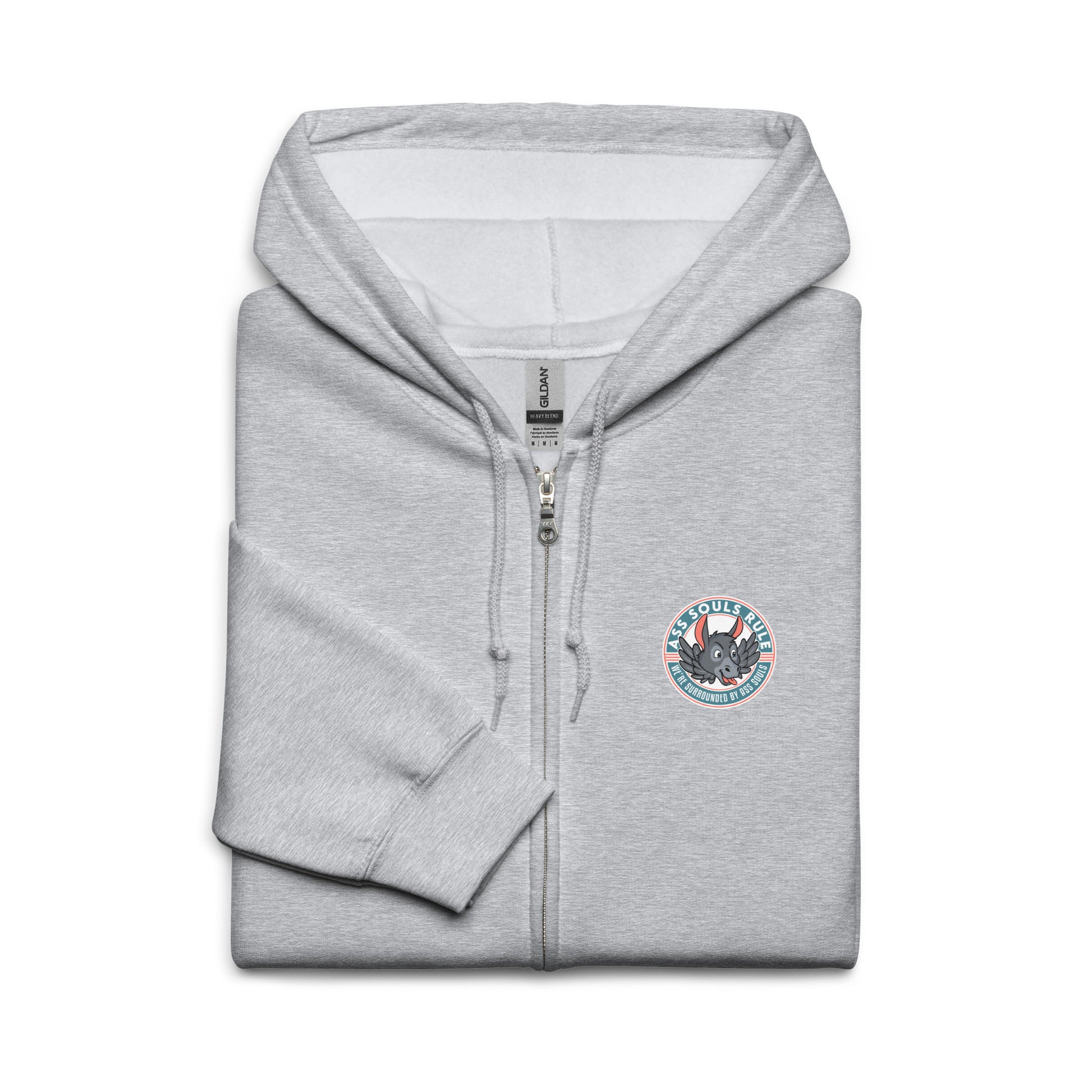 Designed with style and comfort in mind, this ASR hoodie will quickly become your new favorite. It’s made from soft fleece inside and outside, with a sturdy metal zipper, convenient front pockets, and a hood with color-matched drawstrings. Let this be a warning to Ass Souls!