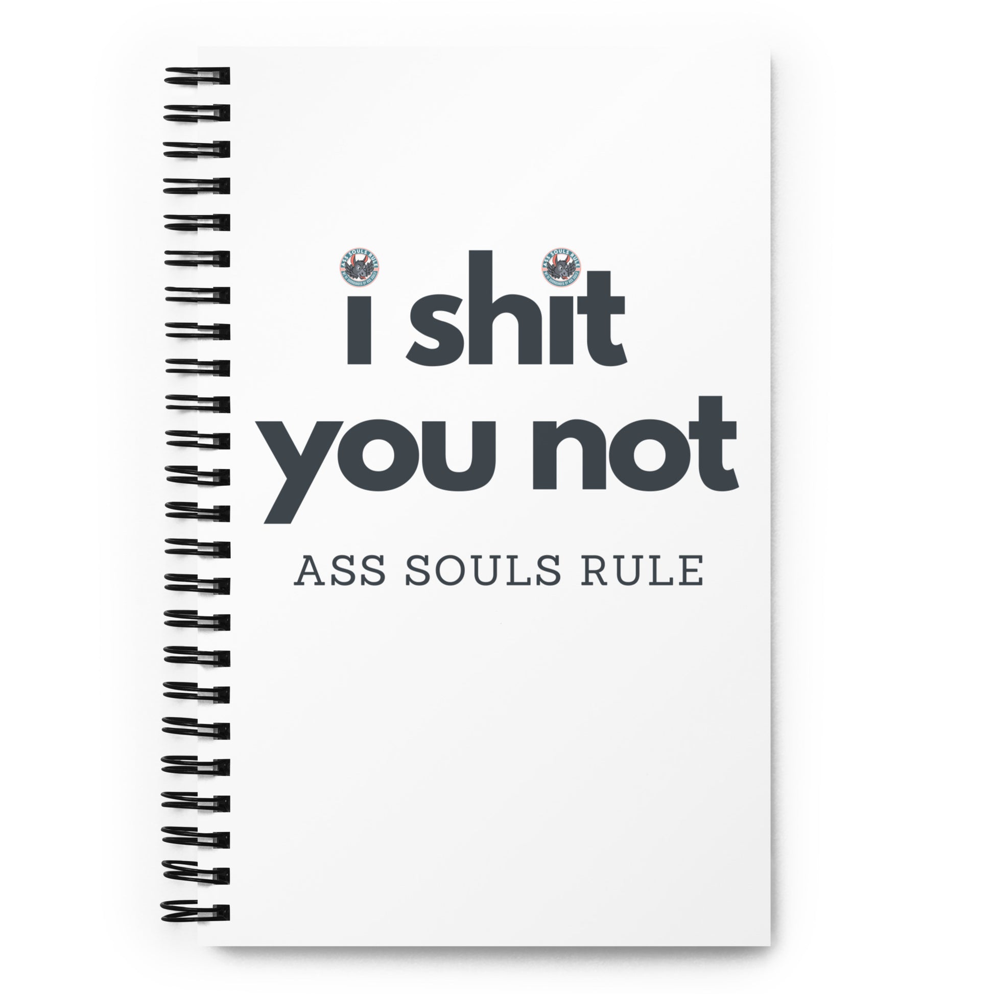 A good ASR notebook can help you with motivation to take more notes about your close encounters with Ass Souls, write down insights about what you discharged, or list future dreams that don't include those Ass Souls. This custom wire-bound notebook will be a great daily companion whenever you need to put your thoughts down on paper! I Shit You Not!