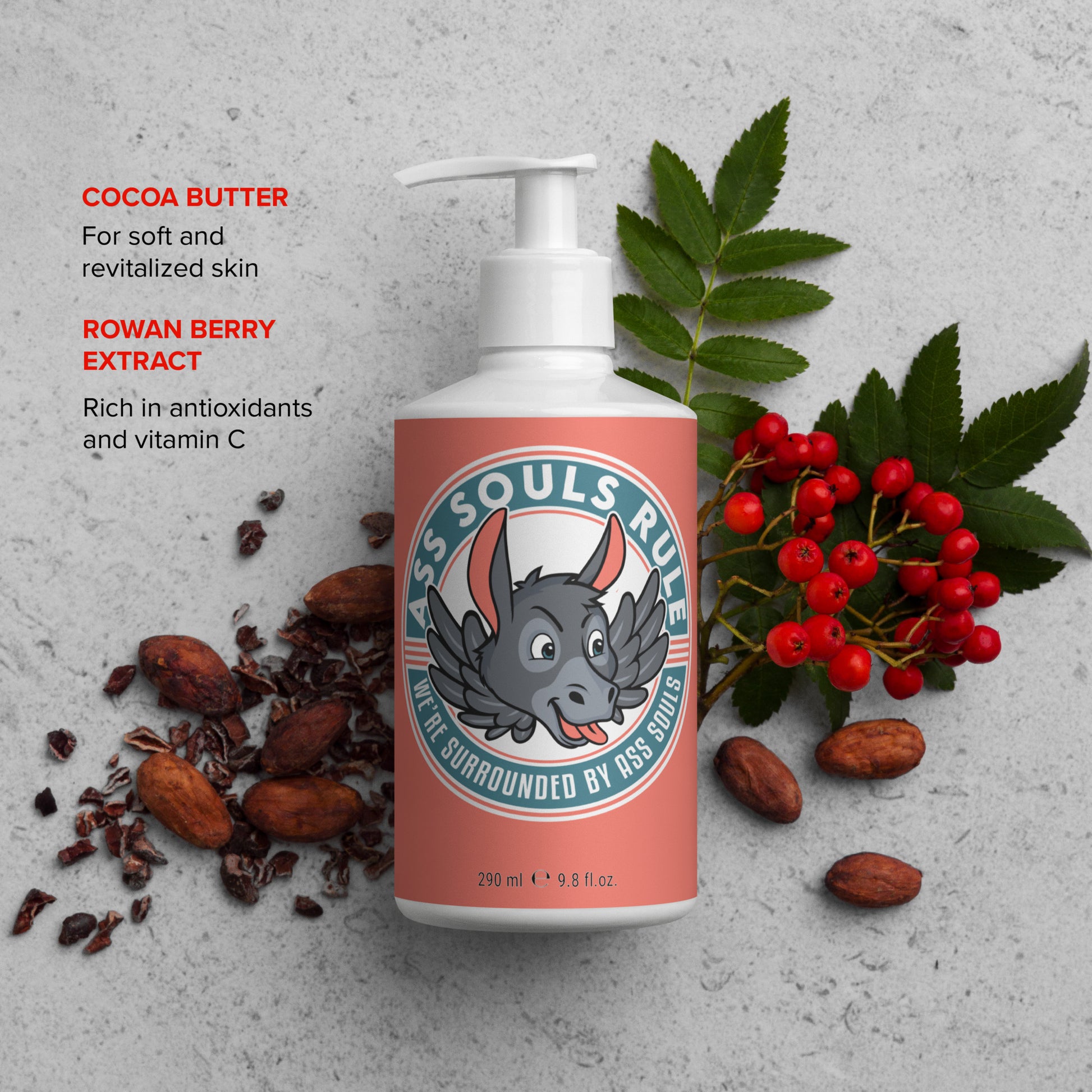 Moisturized skin=happy skin. Keep your skin hydrated with this refreshing hand and body lotion. Formulated with moisturizing ingredients and infused with fragrance from natural essential oils to calm you after washing your hands of your Ass Souls after you're done playing with them in The Game of Life, this will become your must-have daily lotion. Quickly soaks into the skin, leaving it soft and hydrated.