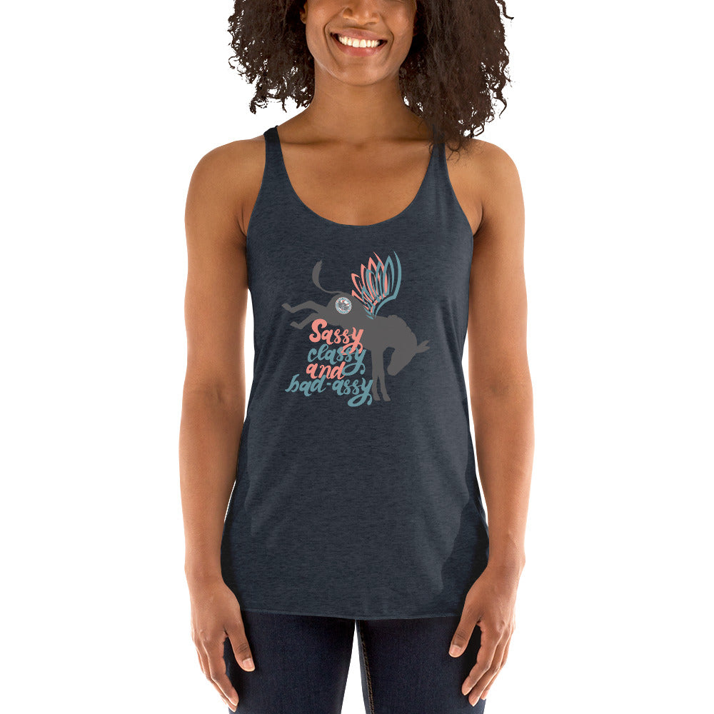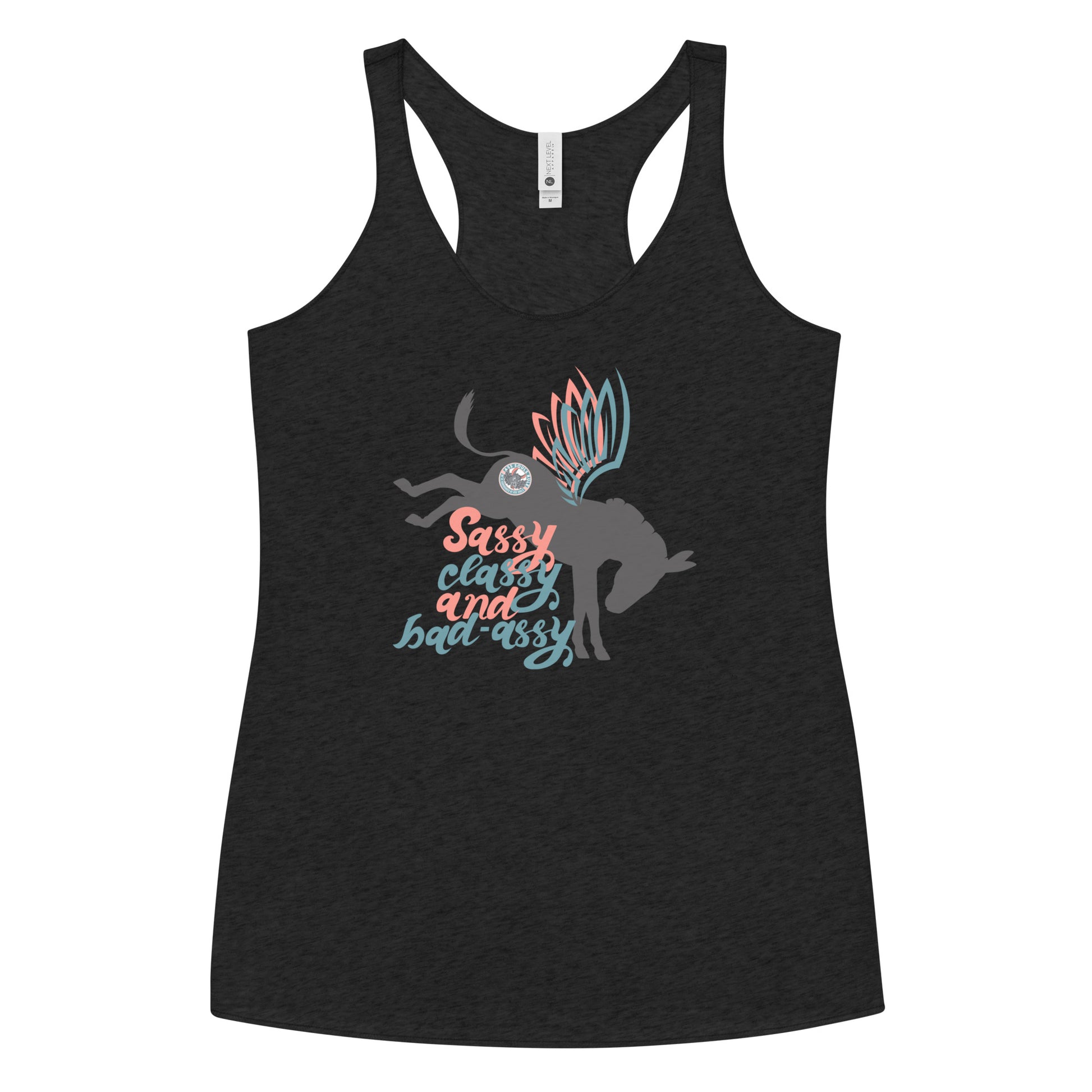 This racerback tank is soft, lightweight, and form-fitting with a flattering cut and raw edge seams for an edgy touch for every Sassy, Classy, & Bad Assy individual..