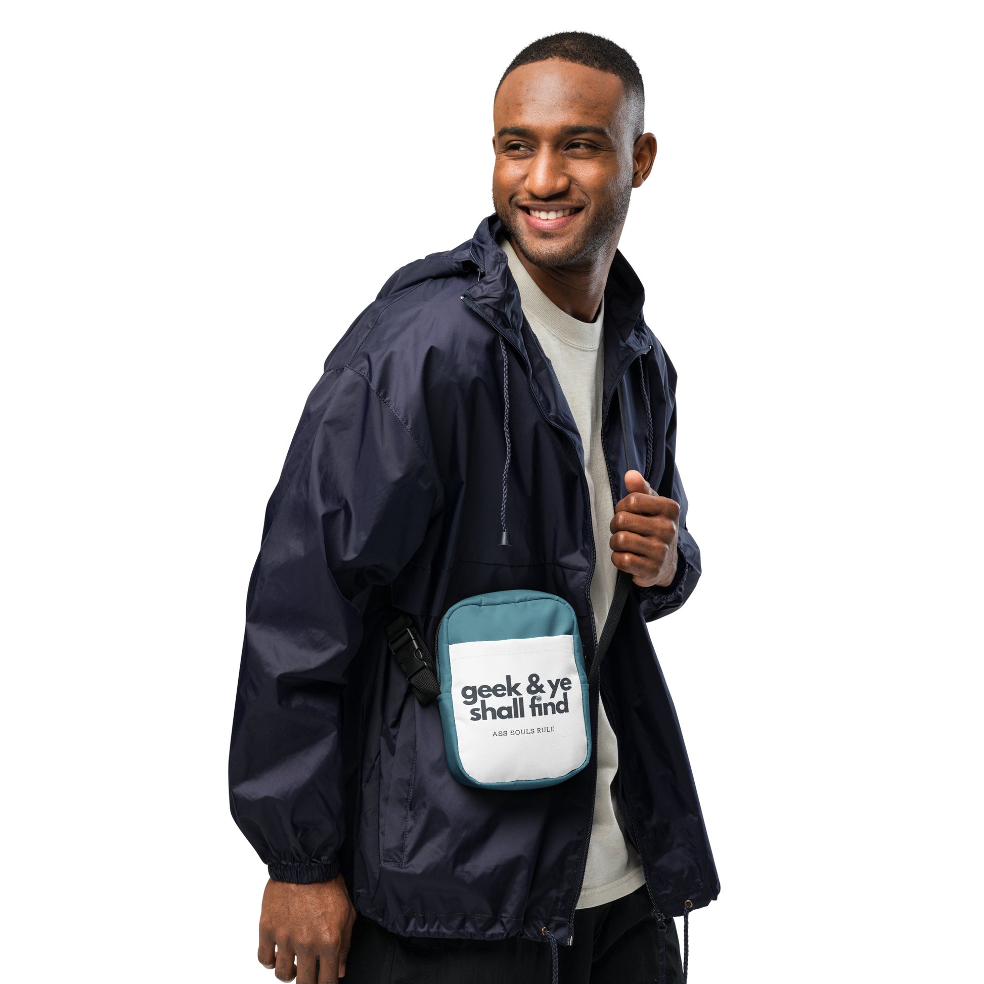 This teal Geek & Ye Shall Find bag is sturdy, stylish, and ready to go wherever you do. Go geek & find with this by your side! With adjustable straps and two spacious pockets, it’s the ultimate accessory for conferences, festivals, and everyday geeking.