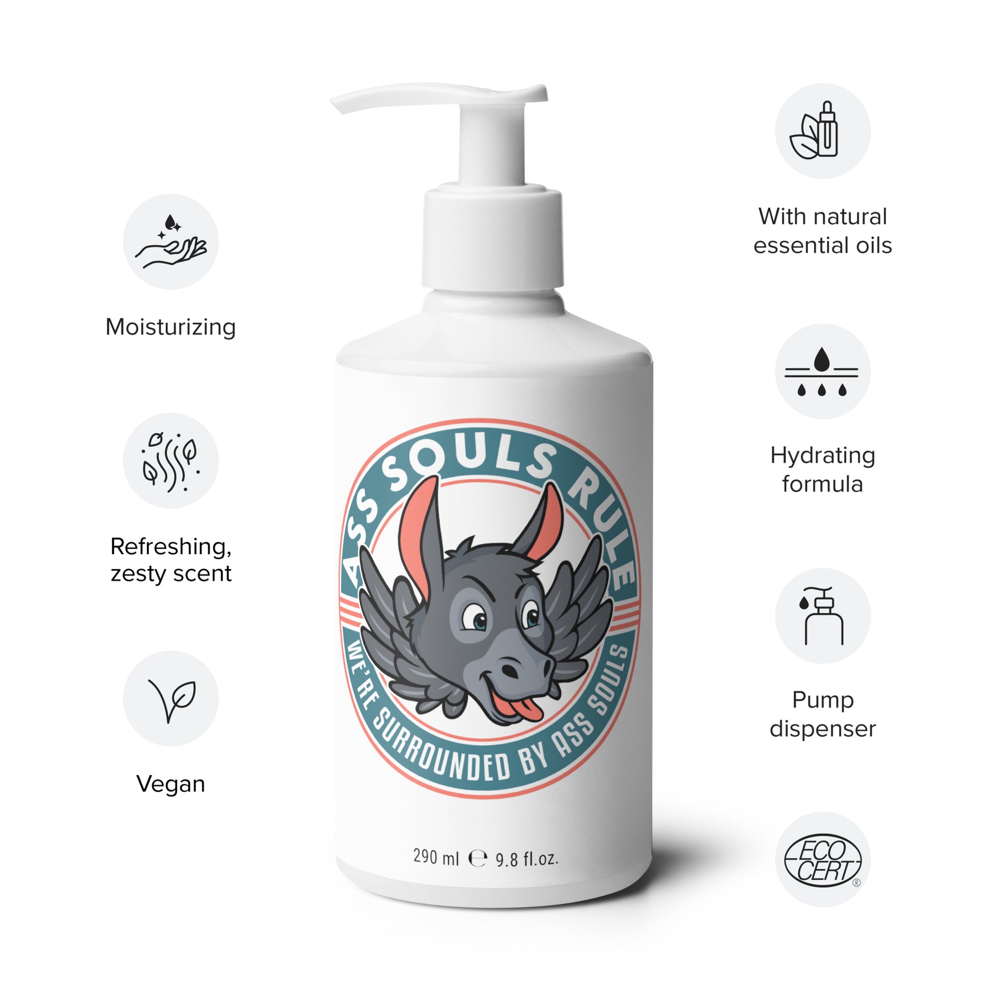 Moisturized skin=happy skin. Keep your skin hydrated with this refreshing hand and body lotion. Formulated with moisturizing ingredients and infused with fragrance from natural essential oils to calm you after washing your hands of your Ass Souls, this will become your must-have daily lotion. Quickly soaks into the skin, leaving it soft and hydrated.