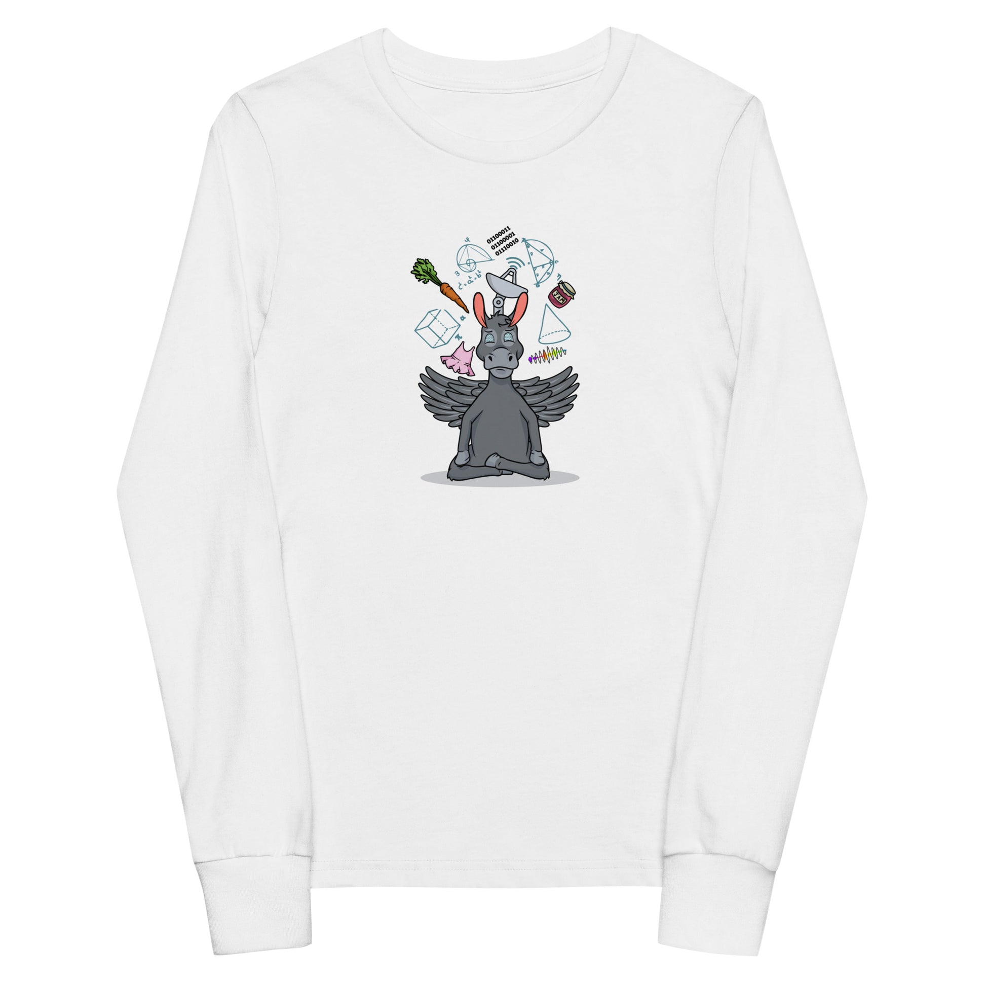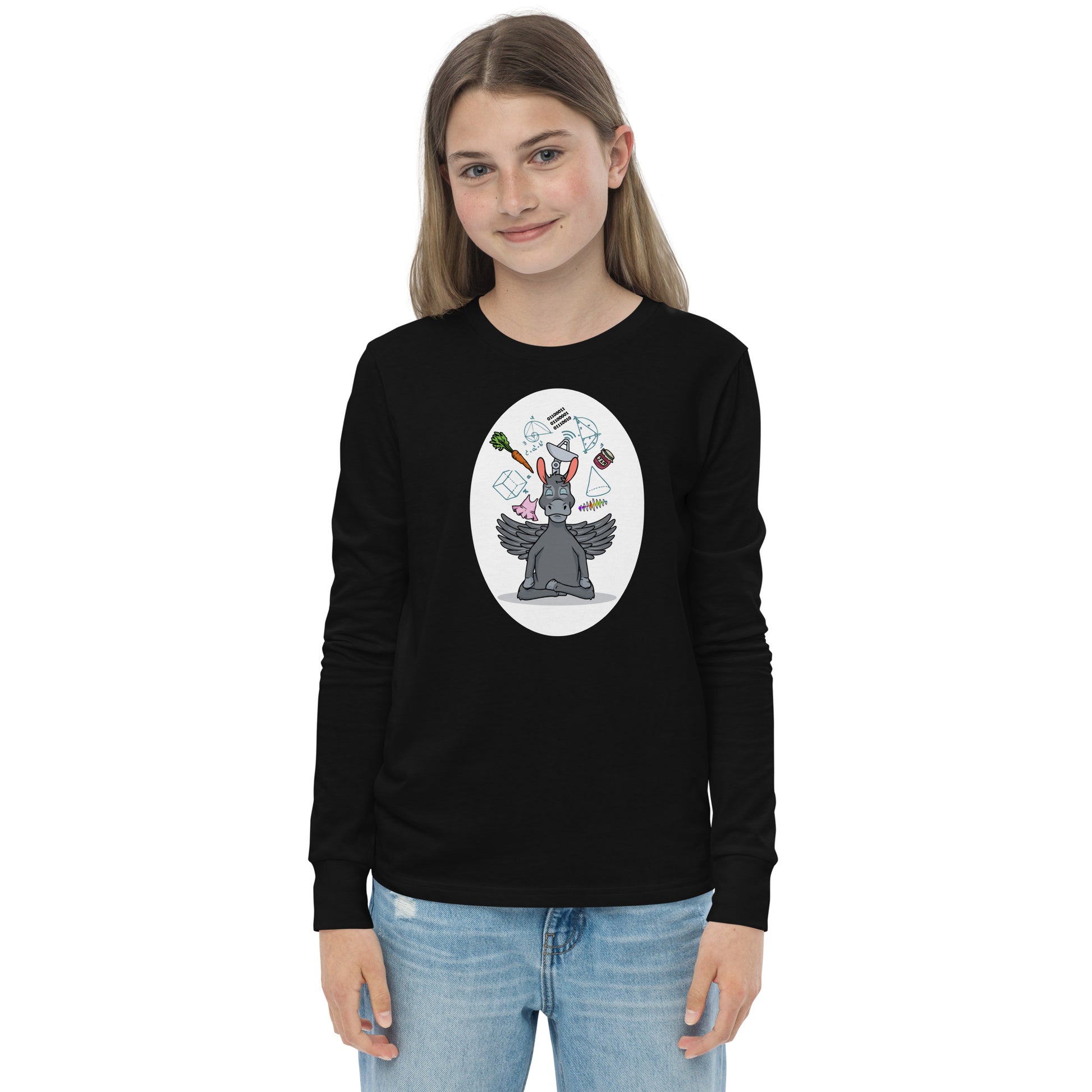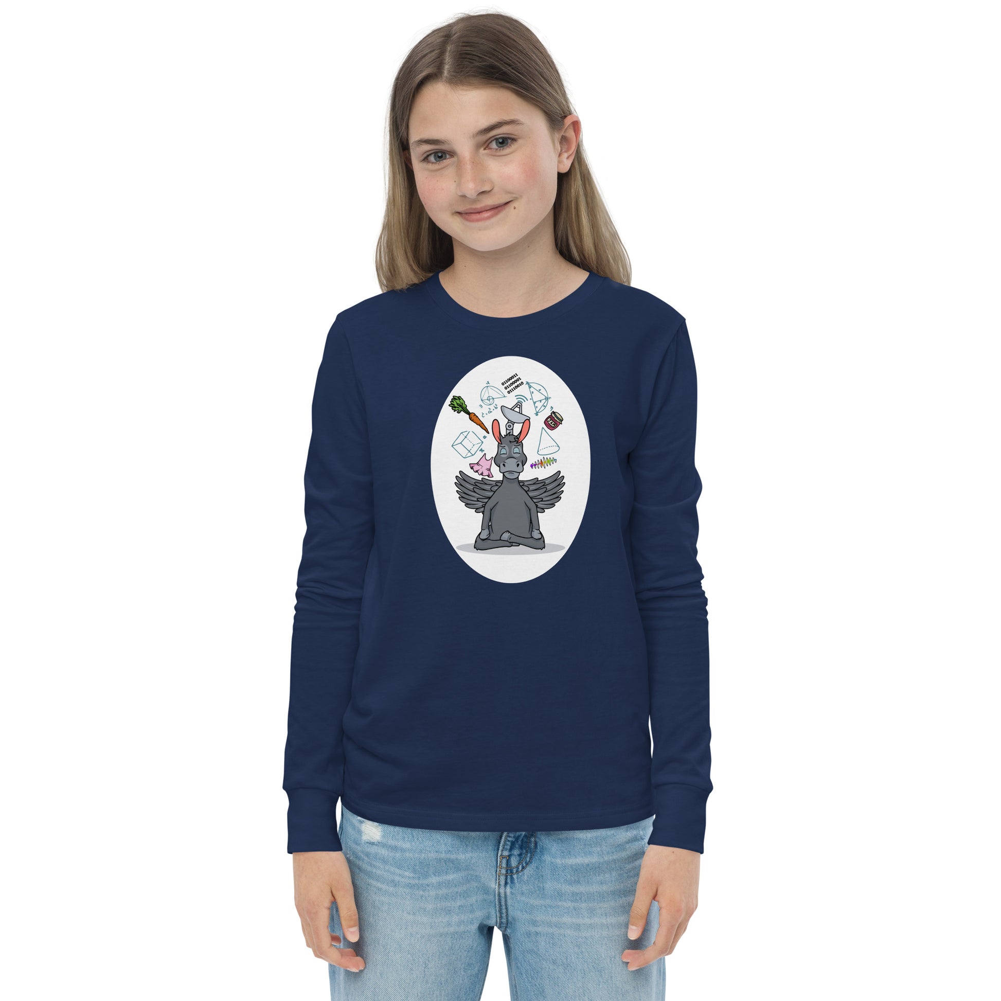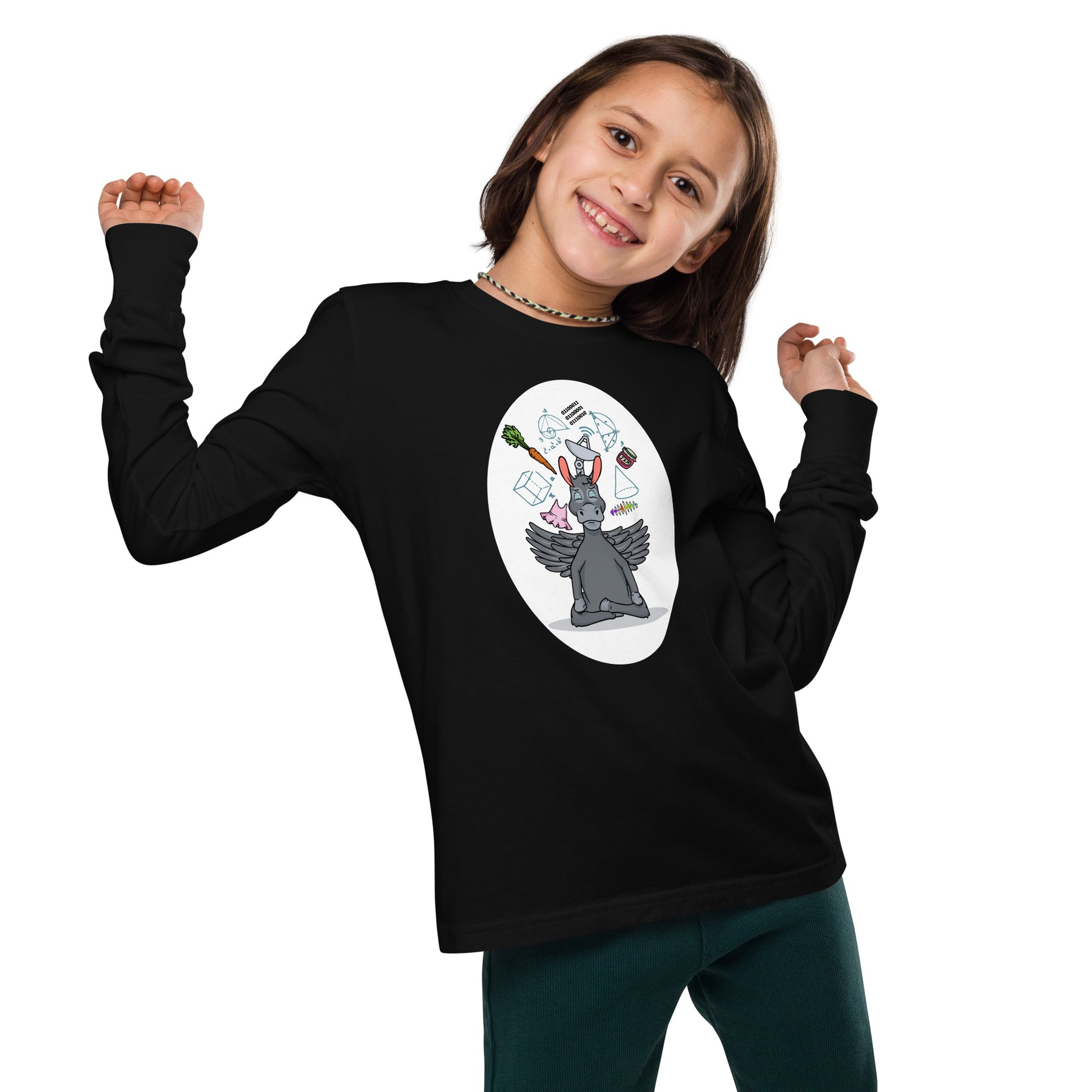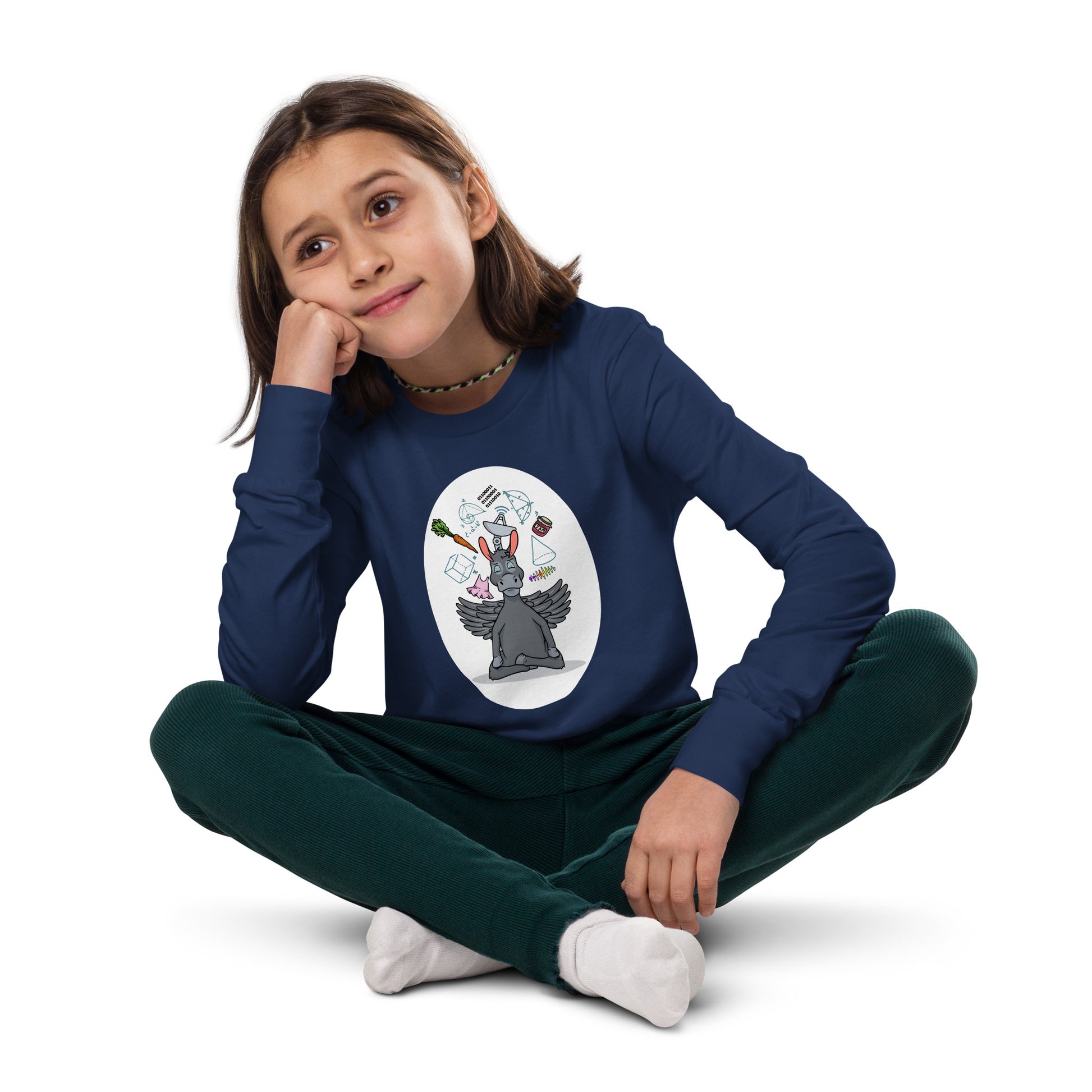 The Youth Long Sleeve Shirt is made of Airlume combed and ringspun cotton, which is known for its softness and durability. The shirt has a regular fit, classic crew neck, and ribbed cuff.