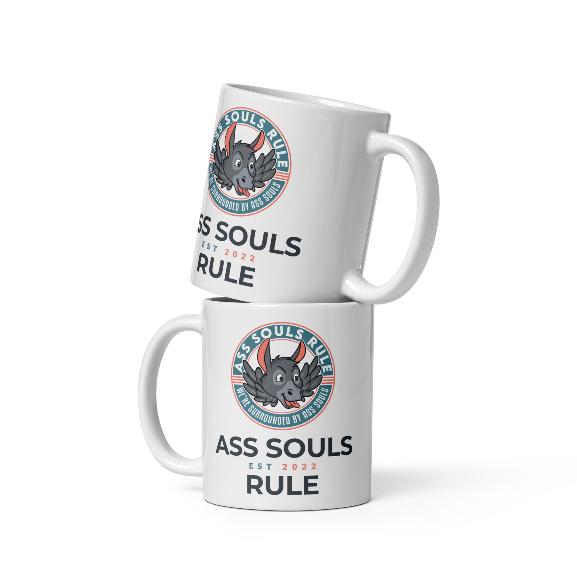 Whether you're drinking your morning coffee, evening tea, or something in between—this mug's for you noting when Ass Souls Rule was created! It's sturdy and glossy with a vivid print that'll withstand the microwave and dishwasher.