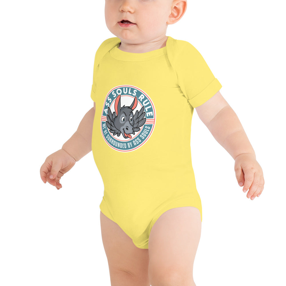 Dress your baby Ass Soul to the nines with this 100% cotton one piece for your own amusement. It has three snap leg closure for easy changing, a comfortable envelope neckline, and a beautiful print that's bound to get the baby all happy and giggling...and you as well!