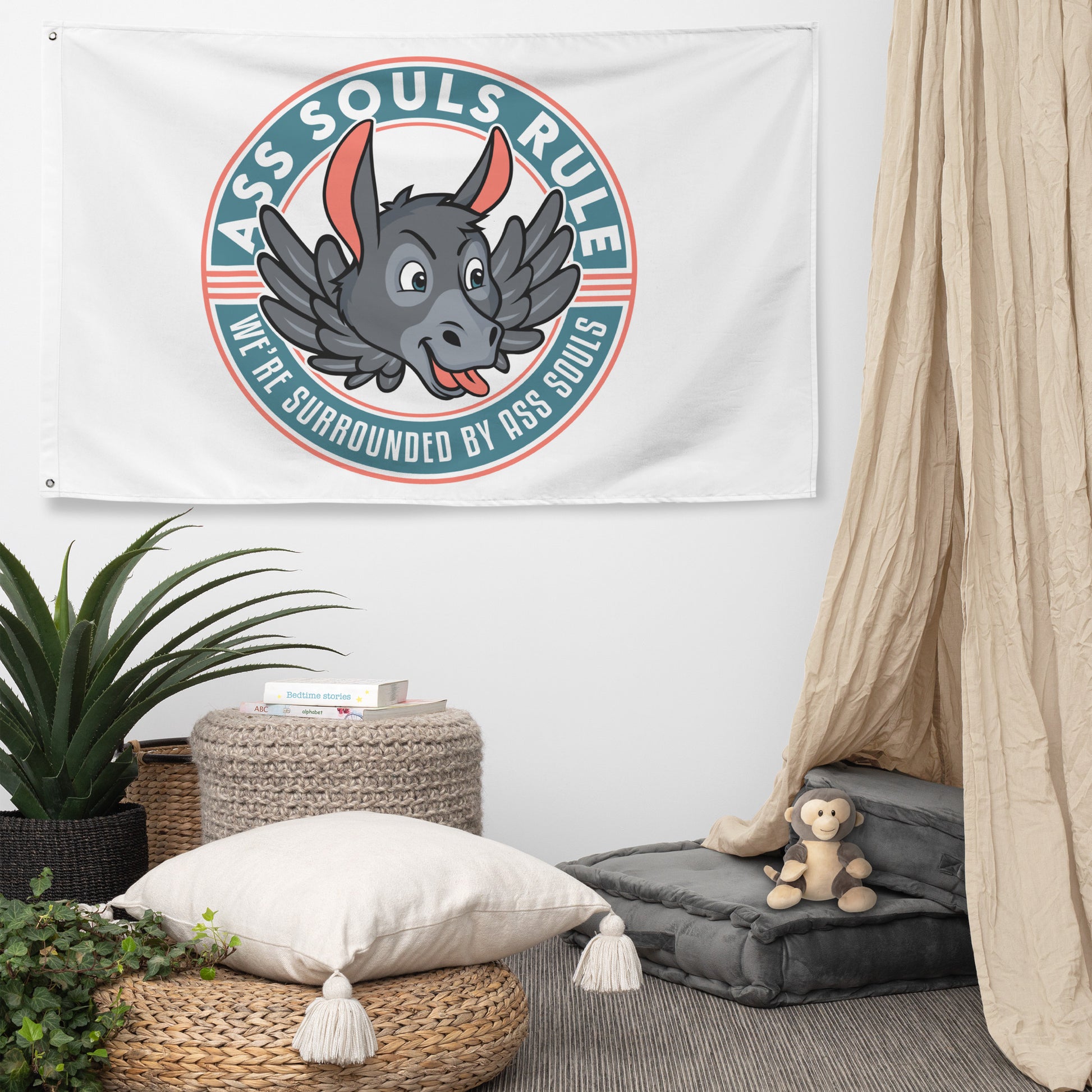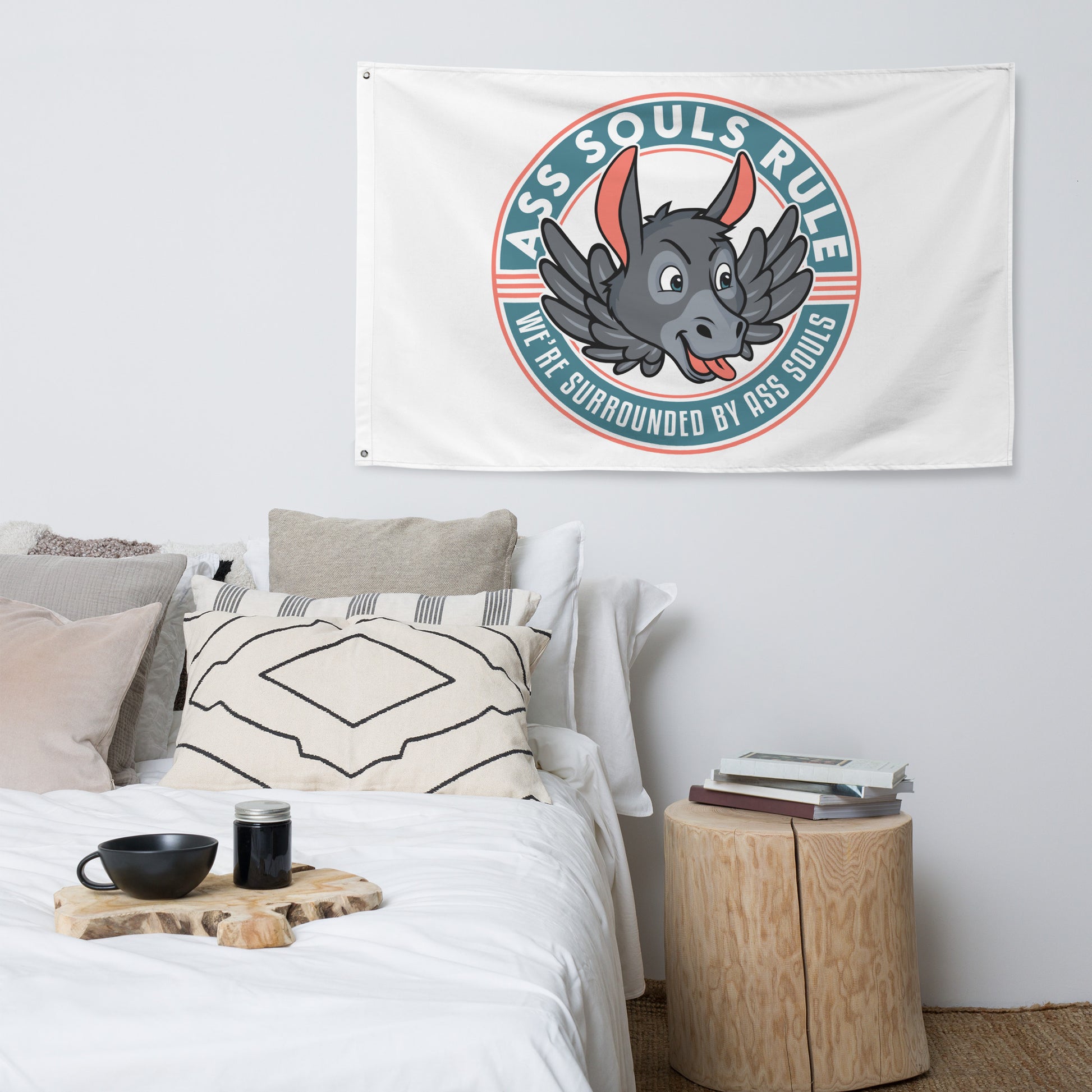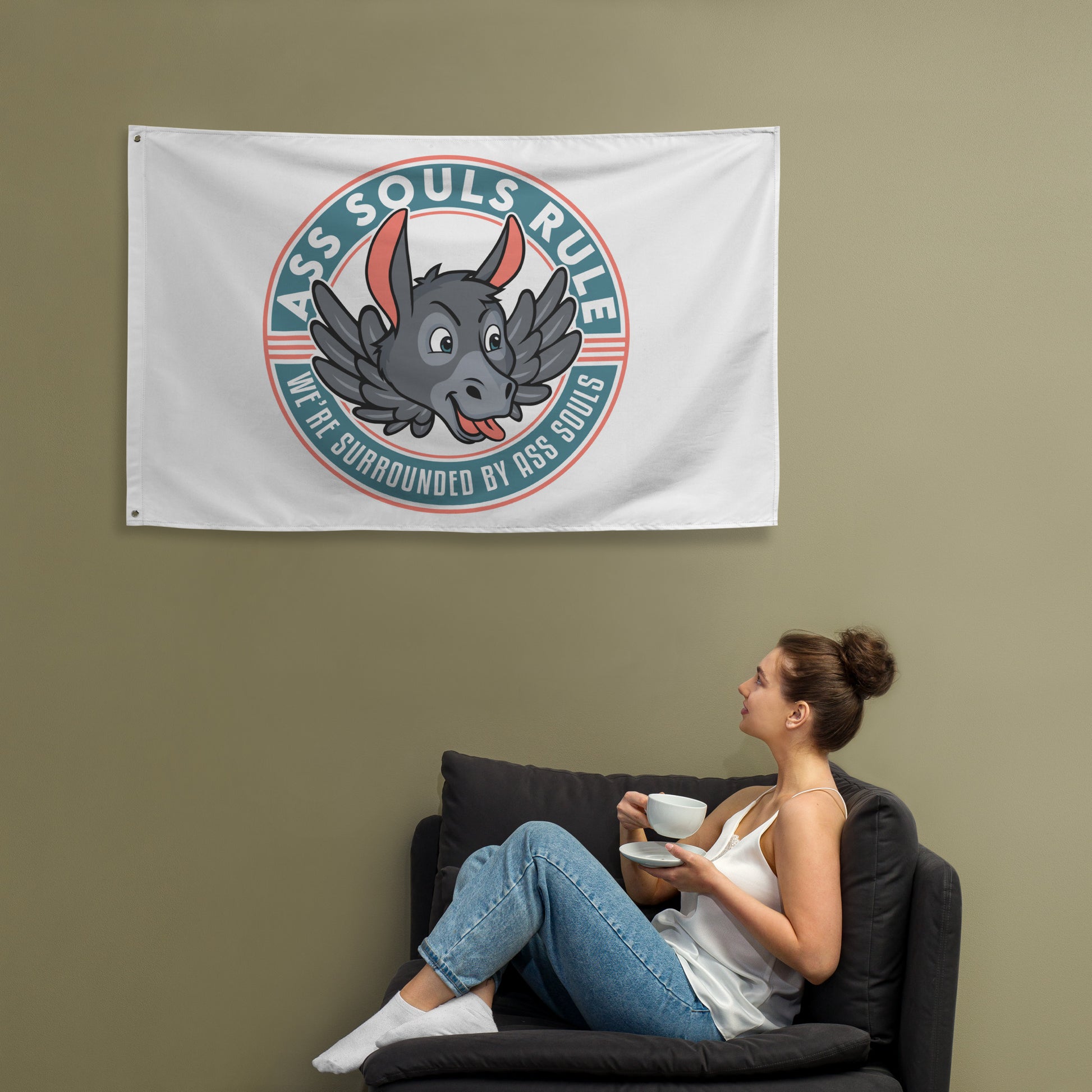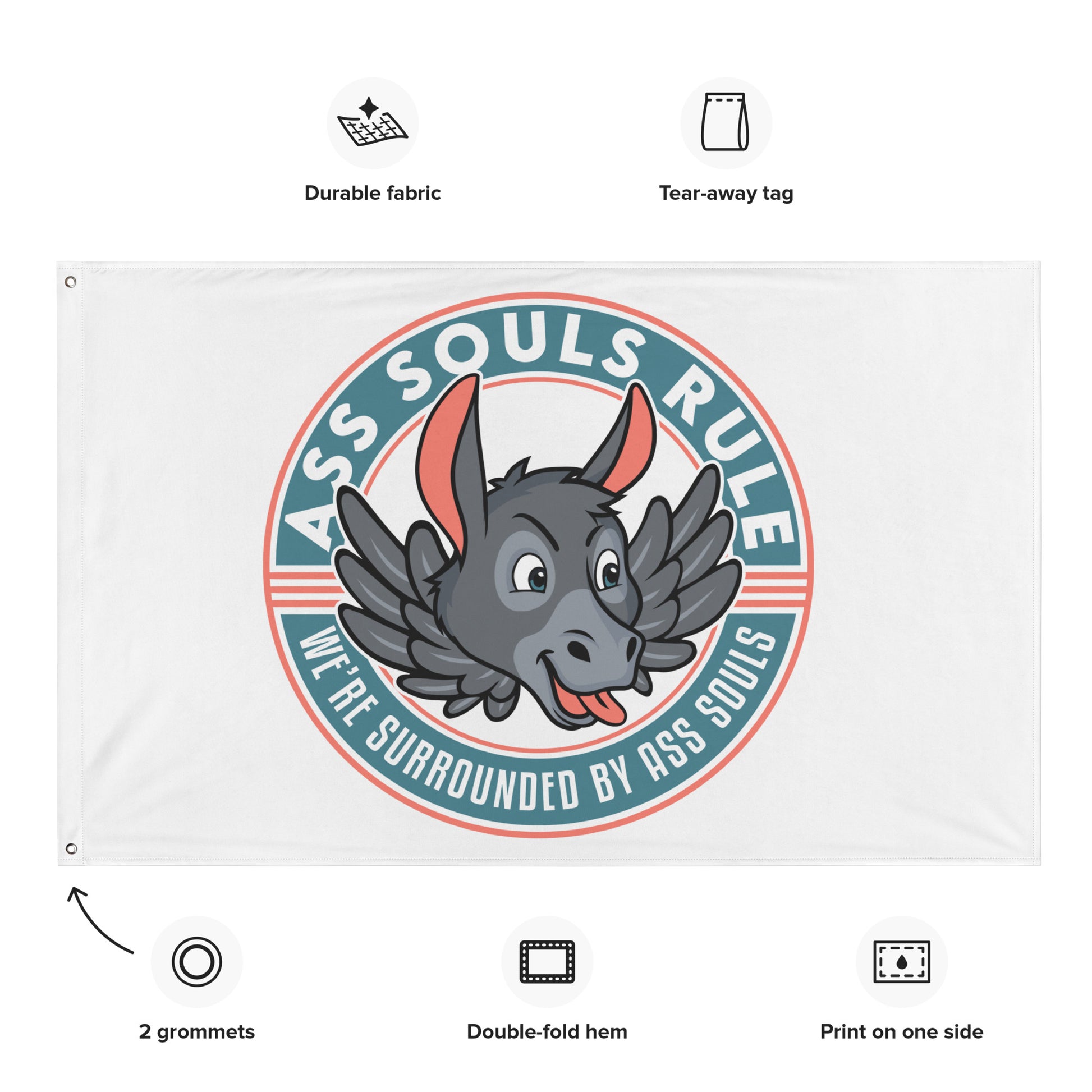 Who doesn’t want to turn their house into a warning to Ass Souls that you are wise to their ways? Brighten up your space by adding this ASR flag to your wall, boat, or anywhere else! Your flag won’t crease or shrink thanks to the polyester material and will last a long time.