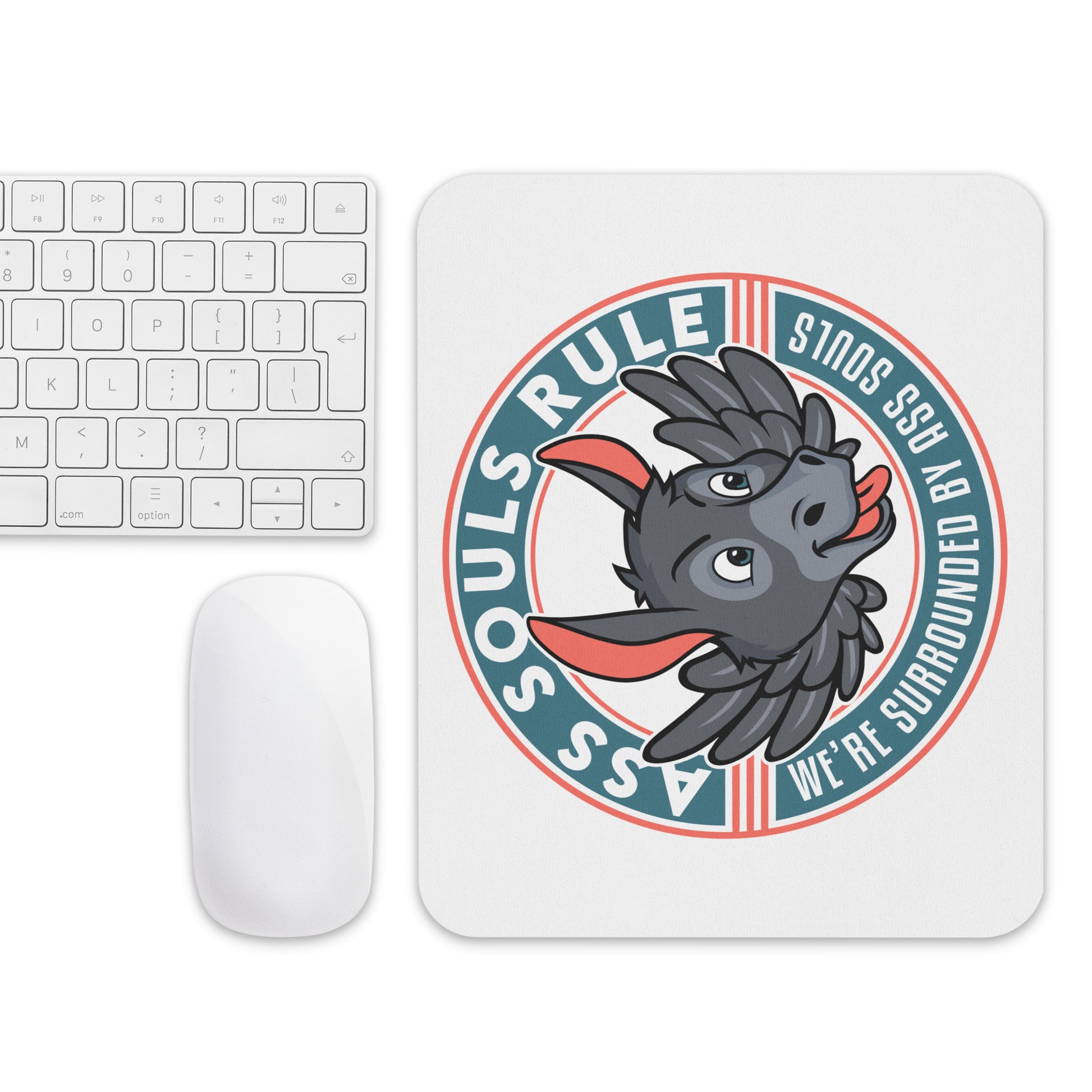 Every mouse needs a good mouse pad! Our mouse pad offers supreme grip and effortless mouse movement, and it does so with ASR style because you must never forget that we're surrounded by Ass Souls whether in the office, at family gatherings, and especially online.