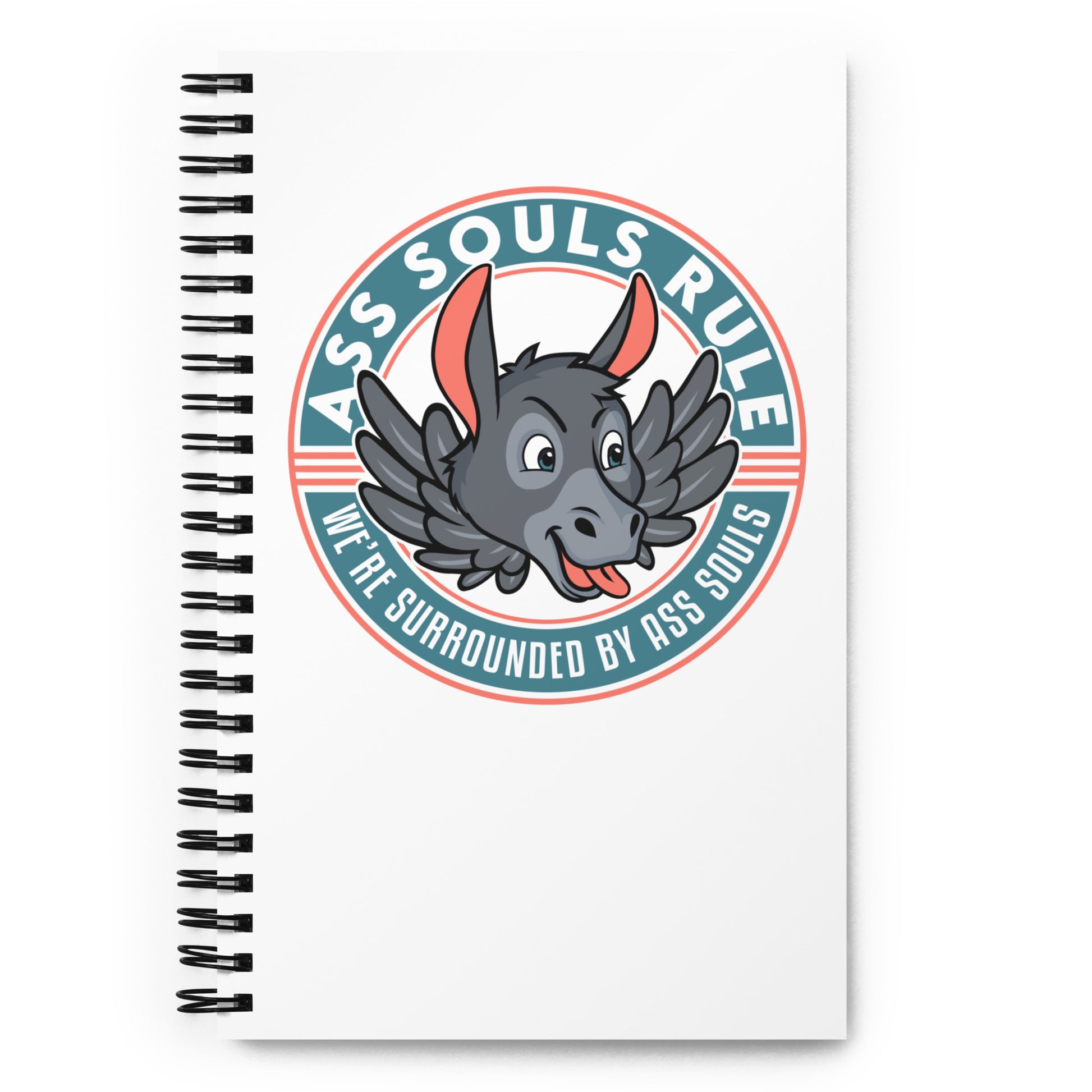 A good notebook can help you with motivation to take more notes, write down ideas, or list future dreams... and help you reflect on any Ass Souls during your day! This custom wire-bound notebook will be a great daily companion whenever you need to put your thoughts down on paper and increase your Ass Souls savvy!