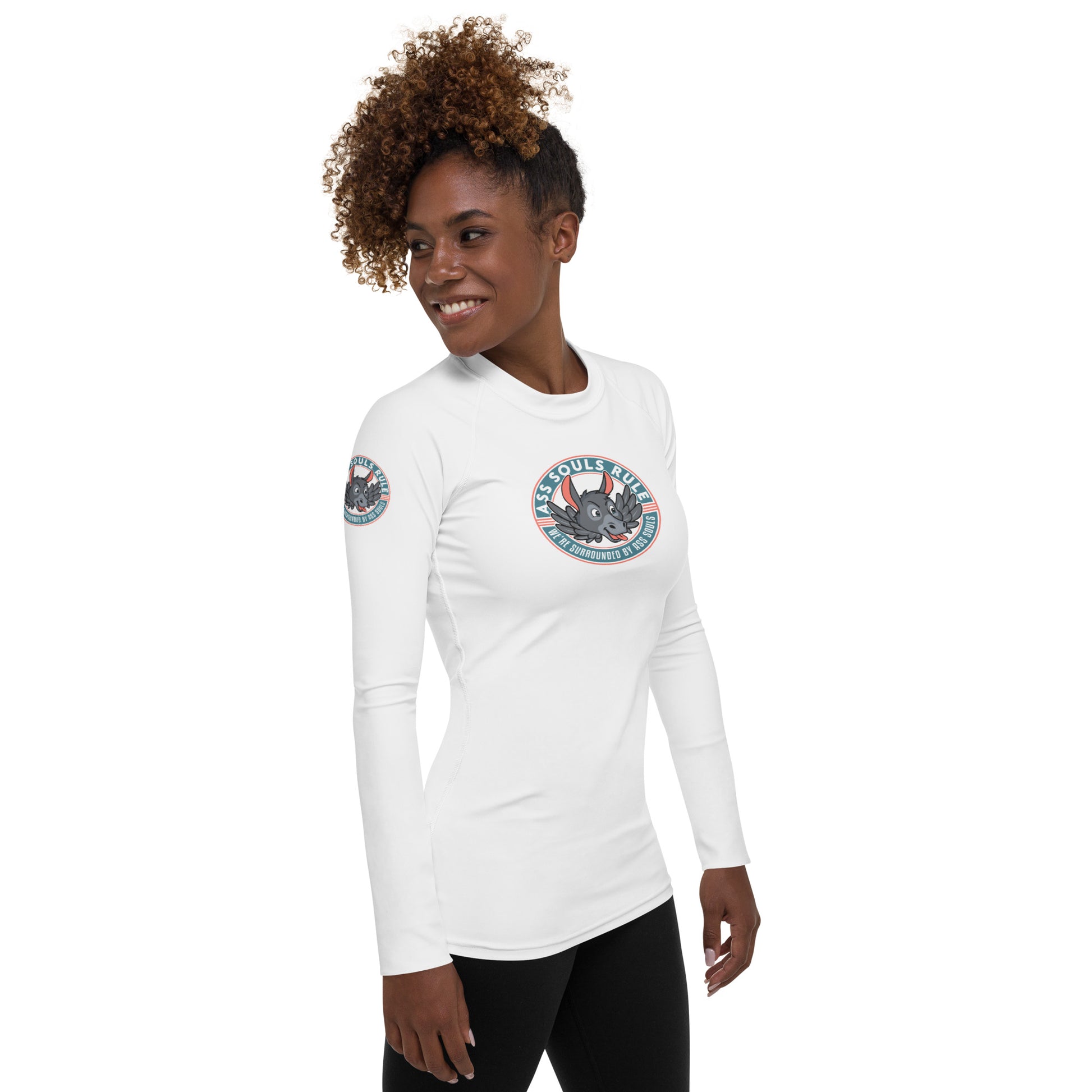 Don't be afraid to be your most active self in this smooth and versatile long-sleeve rash guard! It may not protect your from Ass Souls, but it protects you from the sun, wind, and other elements while doing sports, and the slim fit, flat ergonomic seams, and the longer body gives extra comfort while around Ass Souls.