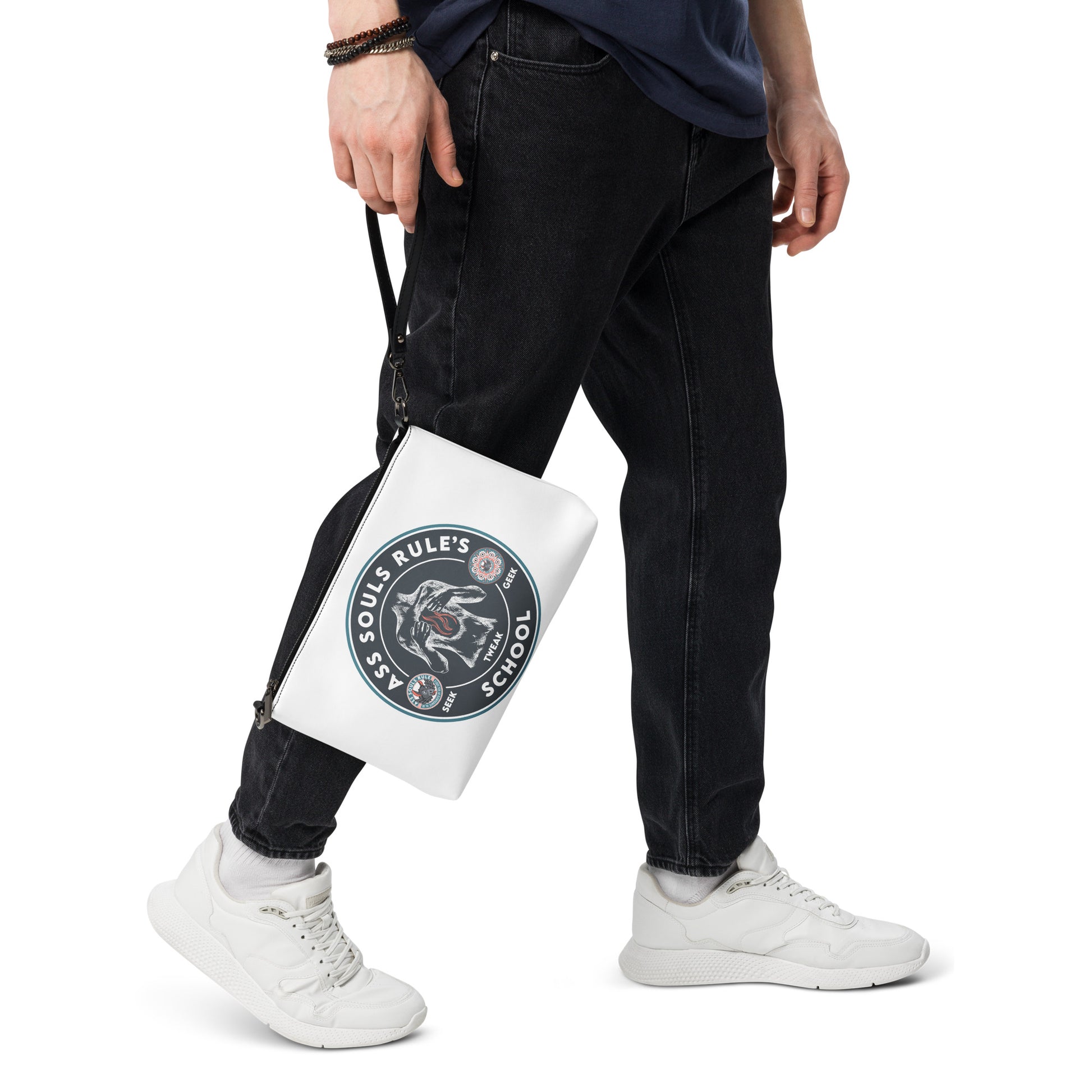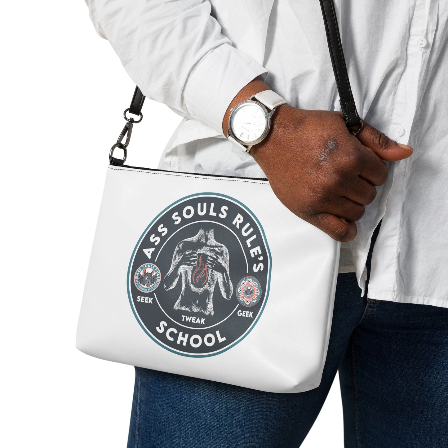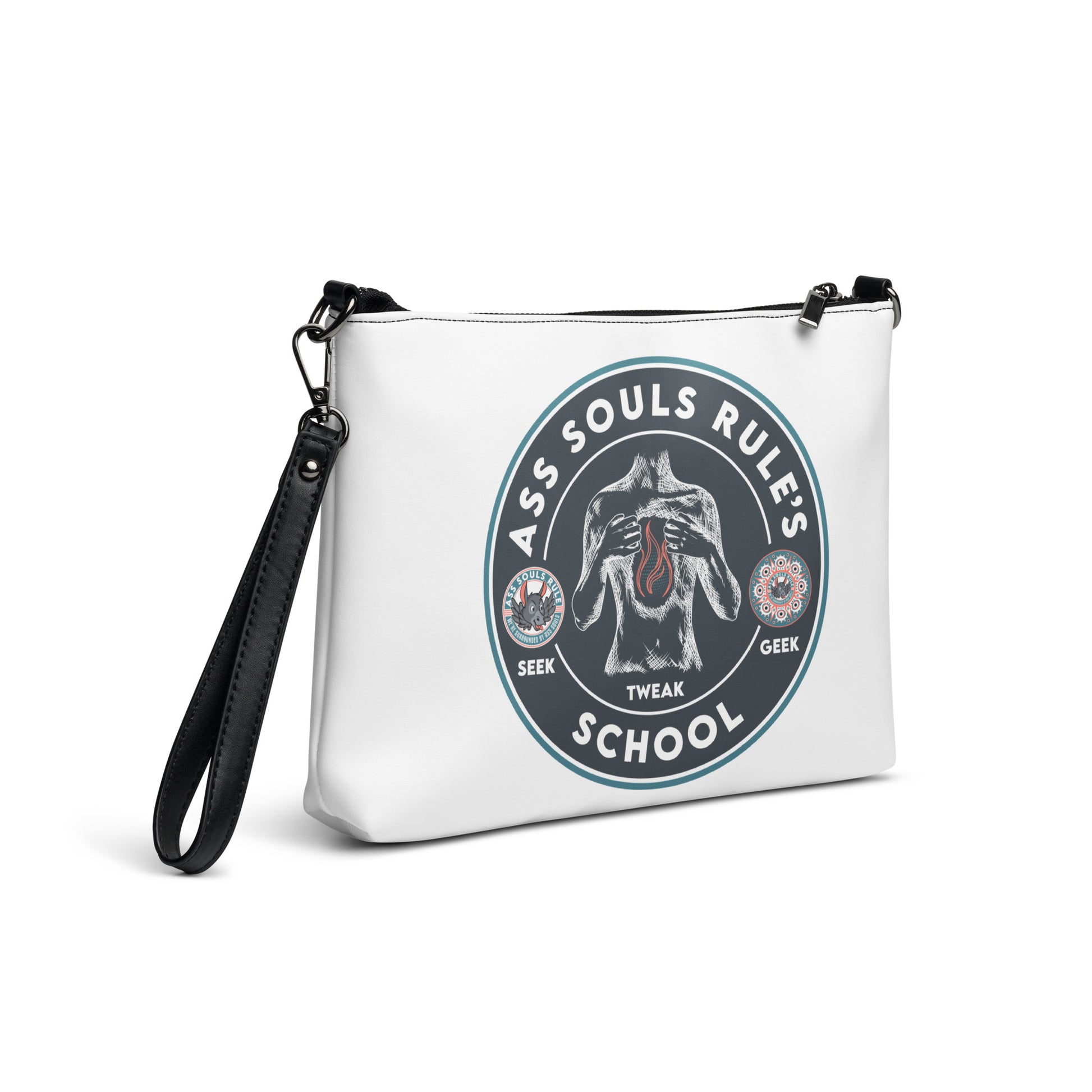 Keep your Ass Souls Rule's School style Ass Souls Rule's styled and your hands free with our versatile crossbody bag. Or even use it for a nice travel bag for your accessories or for when you're on an ASRS Field Trip. It’s made of premium faux leather and features dark gray hardware. Thanks to the zip-top closure and multiple inside pockets, you can keep your essentials secure and organized. Transform this crossbody bag with removable wrist and shoulder straps to style it for day-to-night looks.
