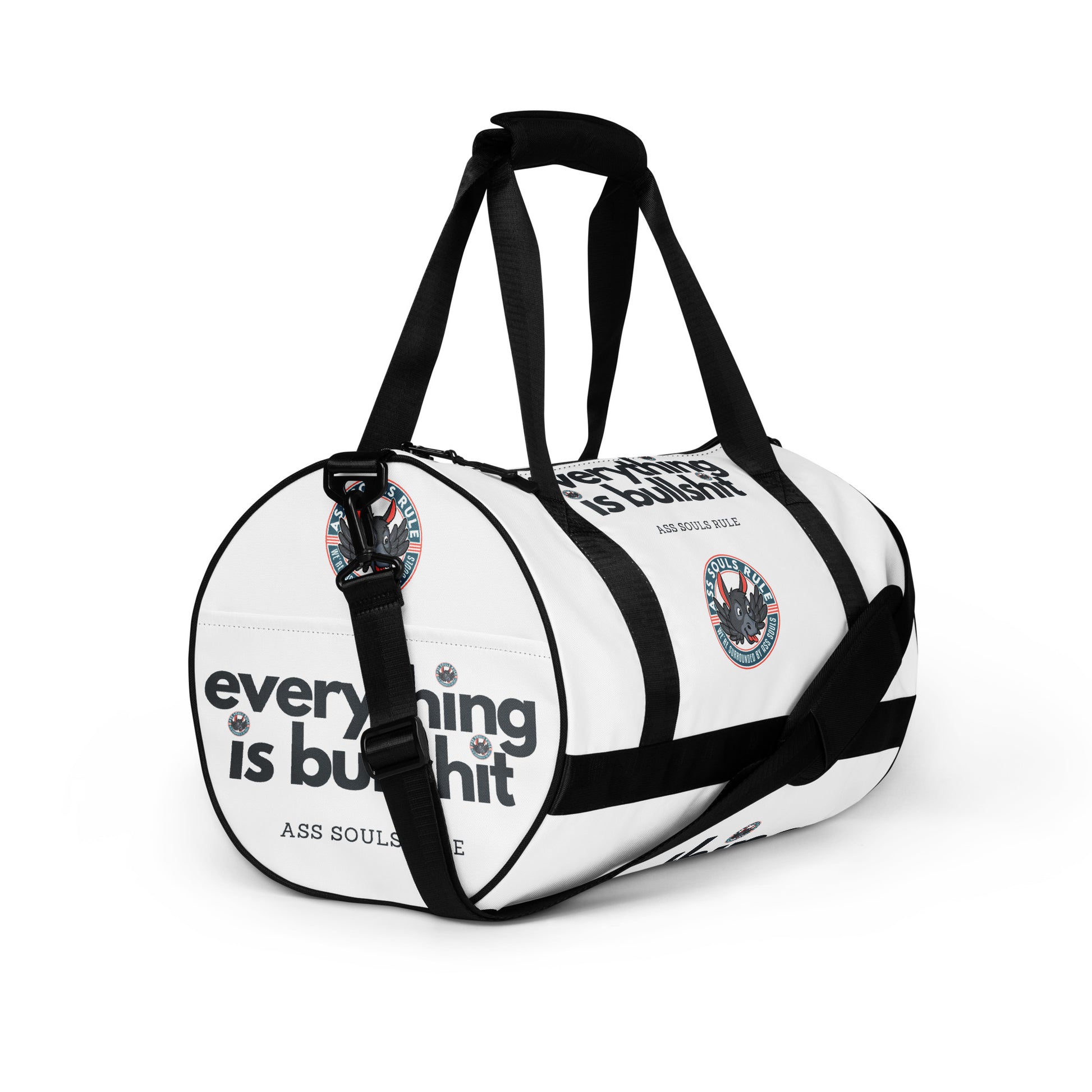 Everything is Bullshit all-over print gym bag