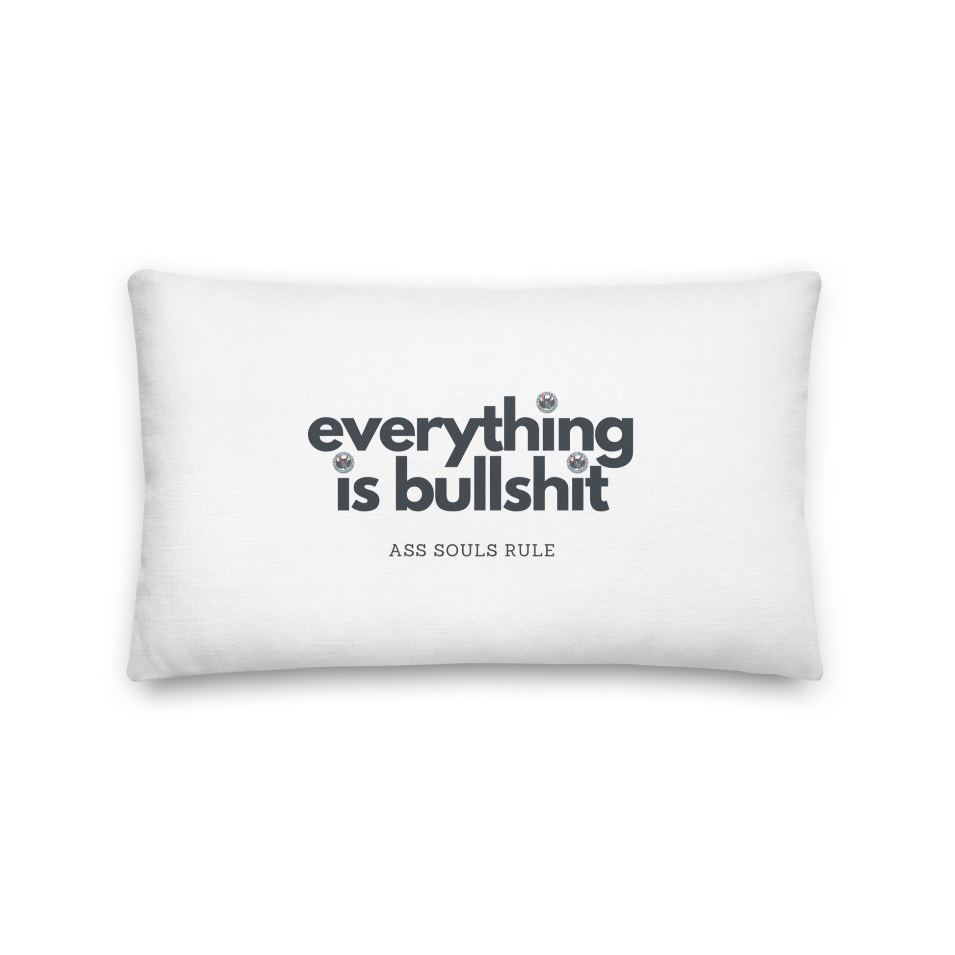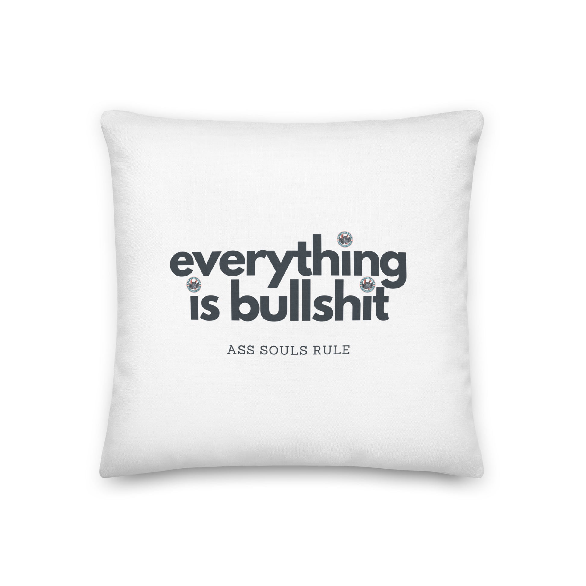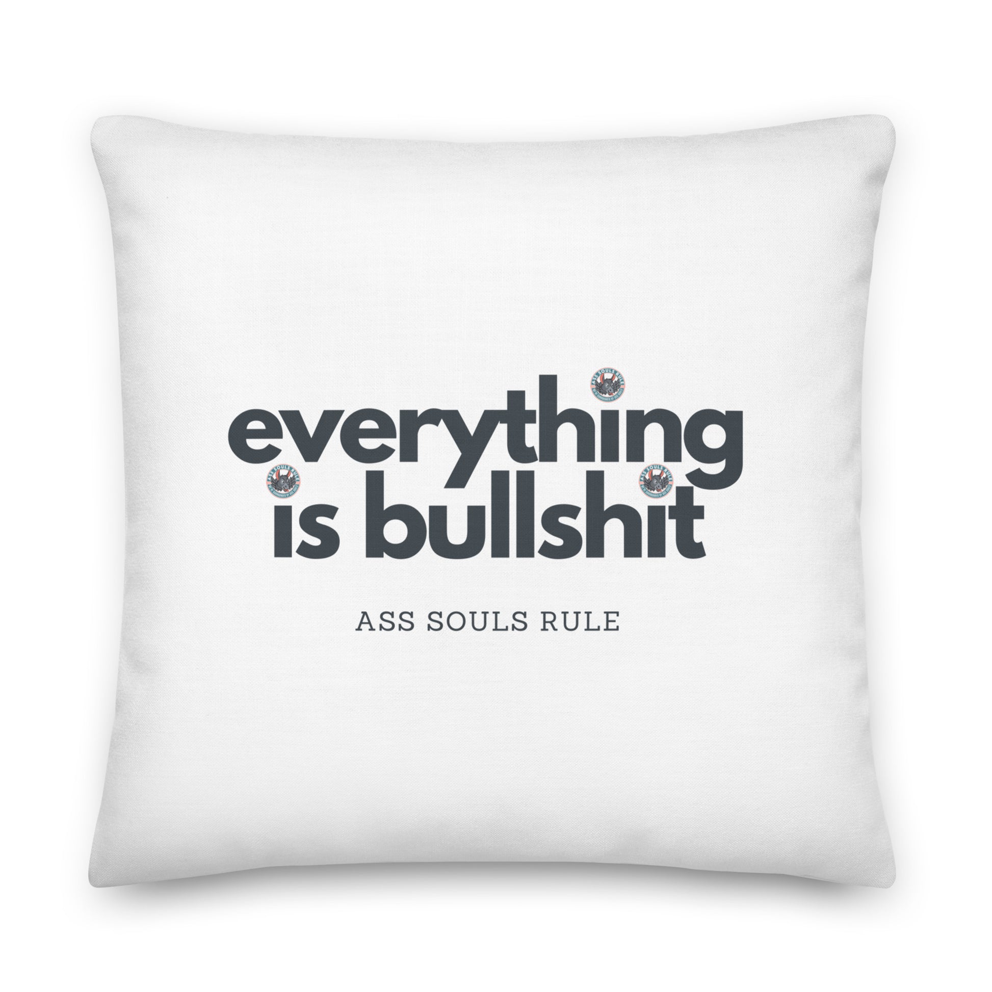 Want to add a splash of Ass Souls Rule to your home? This Everything is Bullshit premium feel pillow with a shape-retaining insert is just what you're looking for! It'll make any room luxurious and provide the perfect excuse for a quick power nap to forget about those Ass Souls!