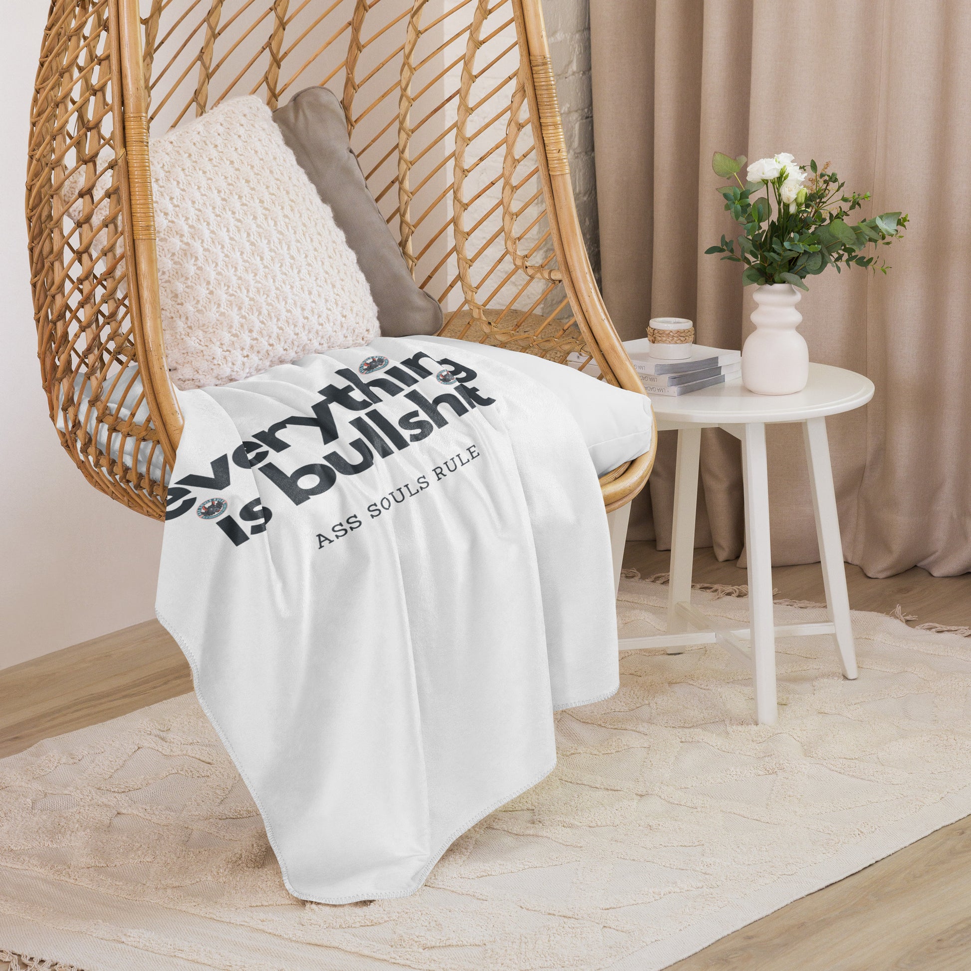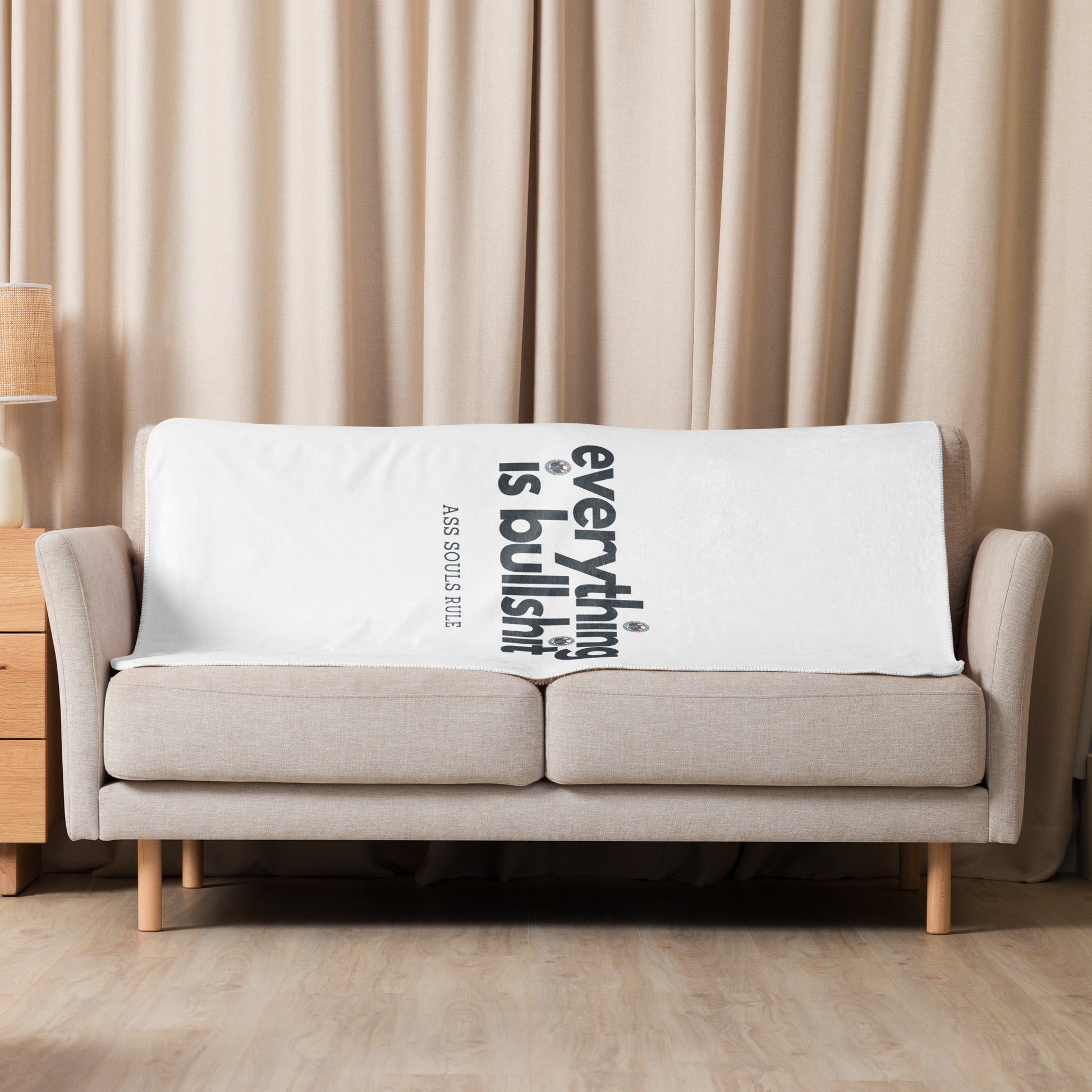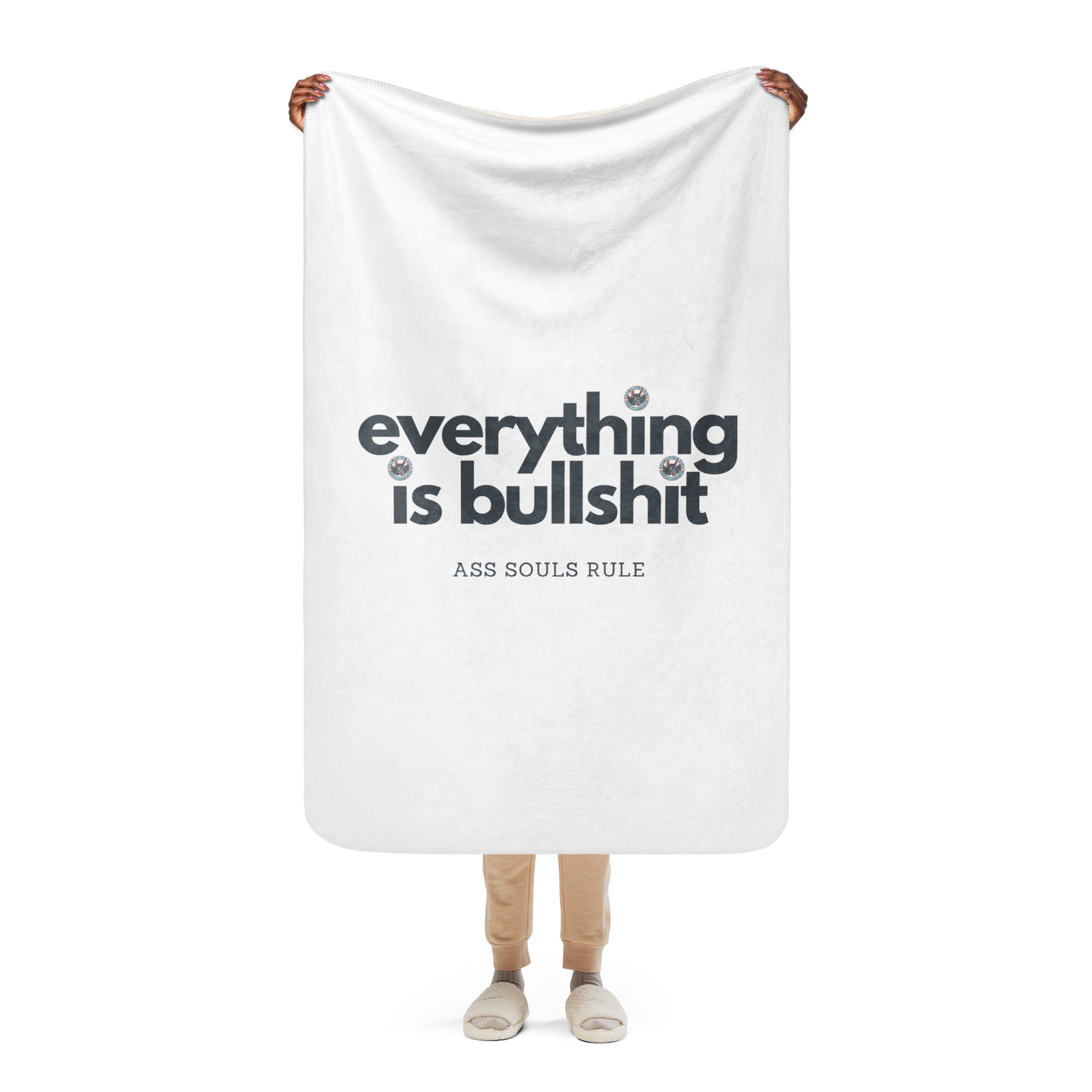 This exquisite Everything is Bullshit sherpa blanket combines a plushie feel with exceptional softness, making it the ultimate comfort companion as you let shit go. Perfect for daily use while lounging on the couch, snuggling up on chilly evenings, or styling your room—this blanket offers unmatched coziness and warmth.