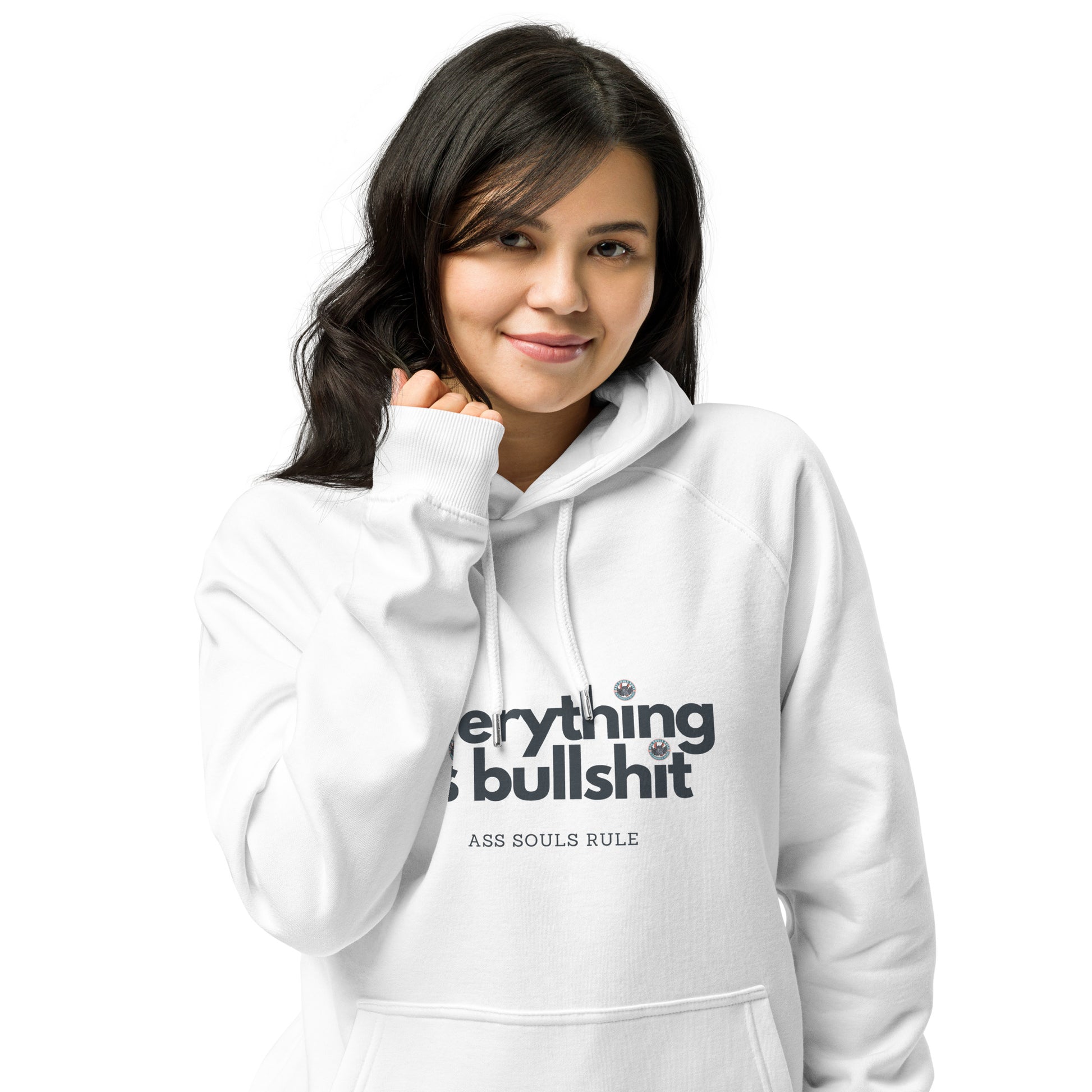 If there’s one ASR fashion rule to live by, let it be that comfort doesn’t have to be compromised for the sake of style especially when we're surrounded by Ass Souls. Pair the super-soft unisex eco raglan hoodie with joggers for a relaxed look, or elevate the outfit with a skirt, oversized blazer, or classic trousers or with any shit you'd like. The hoodie’s brushed inside ensures a comfy and snug feel, and will keep you warm during the colder days.