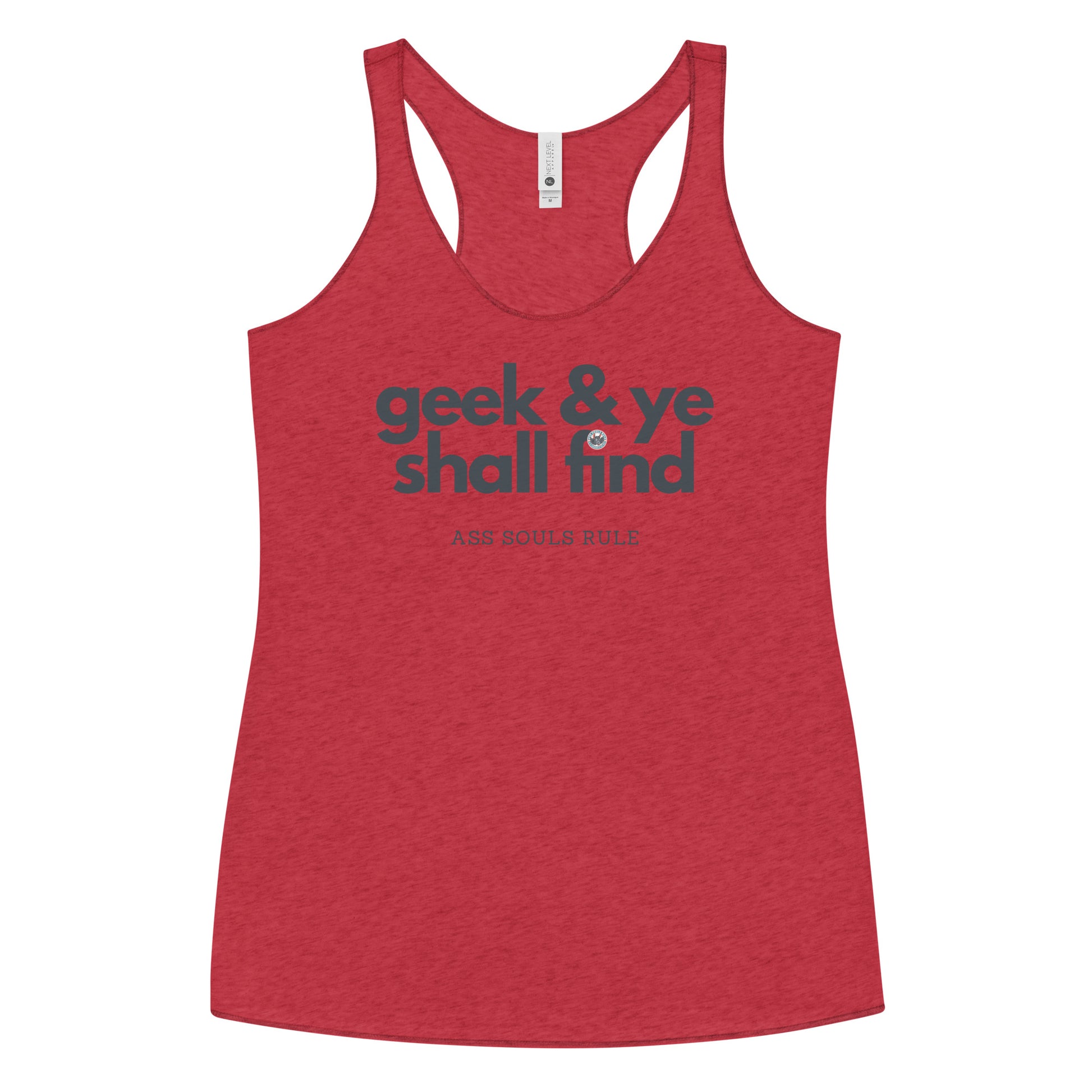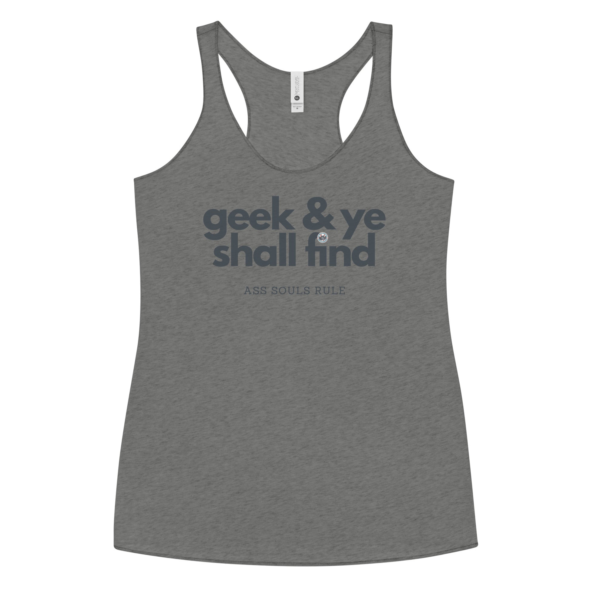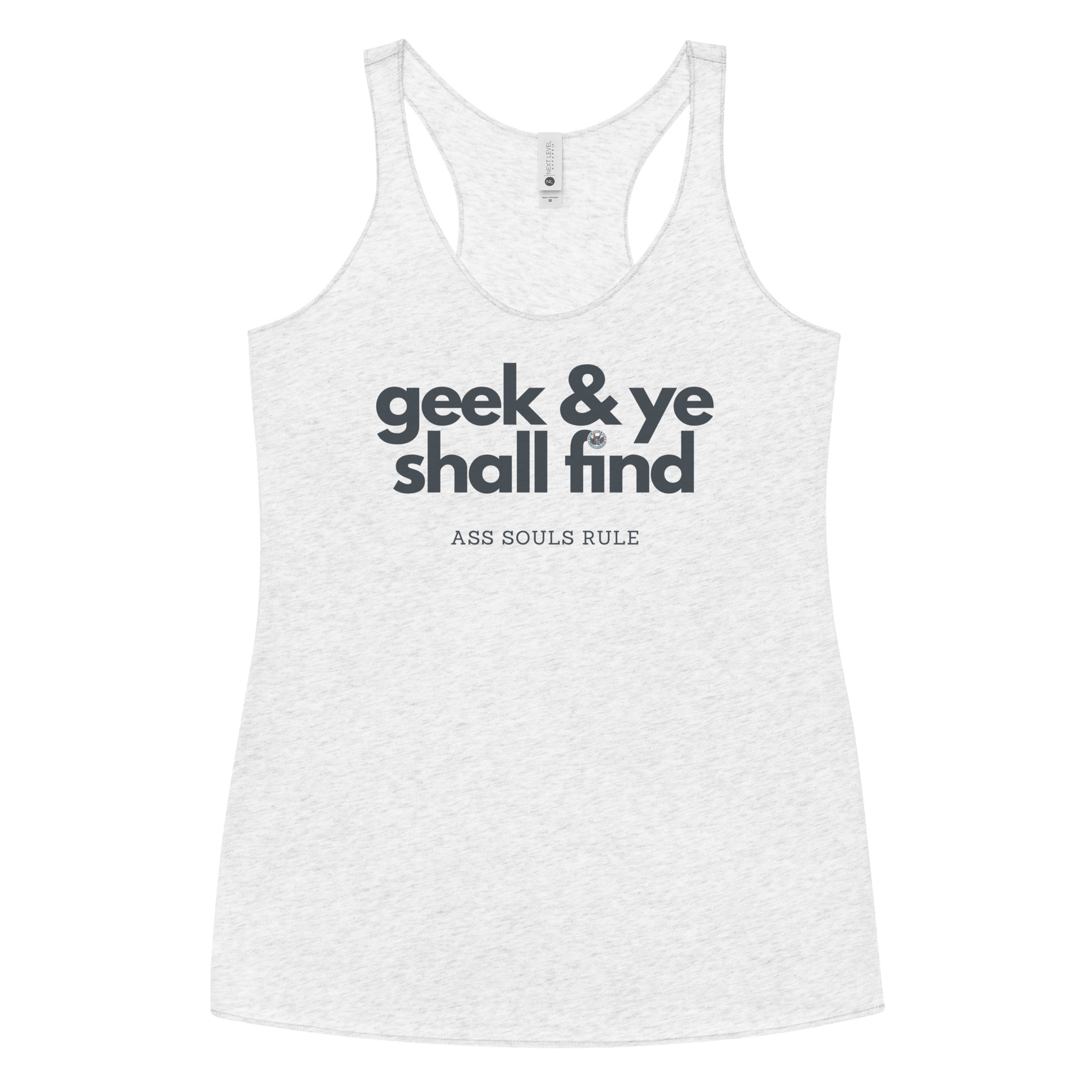 This Geek & Ye Shall Find racerback tank is soft, lightweight, and form-fitting with a flattering cut and raw edge seams for an edgy Ass Souls Rule touch.