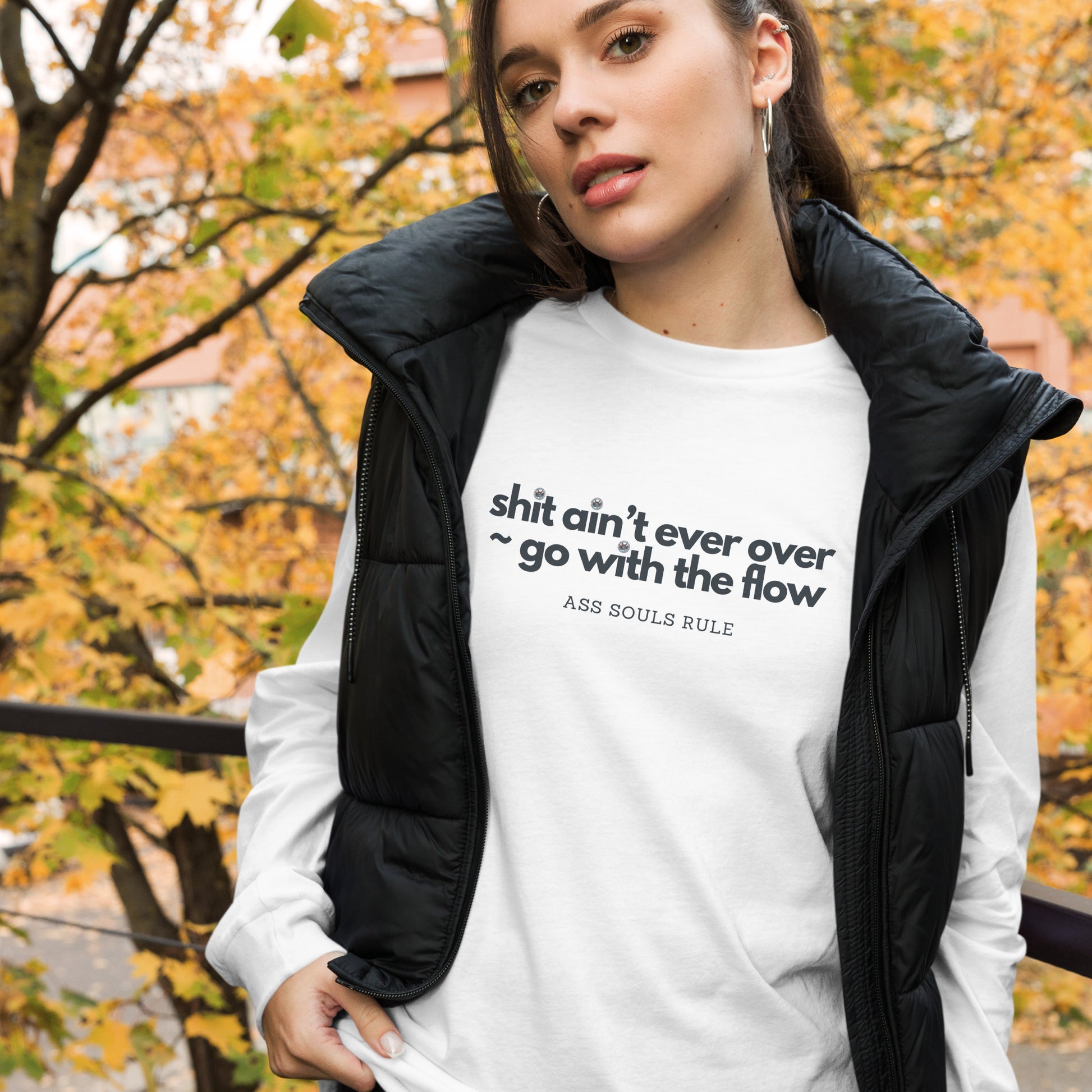 Enrich your ASR wardrobe with a versatile long sleeve Go With the Flow tee. For a casual look, combine it with your favorite tight-tight jeans, and layer it with a button-up shirt, a zip-up ASR hoodie, or a snazzy jean jacket. Dress it up with formal trousers or chinos to achieve a more professional look. Why not?