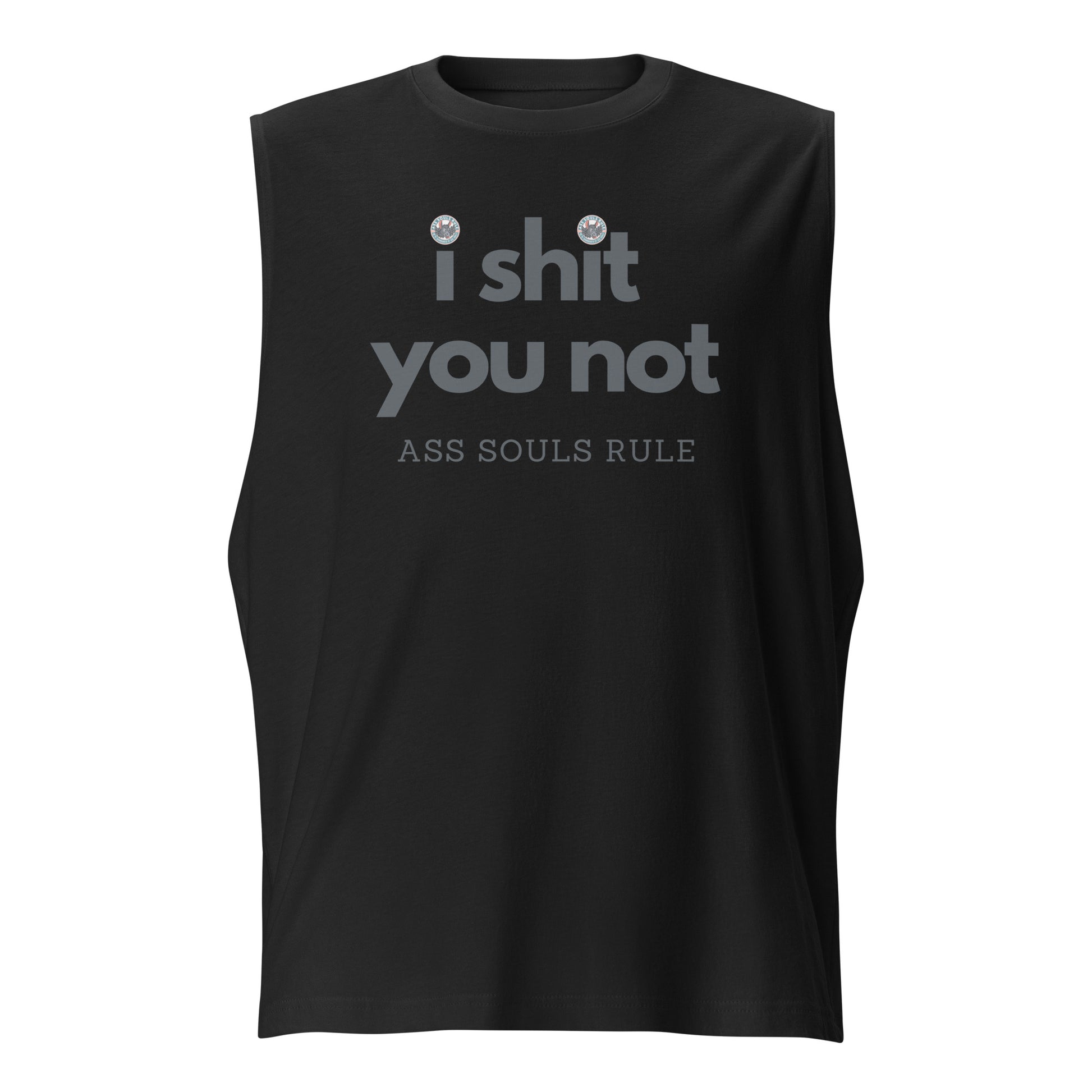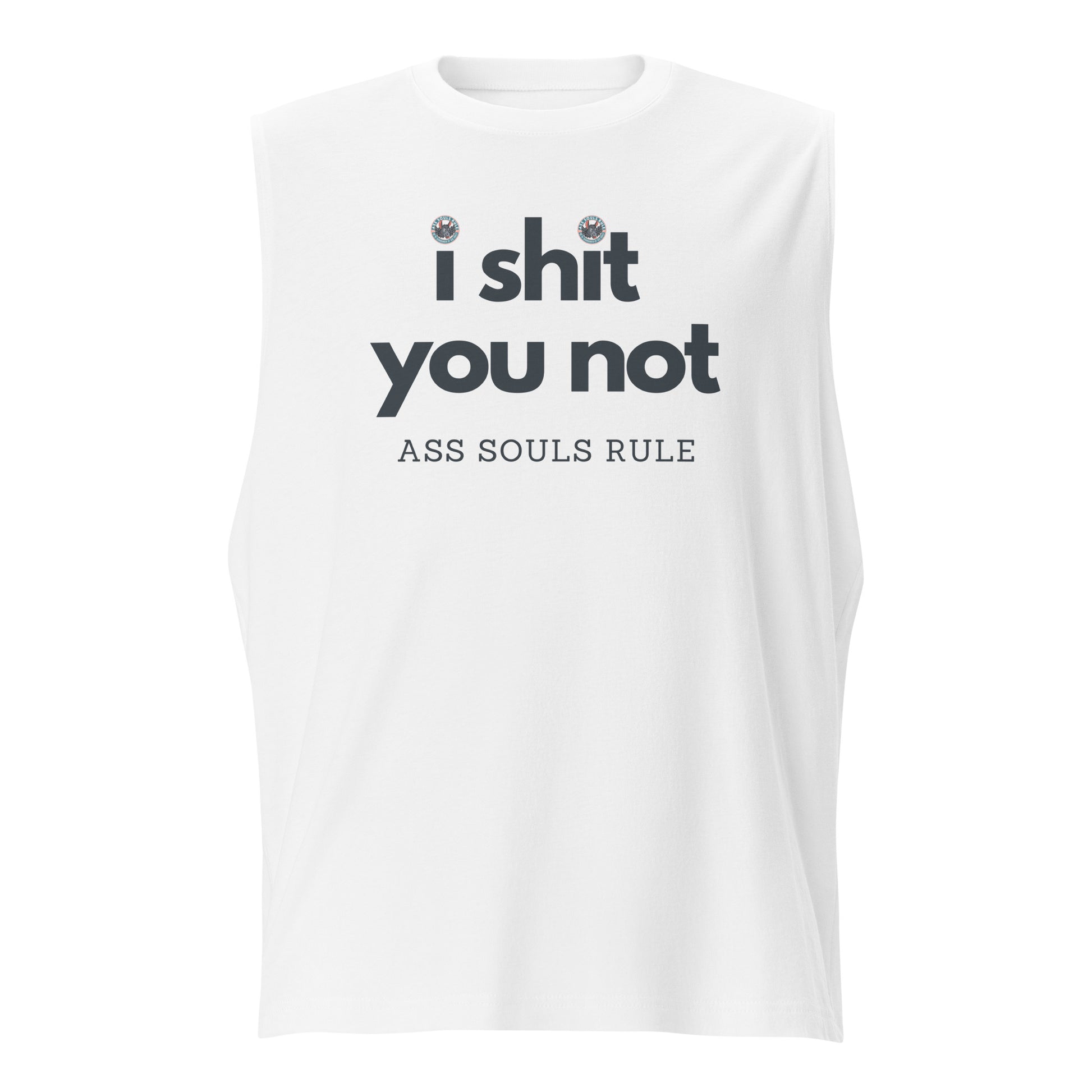This soft, sleeveless I Shit You Not tank is so comfy you're going to want to wear it everywhere, be it on your couch, at your gym, out on a hike, or during a sports class. The relaxed fit and low-cut armholes gives it a casual, urban ASR look.