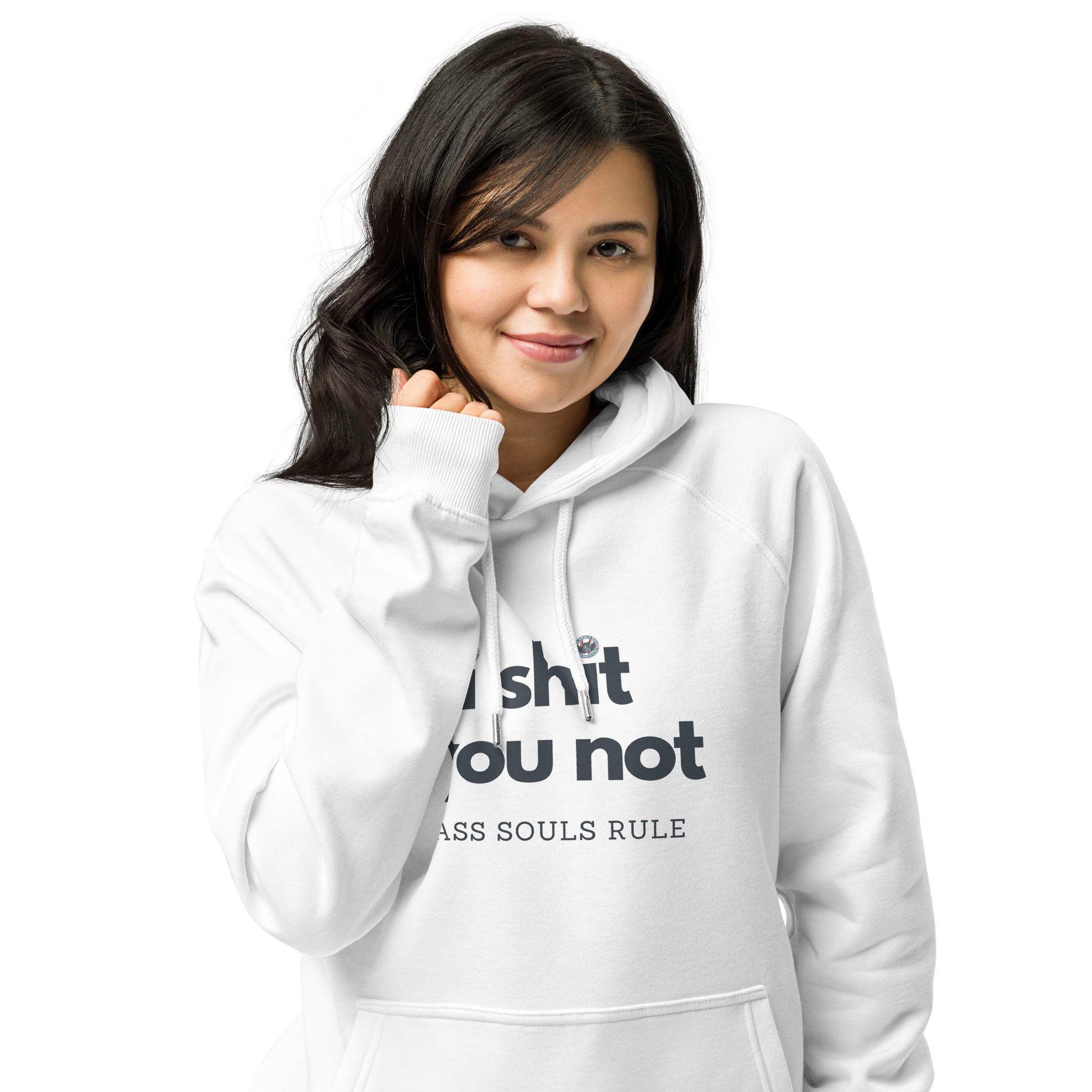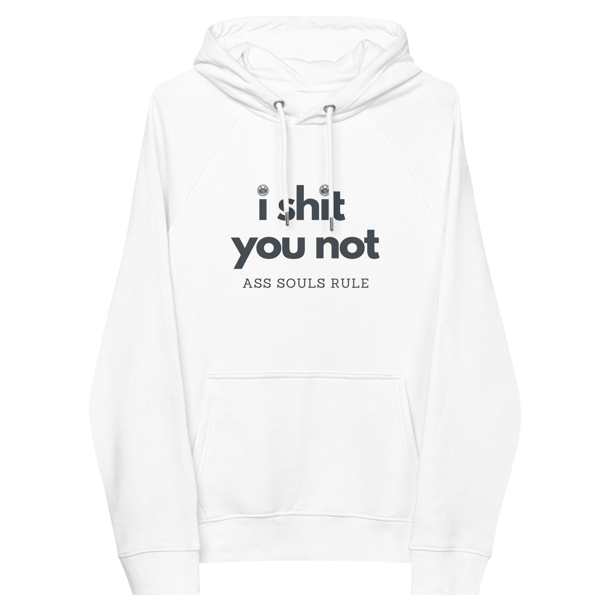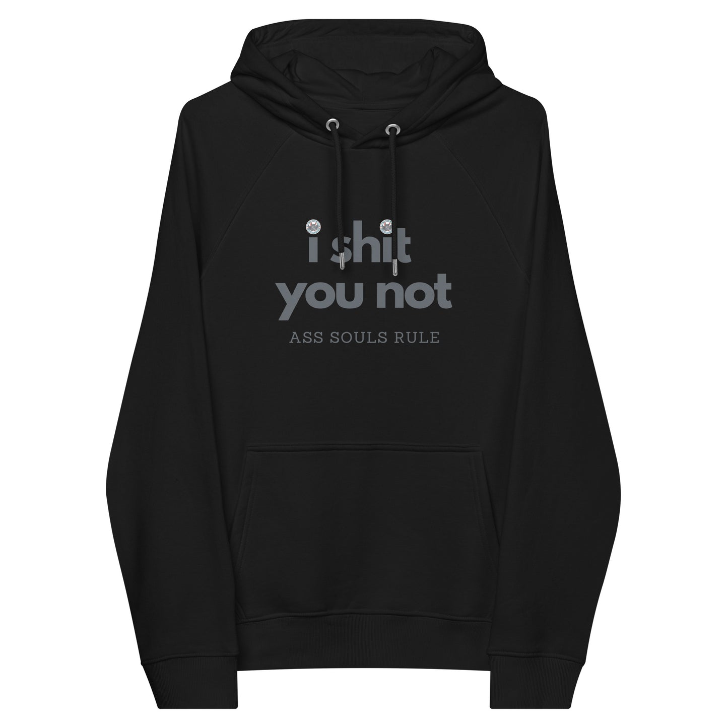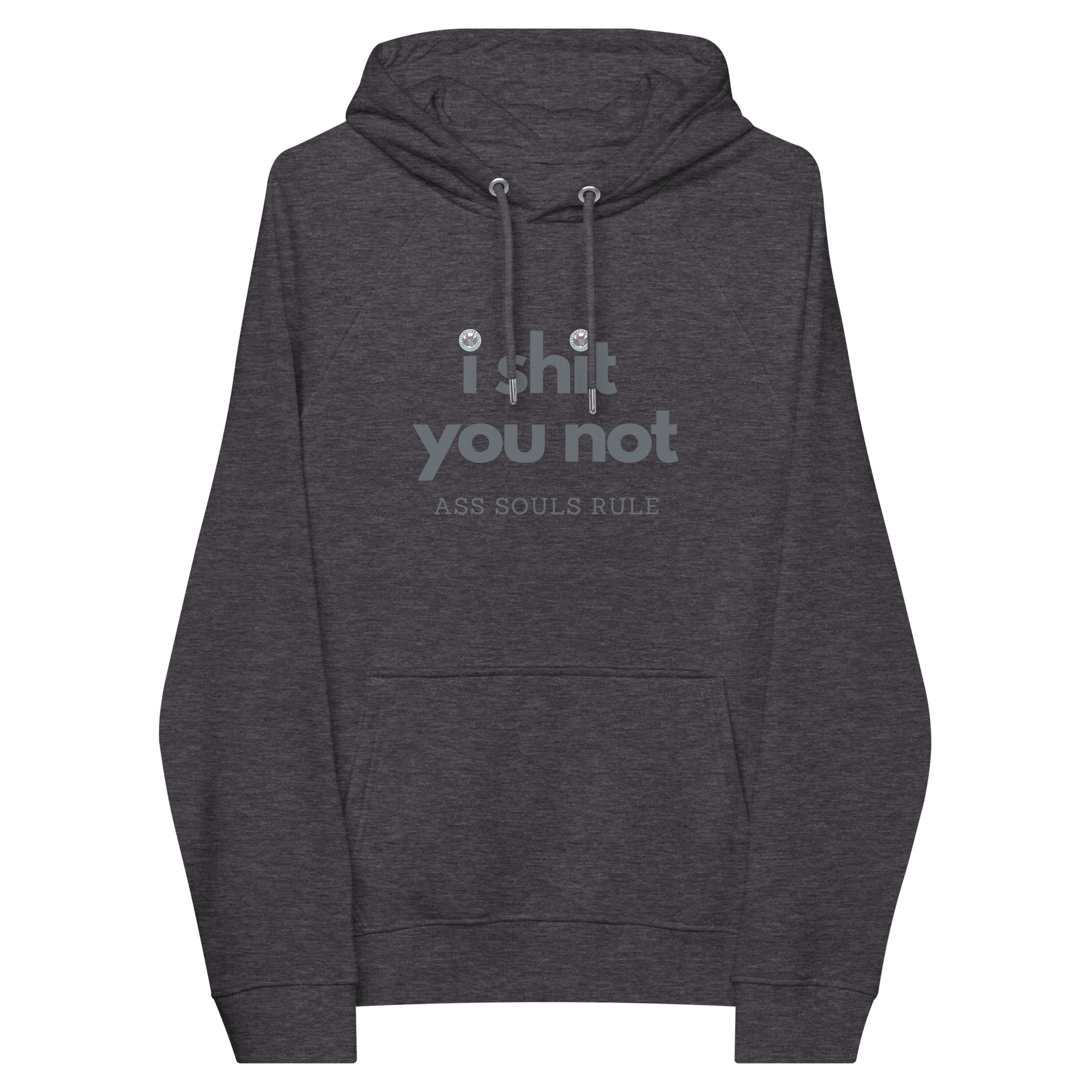 If there’s one fashion rule to live by, let it be that Game of Life comfort doesn’t have to be compromised for the sake of style. Pair the super-soft unisex eco raglan I Shit You Not hoodie with joggers for a relaxed look, or elevate the outfit with a skirt, hiking pants, or classic tight-ass jeans. The I Shit You Not hoodie’s brushed inside ensures a comfy and snug feel, and will keep you warm during the colder days and dealing with coldhearted Ass Souls.