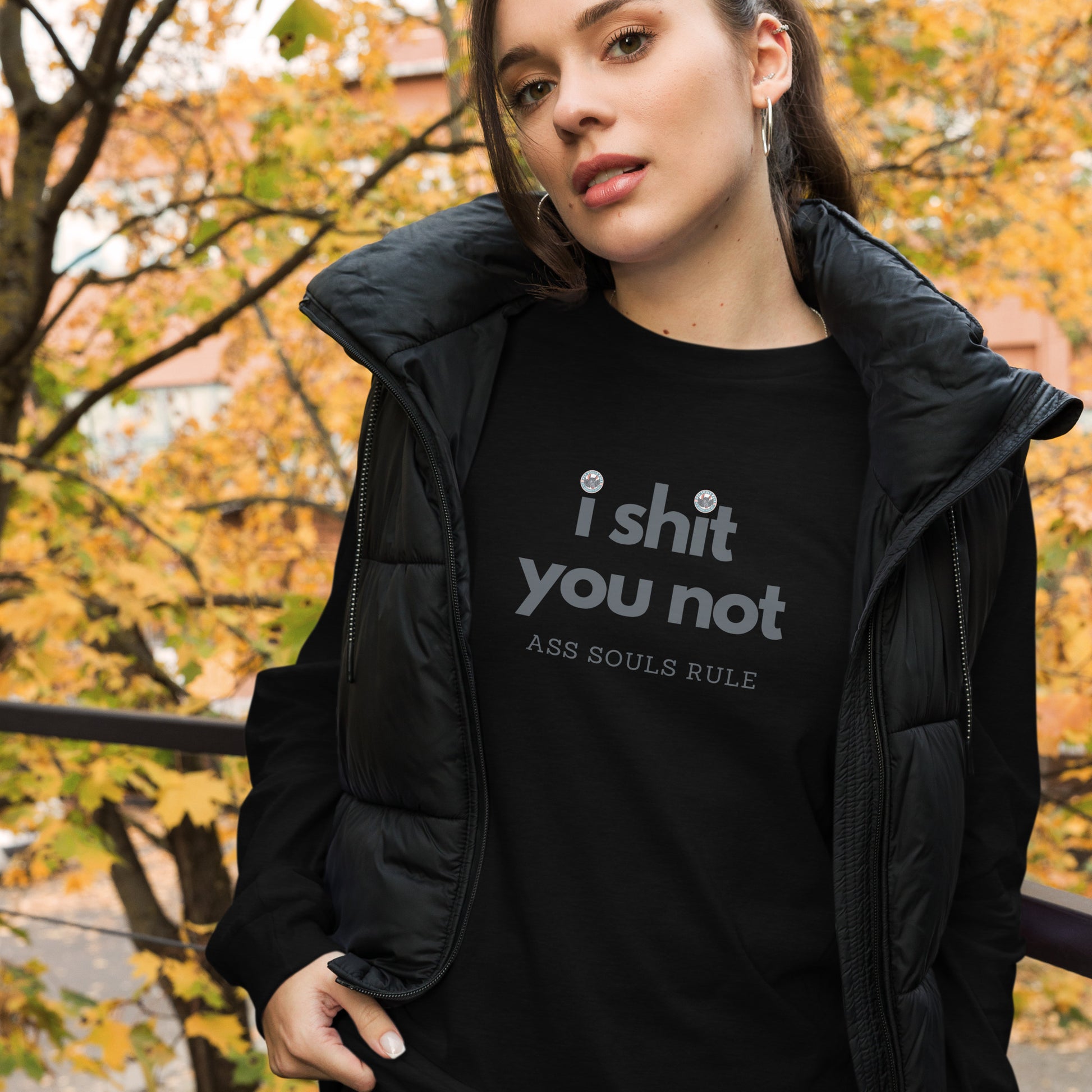 Enrich your ASR wardrobe with a versatile long sleeve I Shit You Not tee. For a casual look, combine it with your favorite tight-ass jeans, and layer it with a button-up shirt, a zip-up ASR hoodie, or a snazzy jean jacket. Dress it up with formal trousers or chinos to achieve a more professional look.