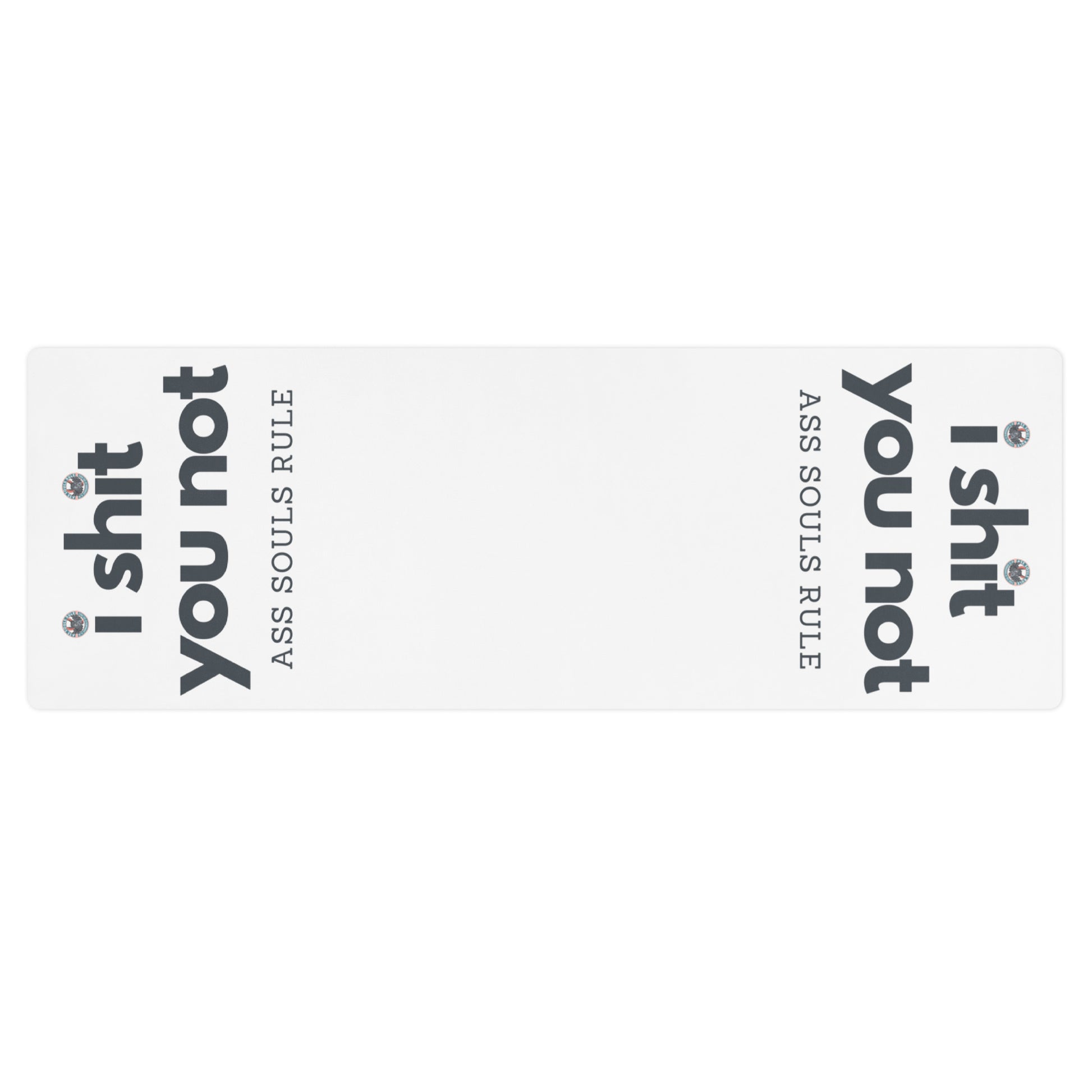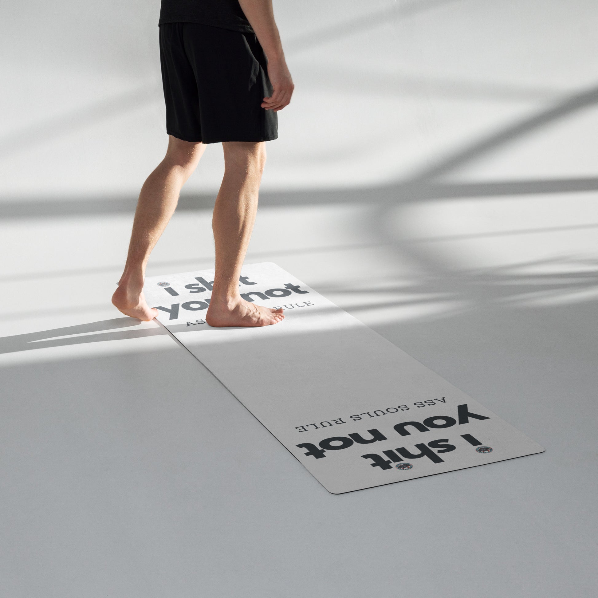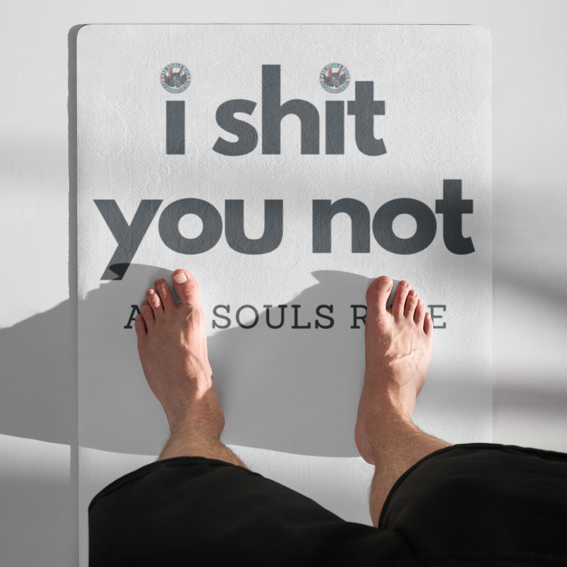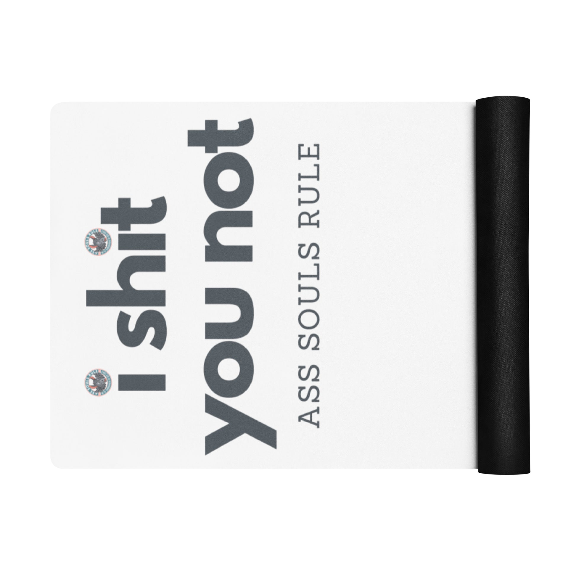 Whether you’re stretching your understanding of WTF is really going on in life behind the scenes, exercising Ass Souls out of your system, or meditating about your shituation and letting shit go, it’s worth having an I Shit You Not yoga mat that brings you ASR joy and matches your take-no-shit style. It’s easy to carry and provides both stability and comfort with anti-slip rubber on the bottom and soft microsuede on top.