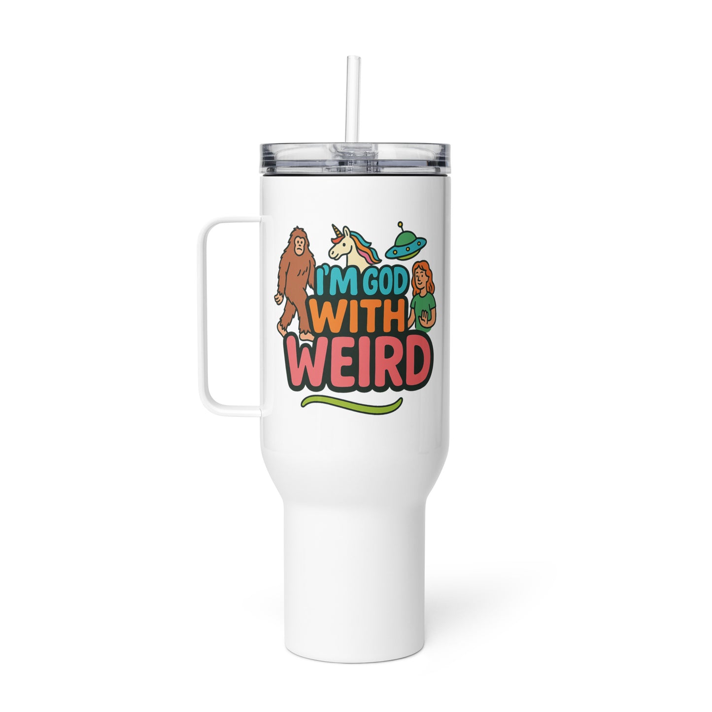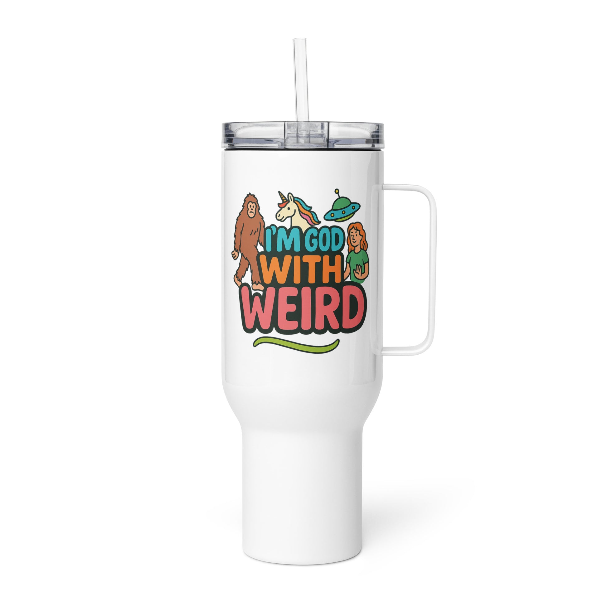 I'm Good With Weird Divinely Glitched Permanently Weird Travel mug with a handle