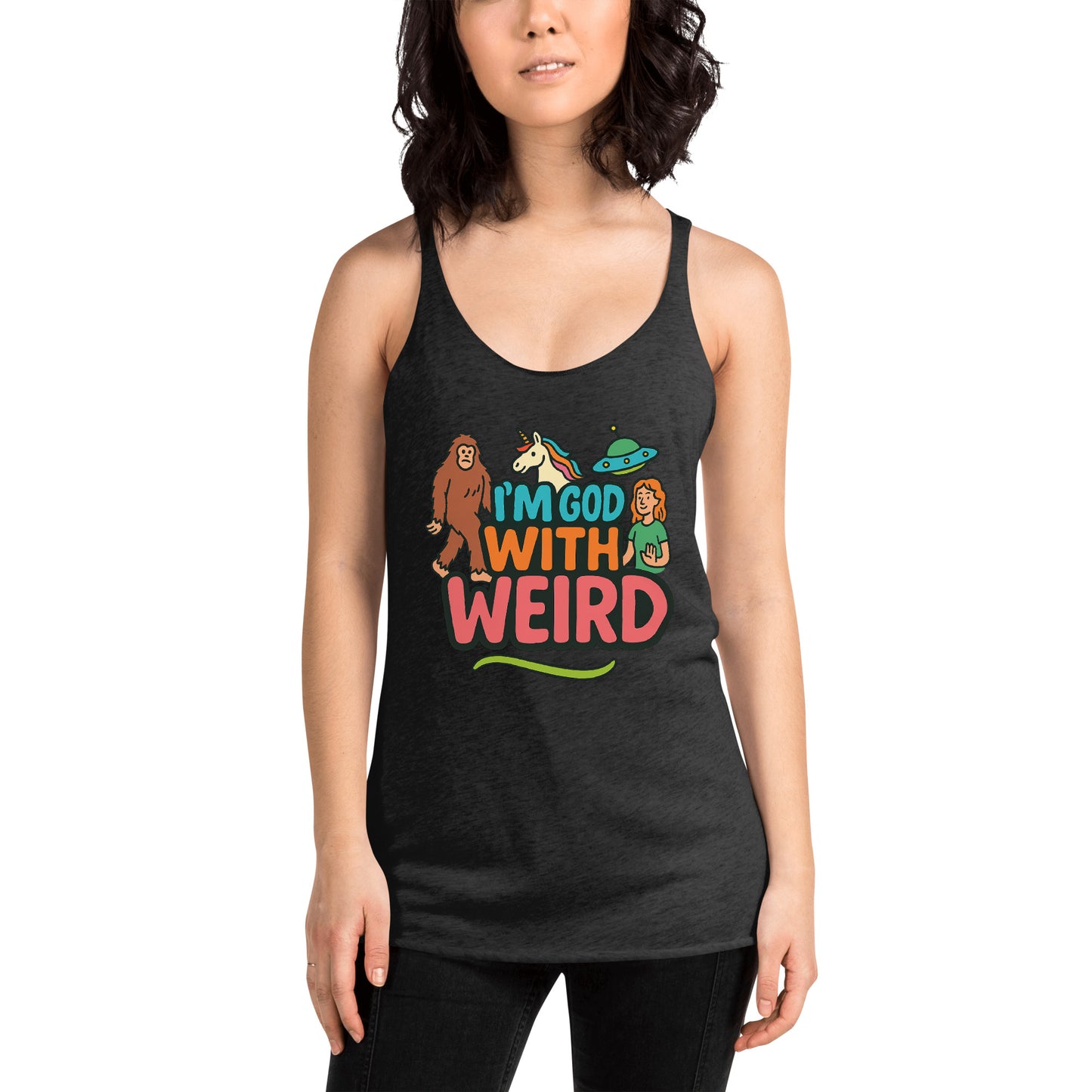 I'm Good With Weird Divinely Glitched Permanently Weird Women's Racerback Tank