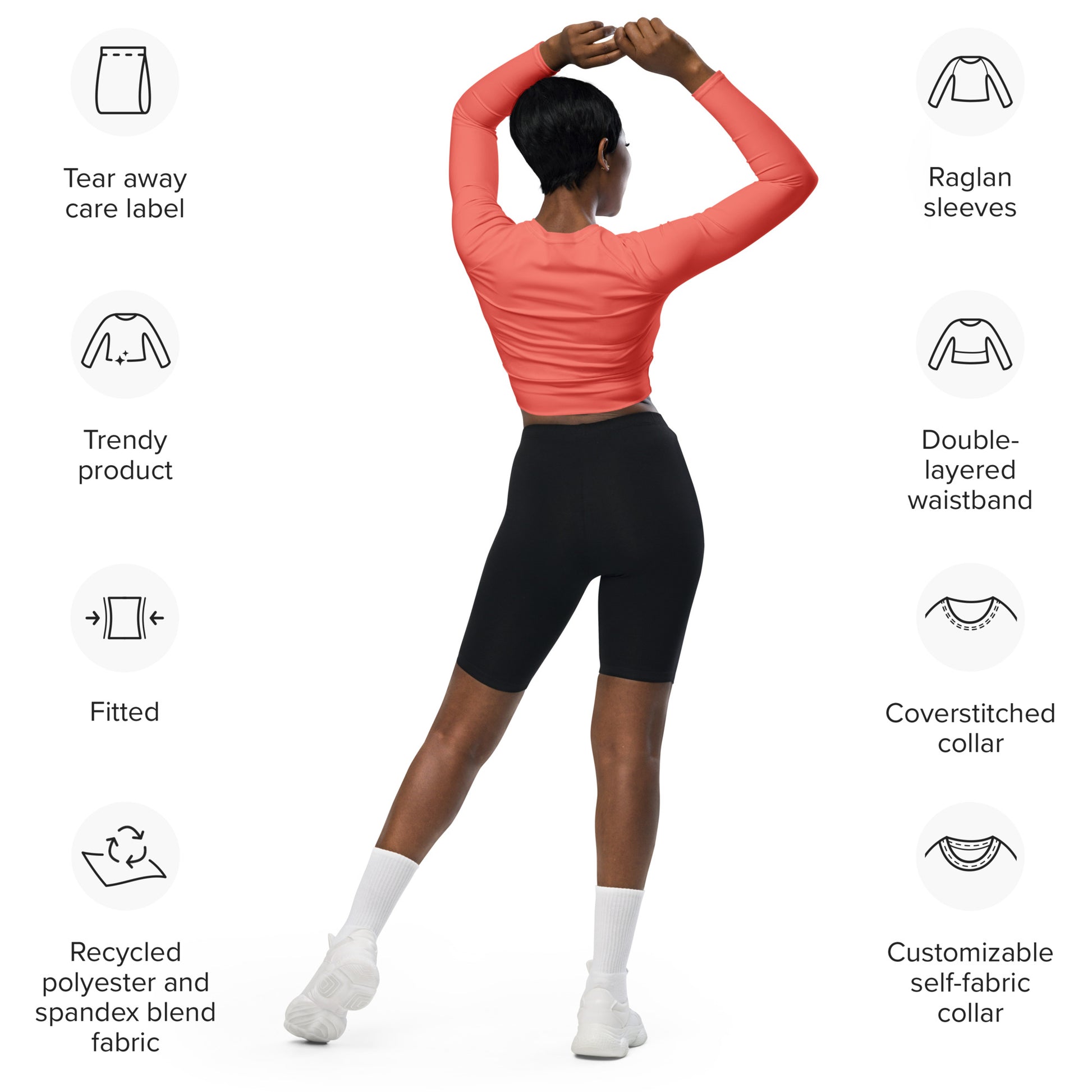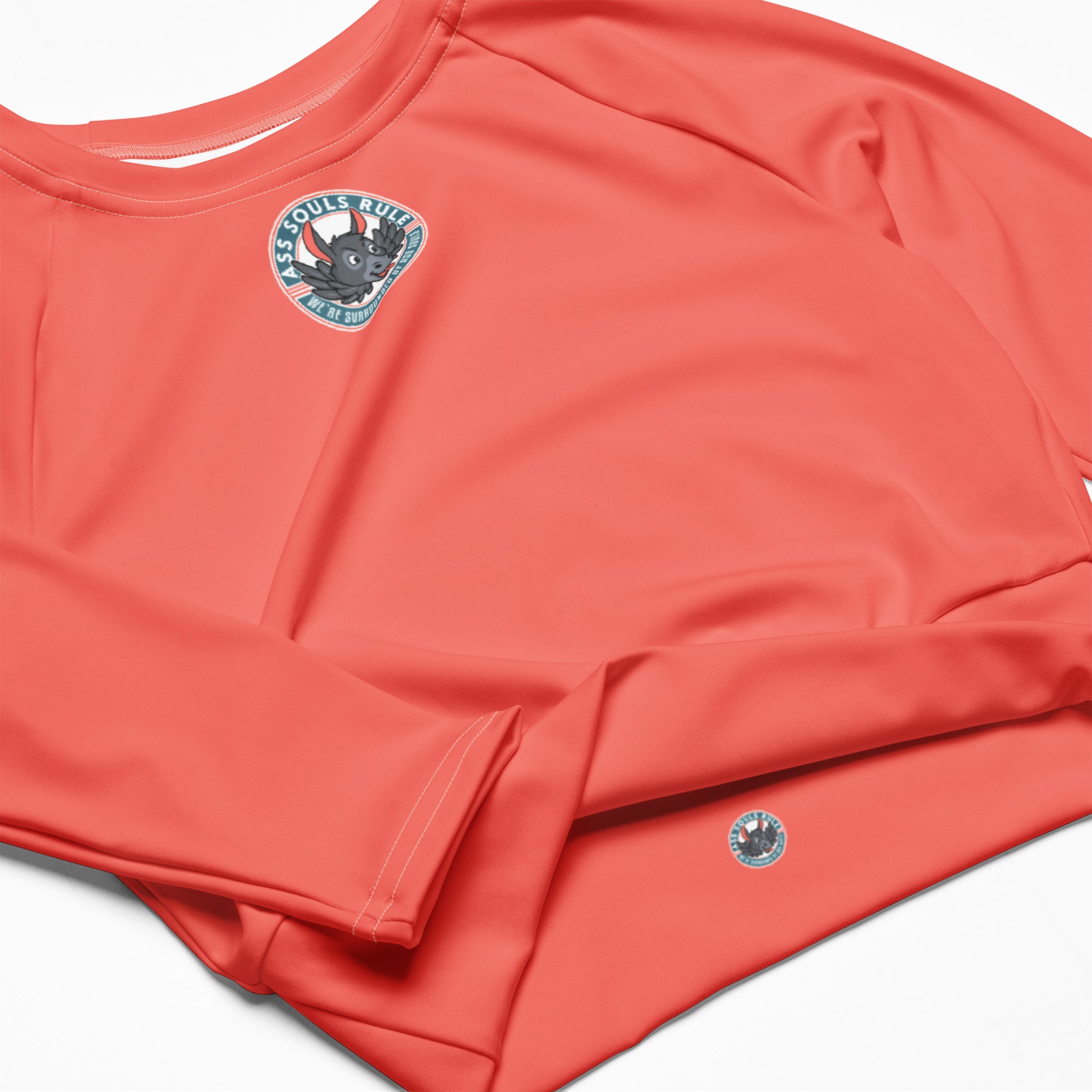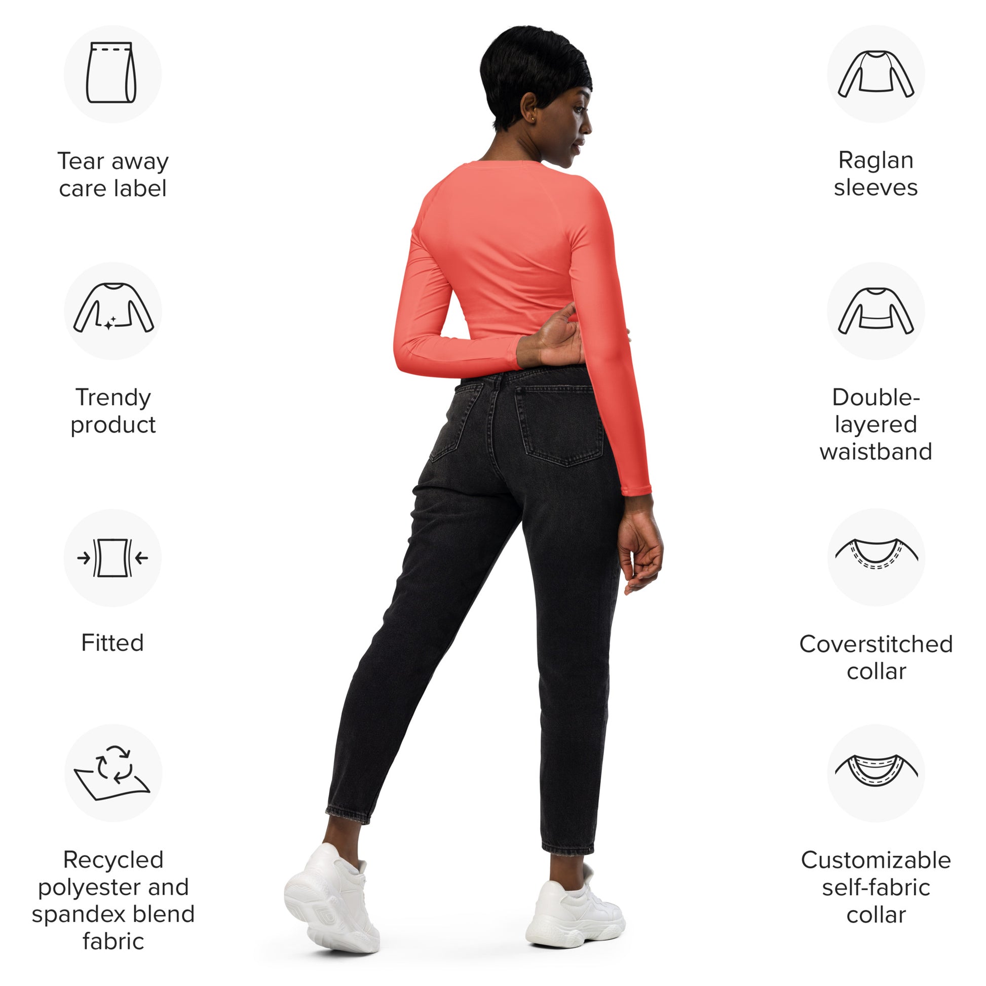 This long-sleeve ASR crop top is made of recycled polyester and elastane, making it an eco-friendly choice for swimming, sports, or athleisure outfits in The Game of Life. The crop top has a tear-away care label and a wide, double-layered waistline band for a comfortable fit.