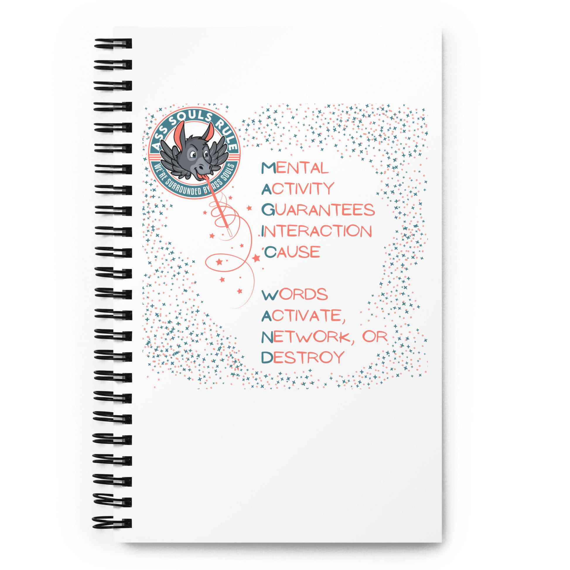 This M.A.G.I.C. W.A.N.D. notebook motivates you to take more notes on interactions with Ass Souls, write down ideas about how to deal with them, or dream up future experientials that don't include Ass Souls. This custom wire-bound notebook will be a great daily companion whenever you need to put your Ass Soul awareness thoughts down on paper!