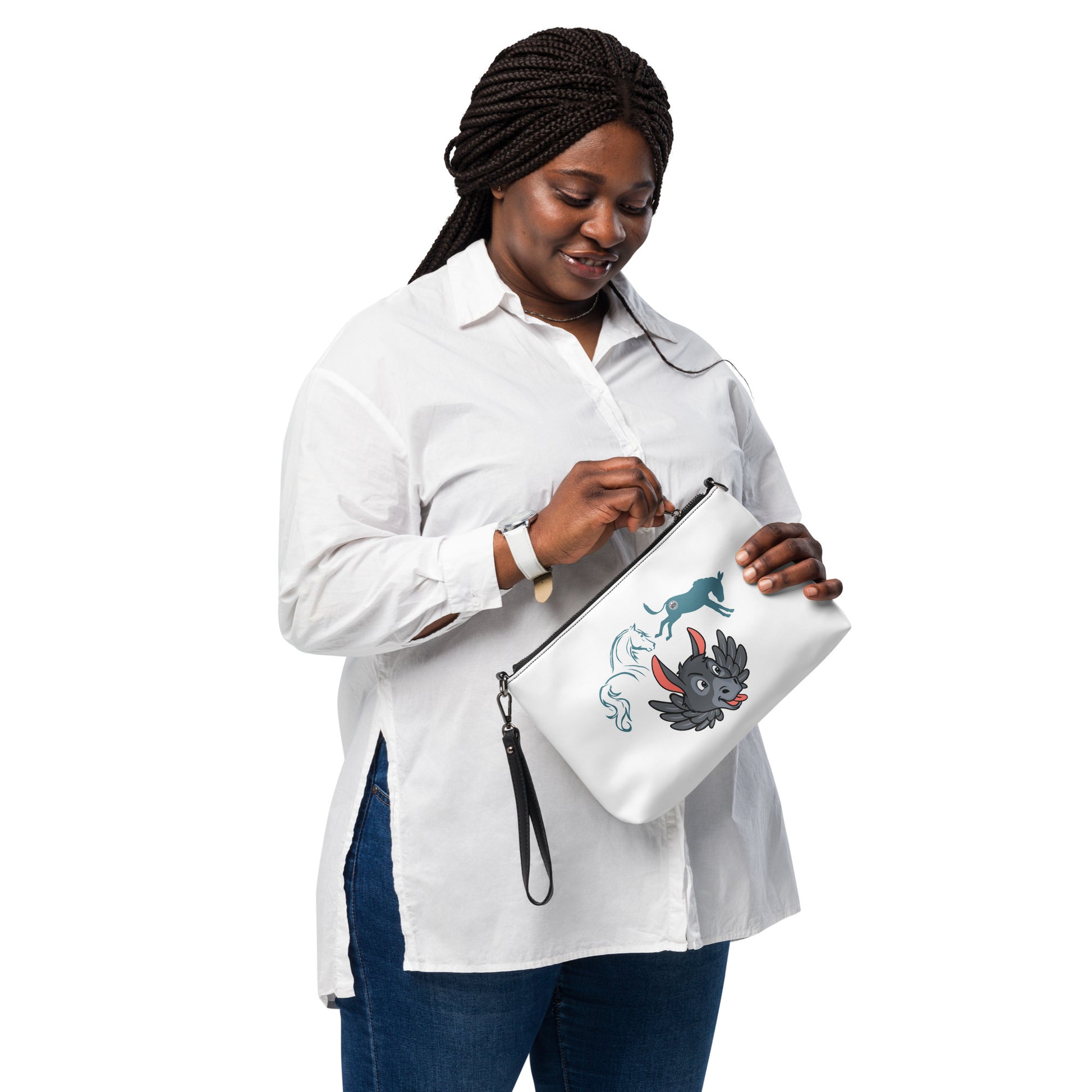 Keep your ASR style on point and your hands free with our versatile crossbody bag. It’s made of premium faux leather and features dark gray hardware. Thanks to the zip-top closure and multiple inside pockets, you can keep your essentials secure and organized. Transform this crossbody bag with removable wrist and shoulder straps to style it for day-to-night looks.