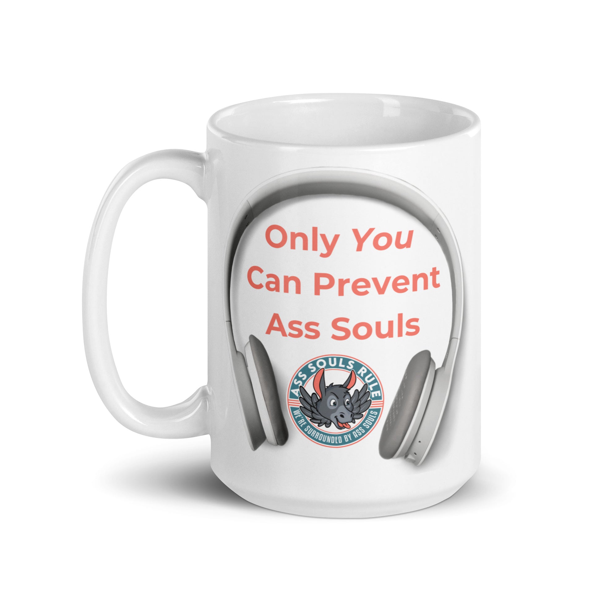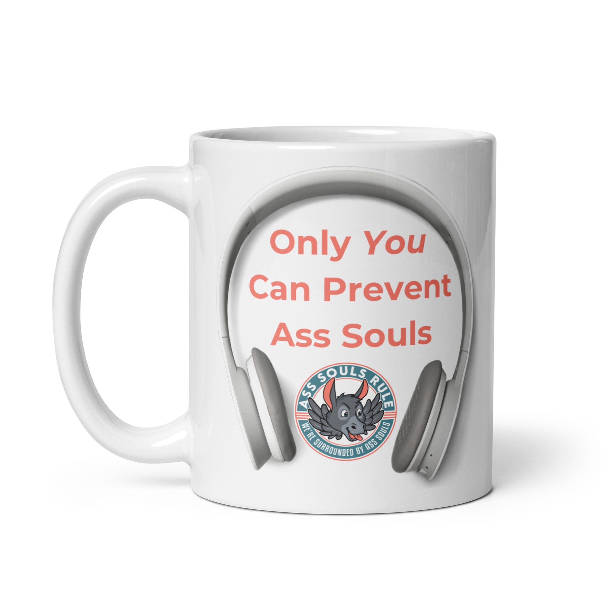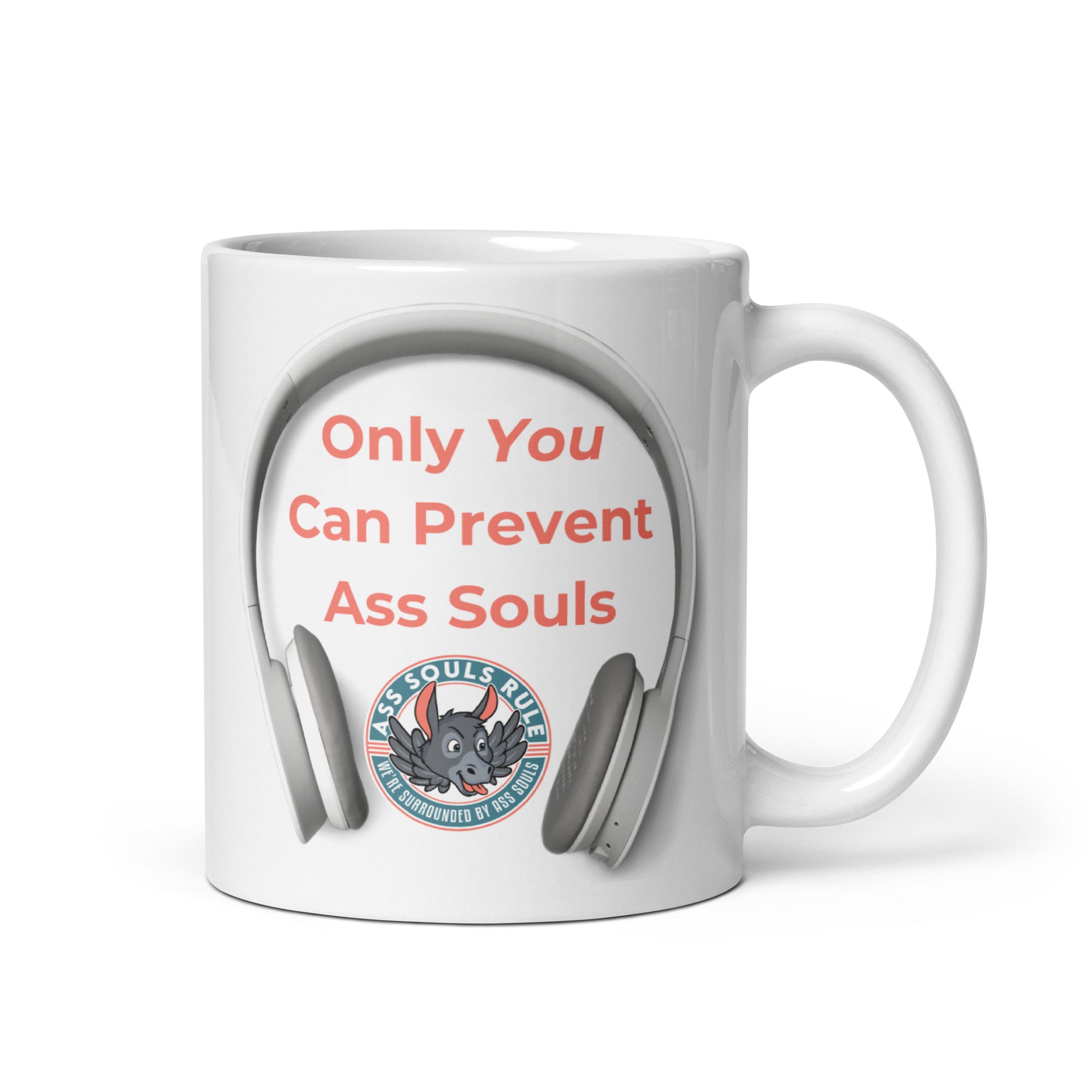 Looking for a fun addition to your caffeinated mornings while wearing your headphones since you know that Only You Can Prevent Ass Souls? This ceramic mug is sure to put a smile on your face and likely everyone else's! It’s dishwasher-safe and perfect for everyday use.