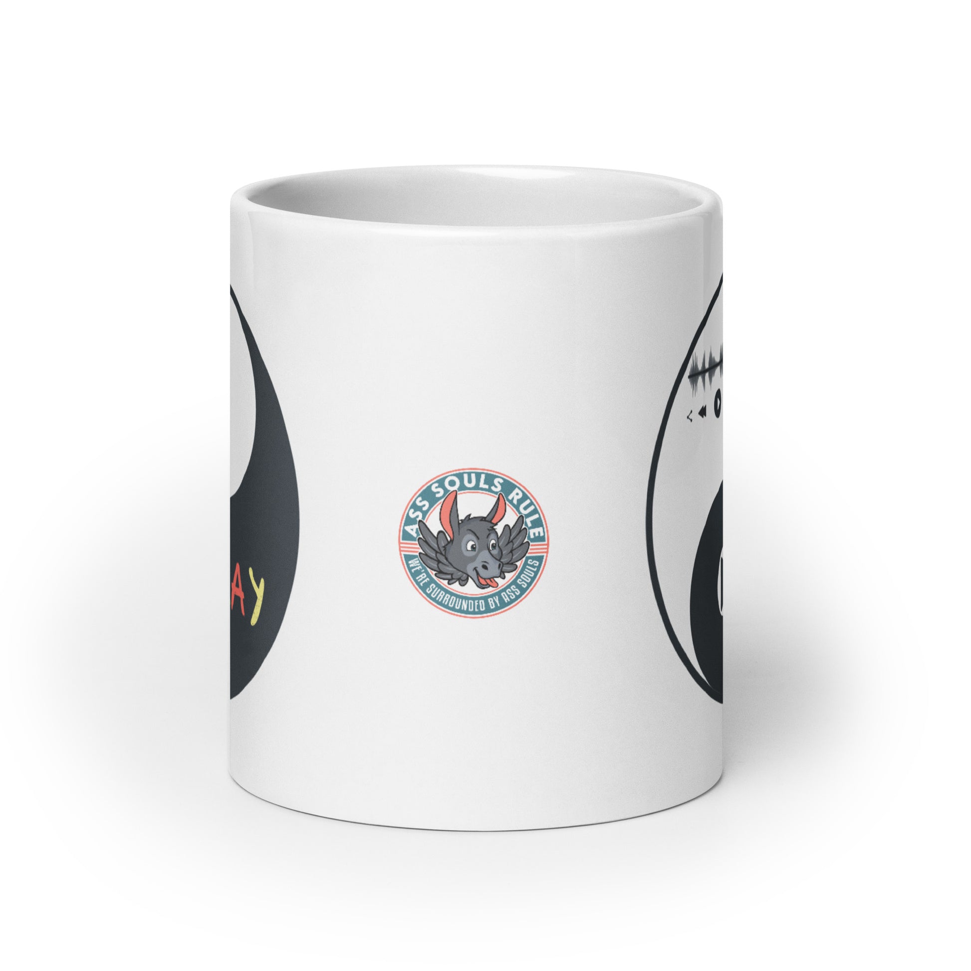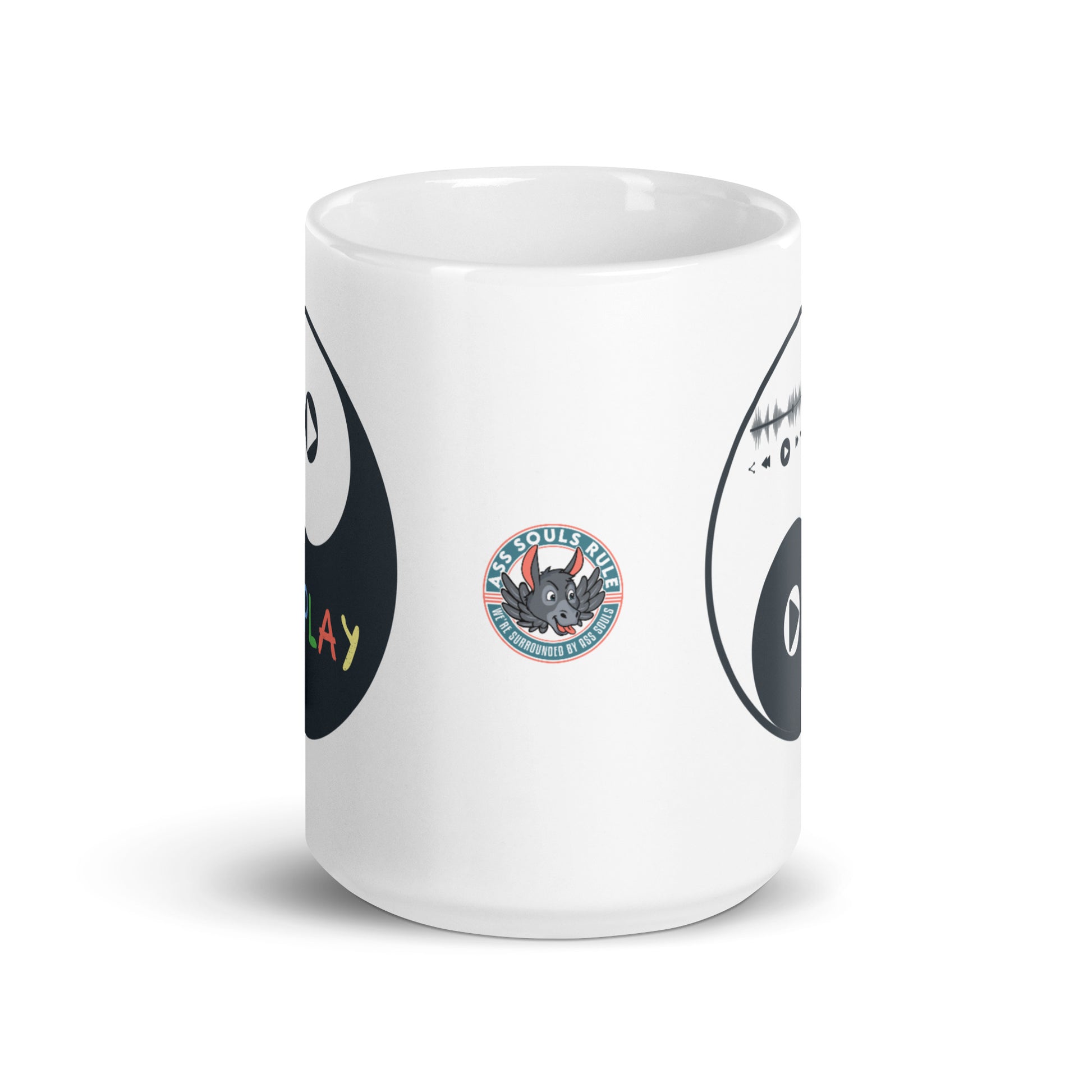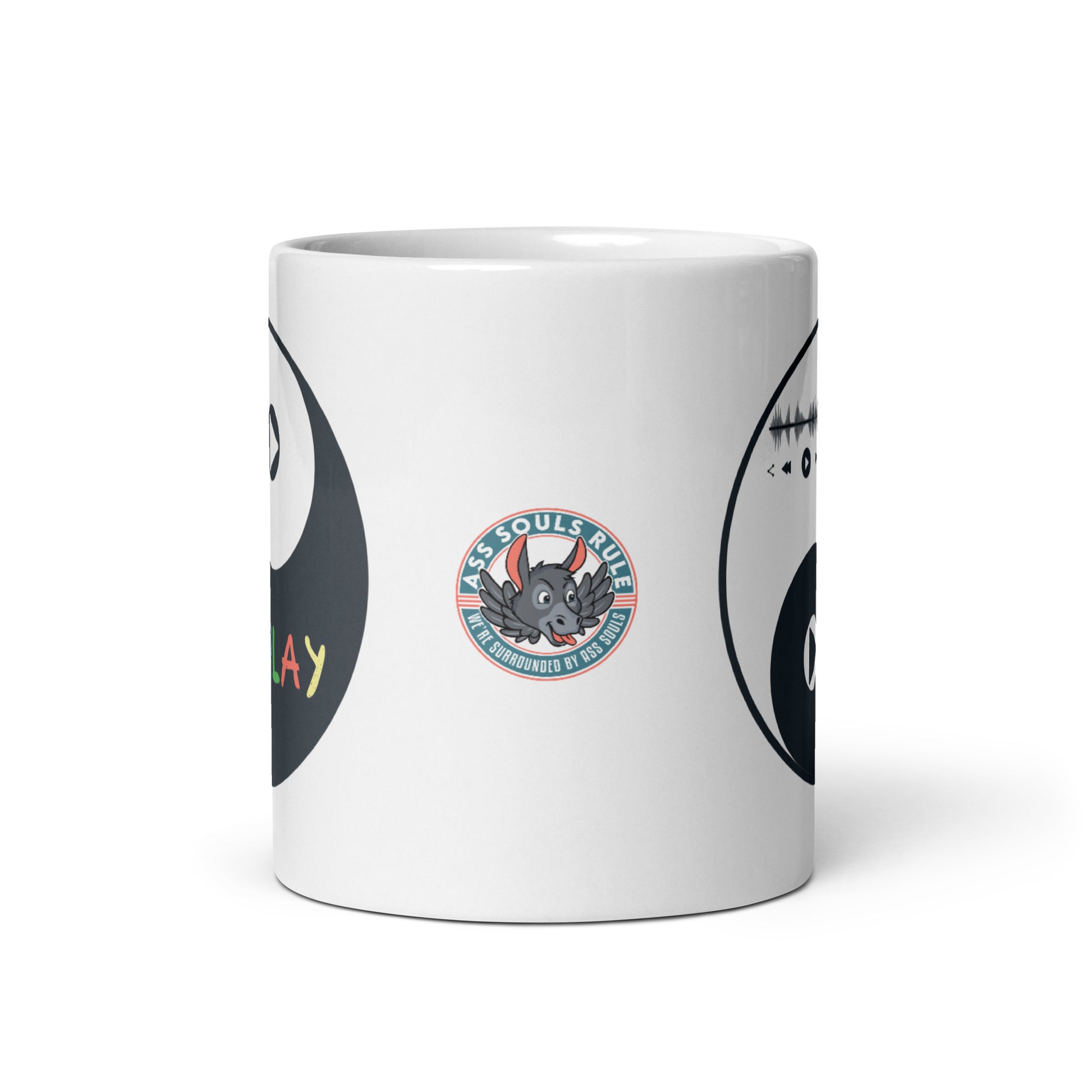 Whether you're drinking your morning coffee, evening tea, or something in between while play-yin or play-yang in The Game of Life with your Ass Souls —this mug's for you! It's sturdy and glossy with a vivid print that'll withstand the microwave and dishwasher.