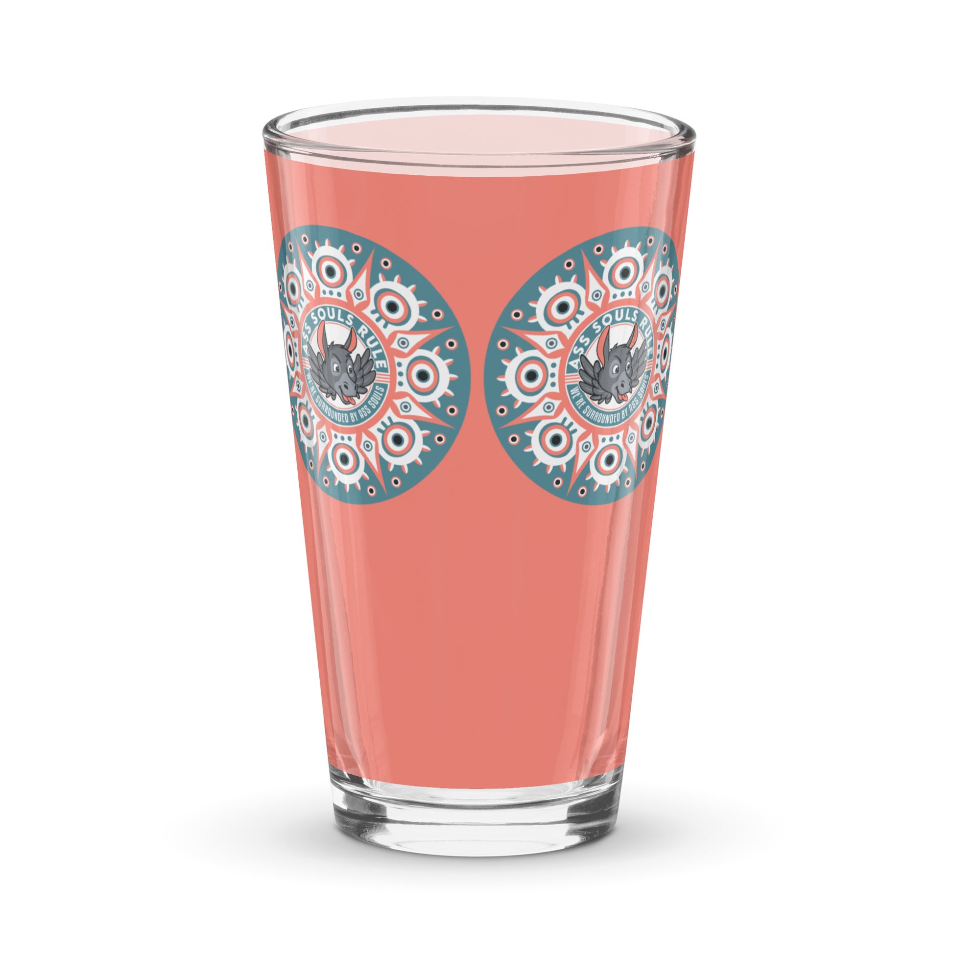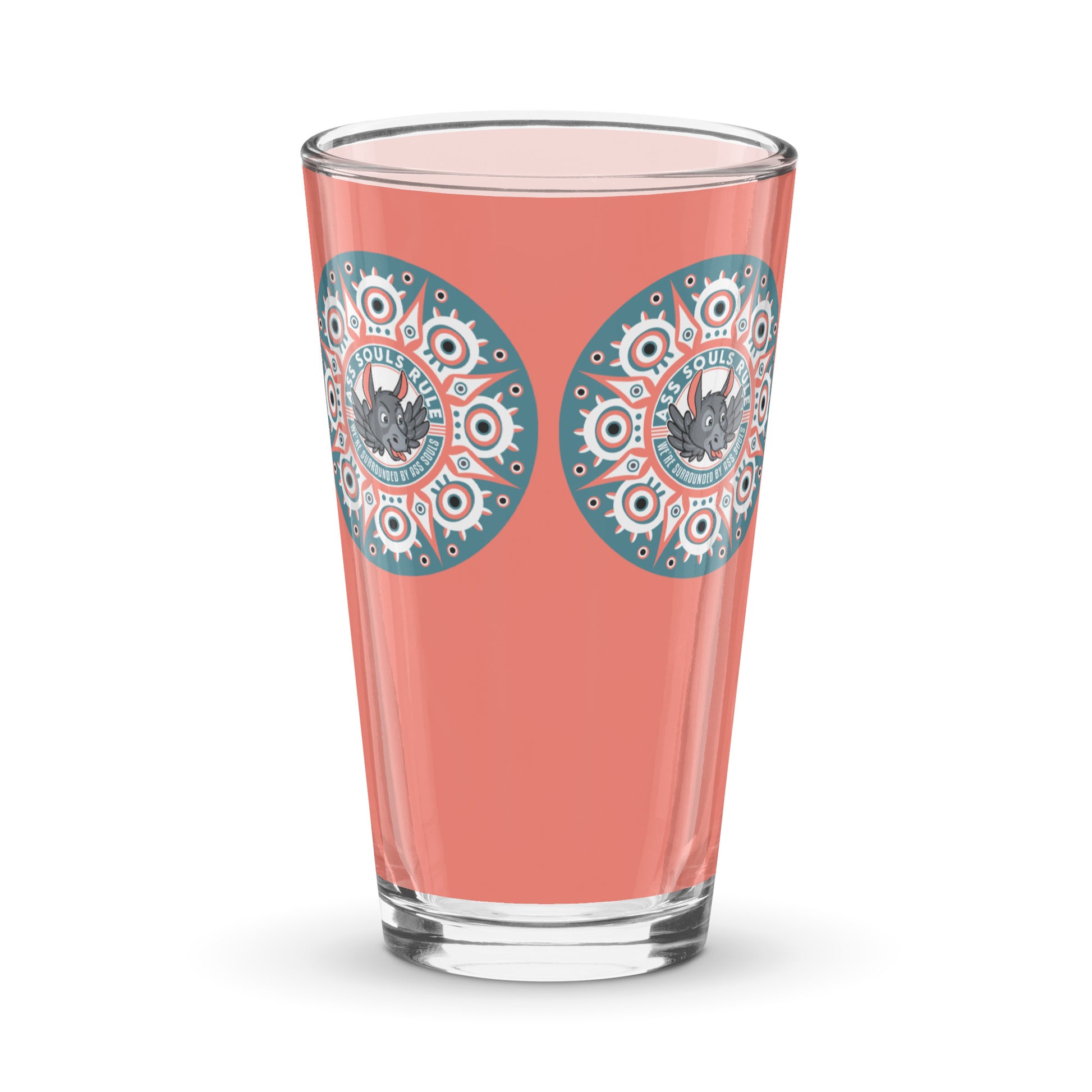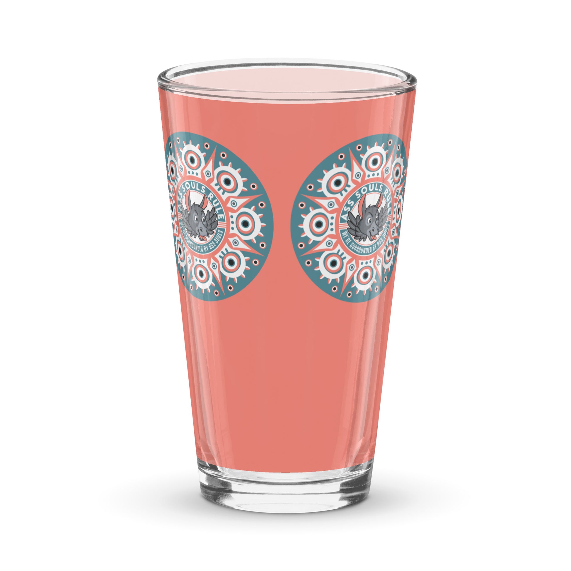 Enjoy your refreshing drinks in this salmon Psyche Secure-I.T. shaker pint glass! It can hold up to 16 oz and will be a durable, high-quality addition to your Ass Souls Rule glassware collection. What’s more, you can even use it as a mixing glass for cocktail evenings or have a fun evening with friends talking about your Ass Souls.