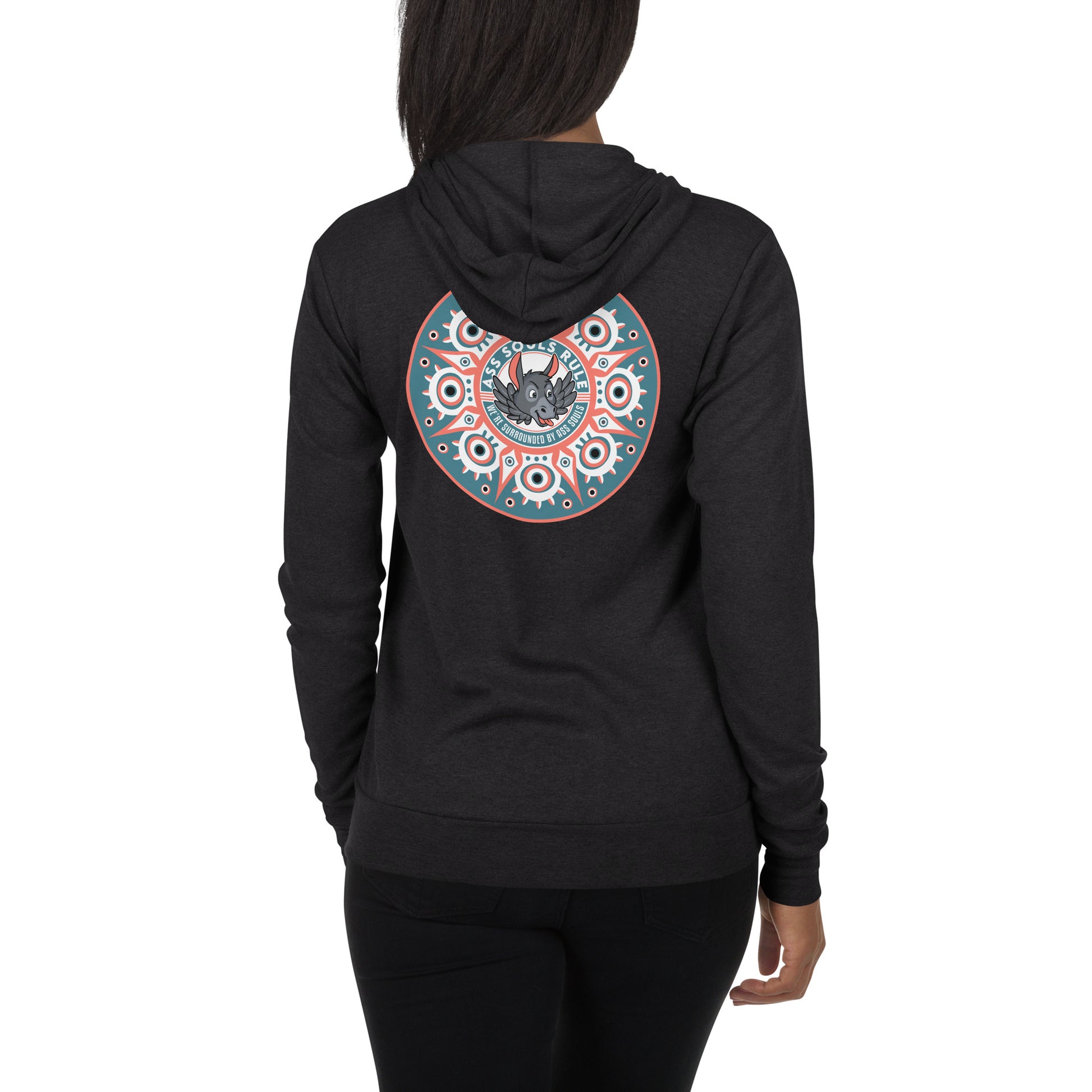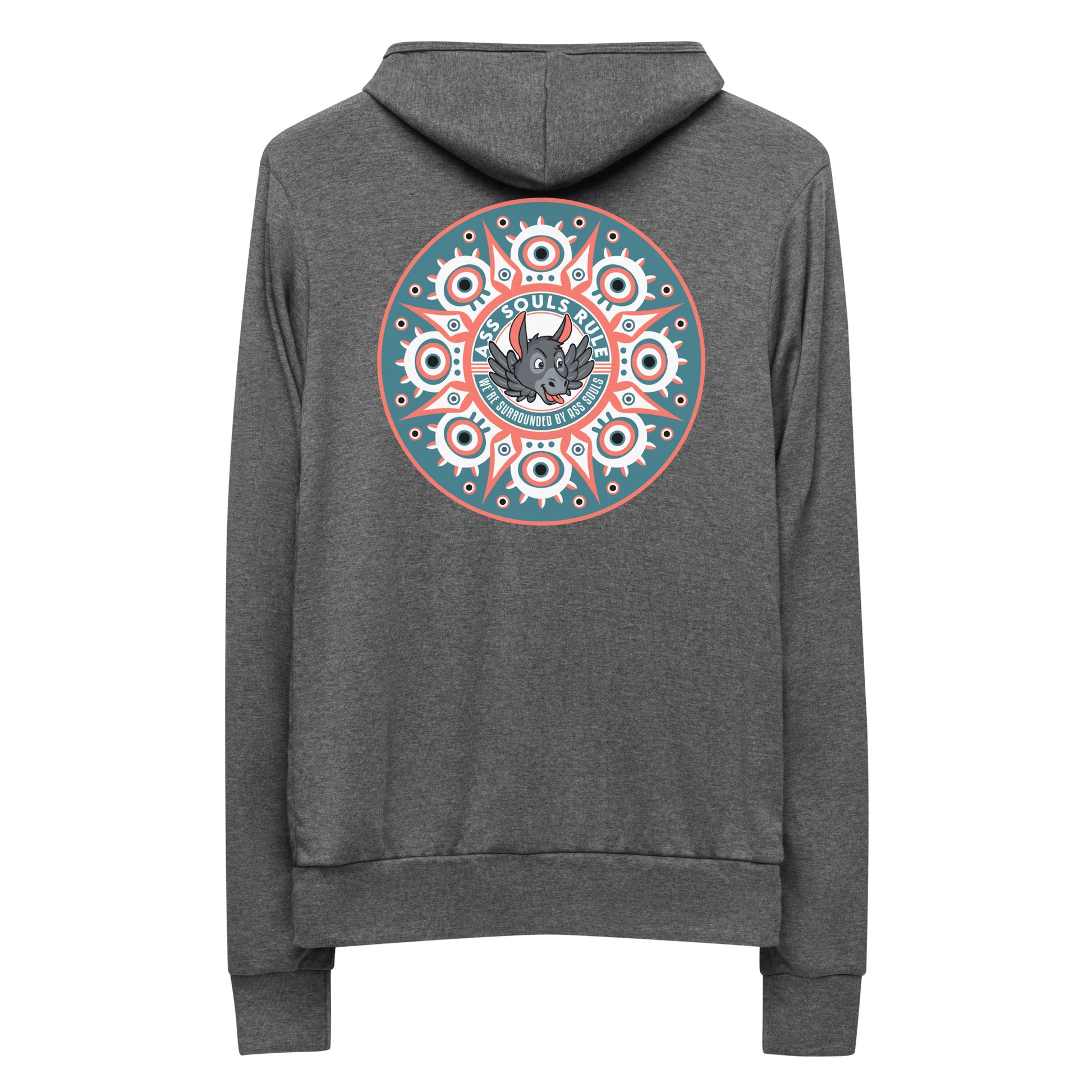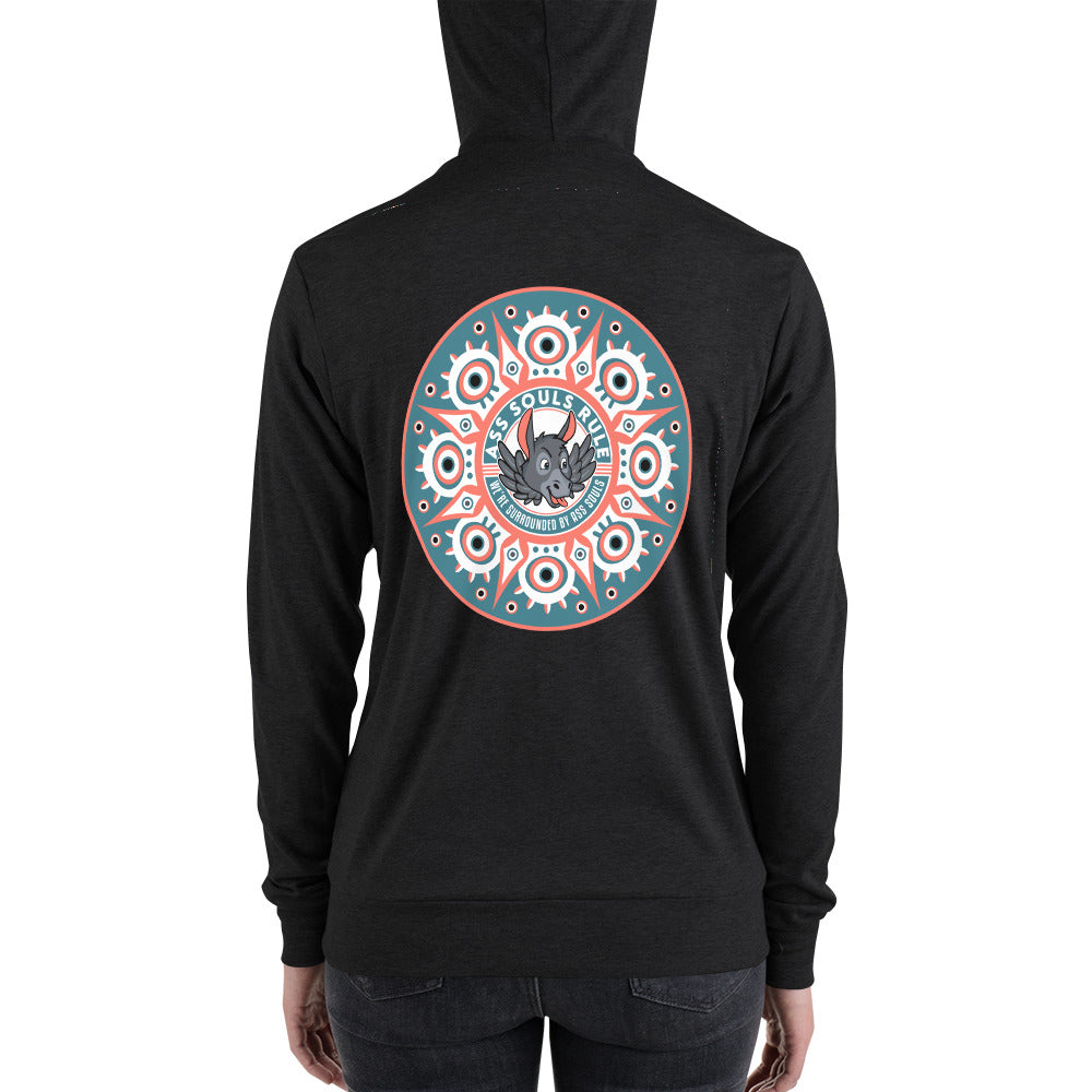 For when you get chilly on a summer evening by the lake if you're catching some not-so-nice vibes from Ass Souls, or simply need something comfy to throw on for some Ass Soul protection, this lightweight unisex Psyche Secure-I.T. zip hoodie with a modern fit, hood, front zip, and a kangaroo pocket is the way to go.
