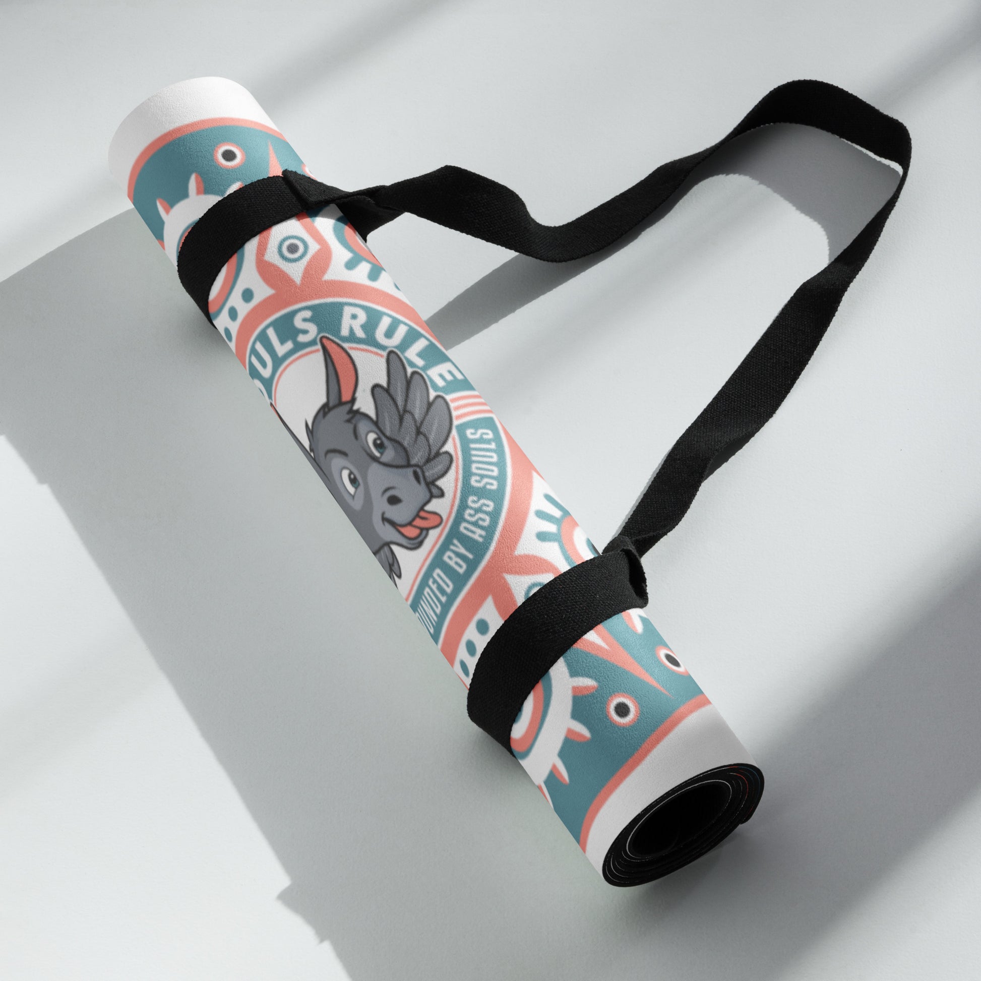 Whether you’re exercising, stretching, or meditating, it’s worth having a Psyche Secure-I.T. yoga mat that brings you joy and matches your Ass Souls Rule style. It’s easy to carry and provides both stability and comfort with anti-slip rubber on the bottom and soft microsuede on top.