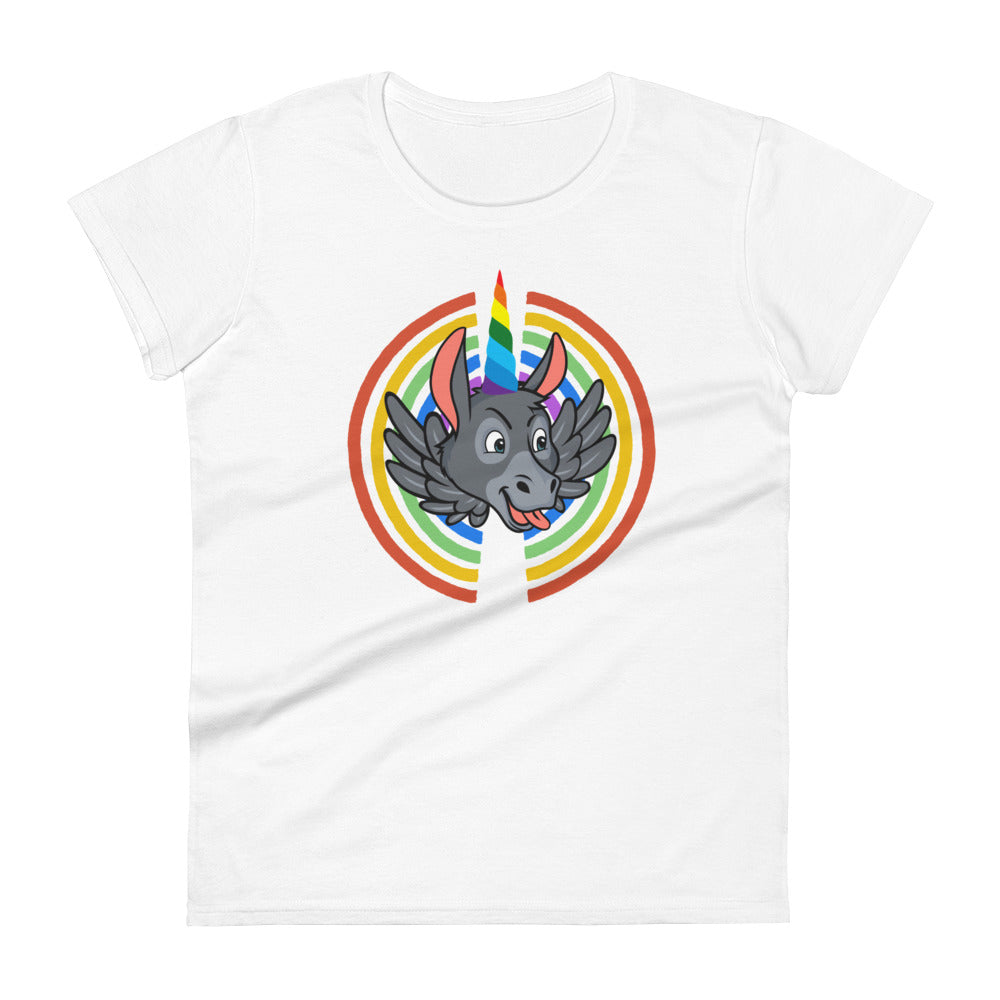 Your typical women's t-shirt with an atypical Rainbow 'Unicorn' Ass Souls Rule style. It's a lovely bit of clothing to wear to celebrate any rainbow themed event or anything using rainbow symbolism. The Ass Souls Rule warning is on the back near the neck because if it doesn't have it then it's a knock off by some Ass Soul! This fact will make some Ass Souls easier to spot.