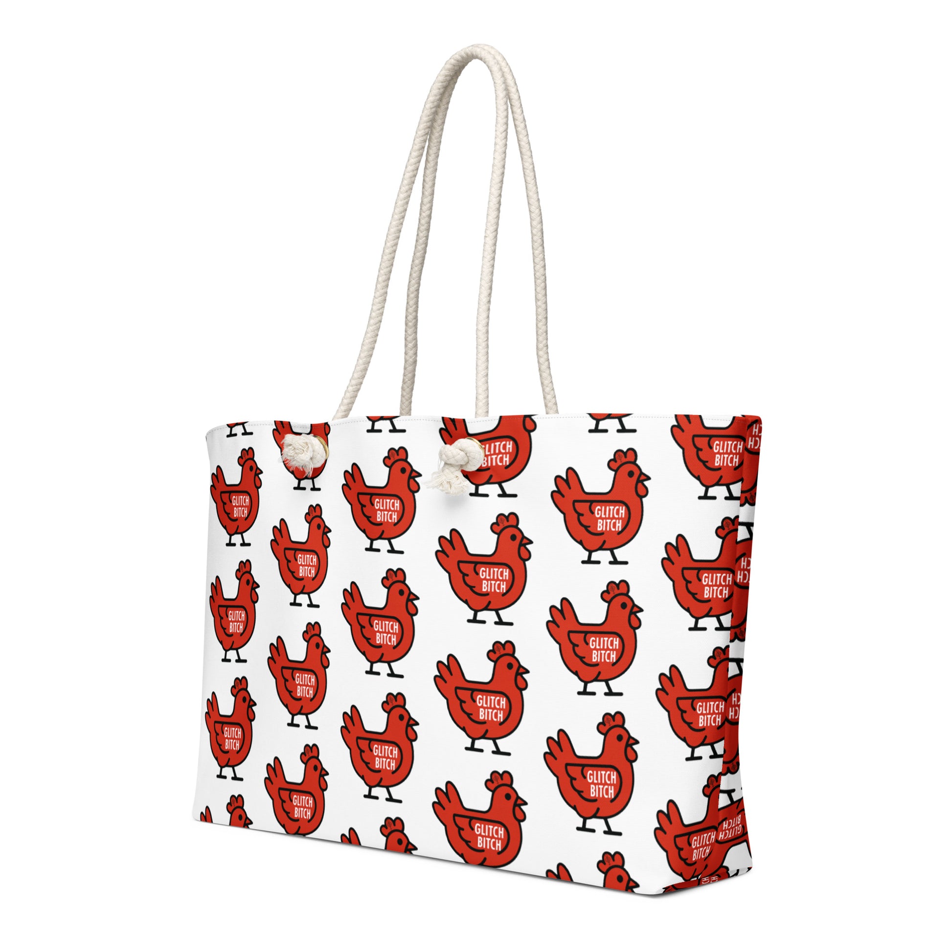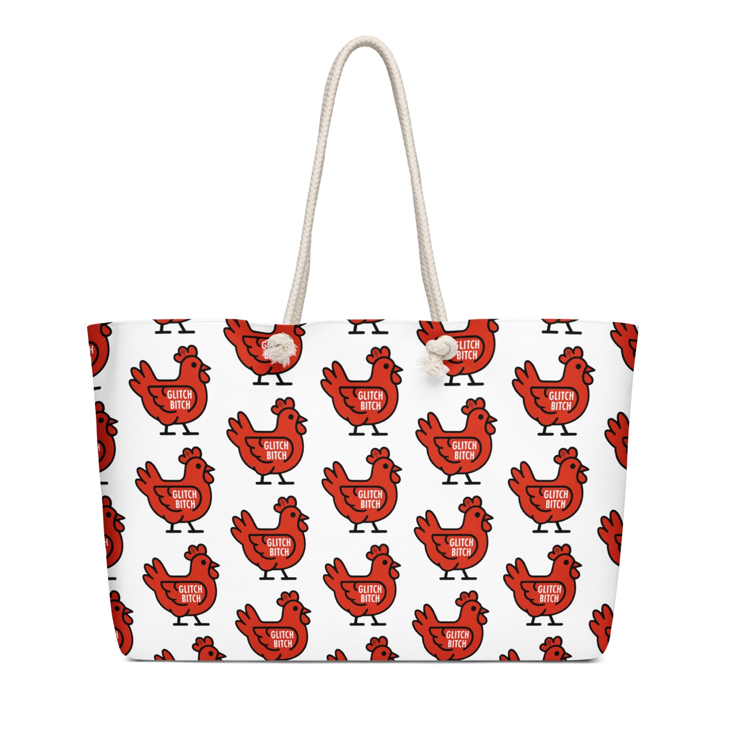 Red, Glitch Bitch... Big, bold, and ready to roam. This roomy tote features soft rope handles, a wrinkle-free finish, and plenty of space for your weekend essentials.