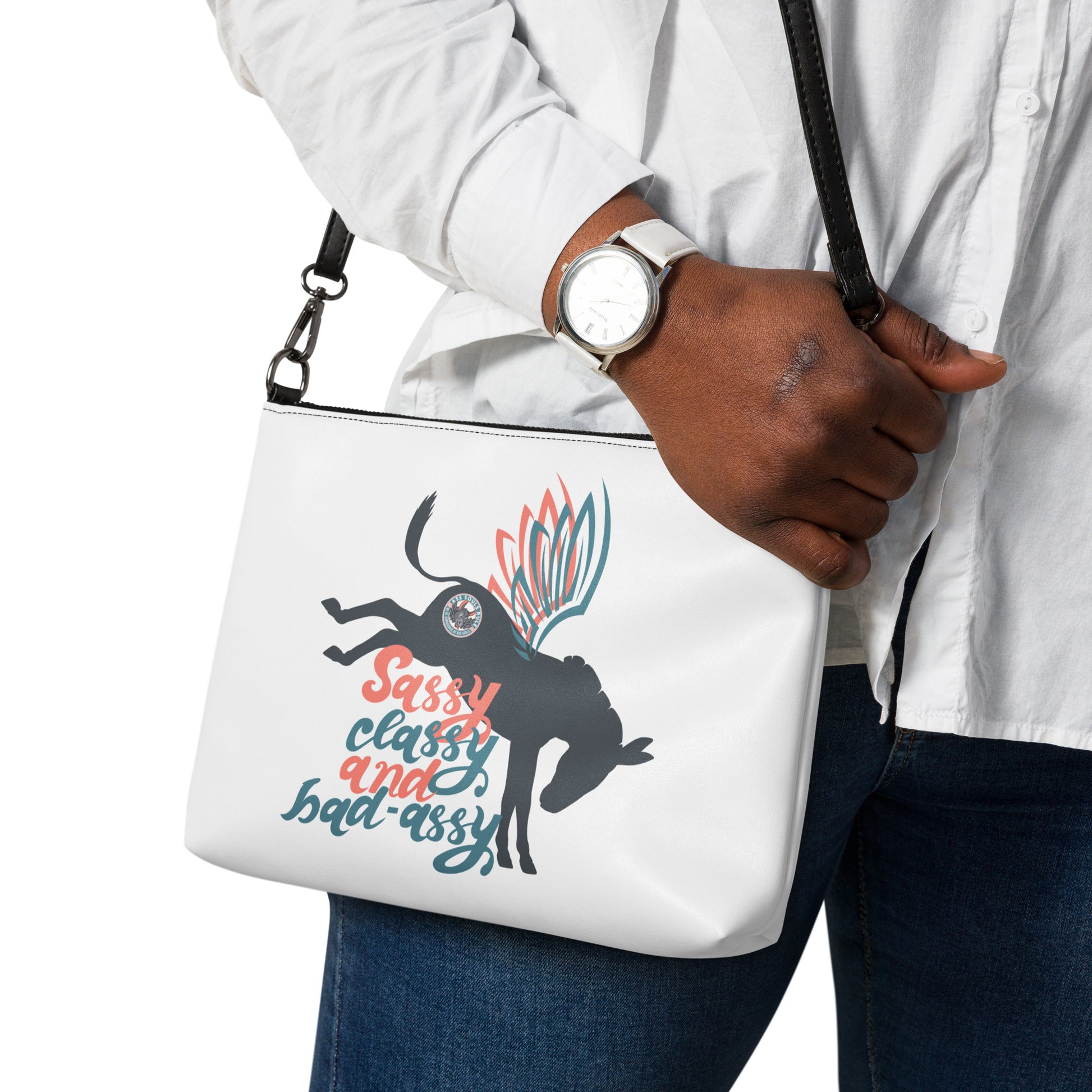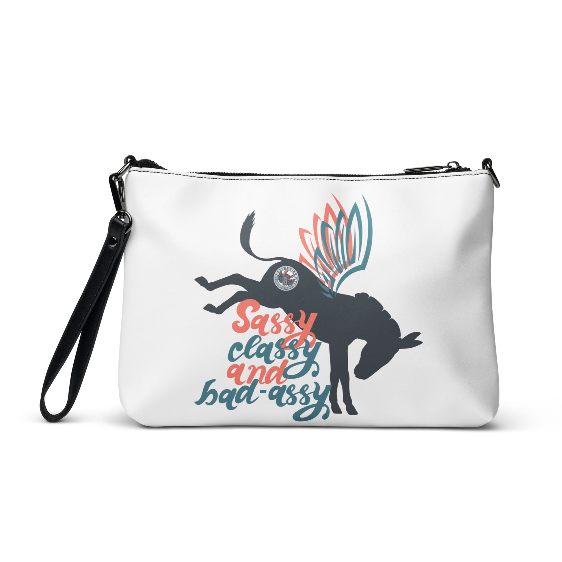 Keep your style on point and your hands free with our versatile Sassy, Classy, & Bad Assy crossbody bag. It’s made of premium faux leather and features dark gray hardware. Thanks to the zip-top closure and multiple inside pockets, you can keep your essentials secure and organized. Transform this Sassy, Classy, & Bad Assy crossbody bag with removable wrist and shoulder straps to style it for day-to-night looks.