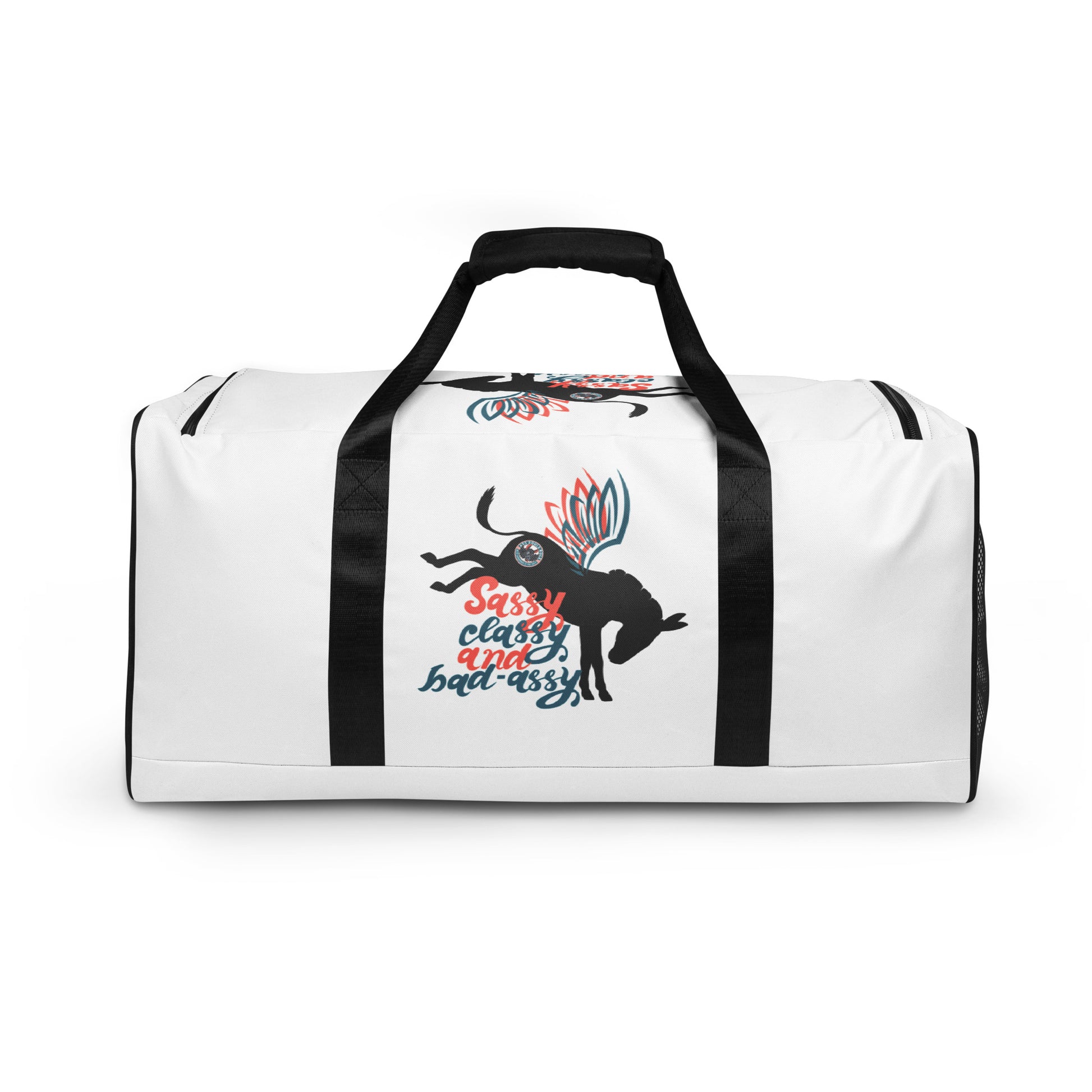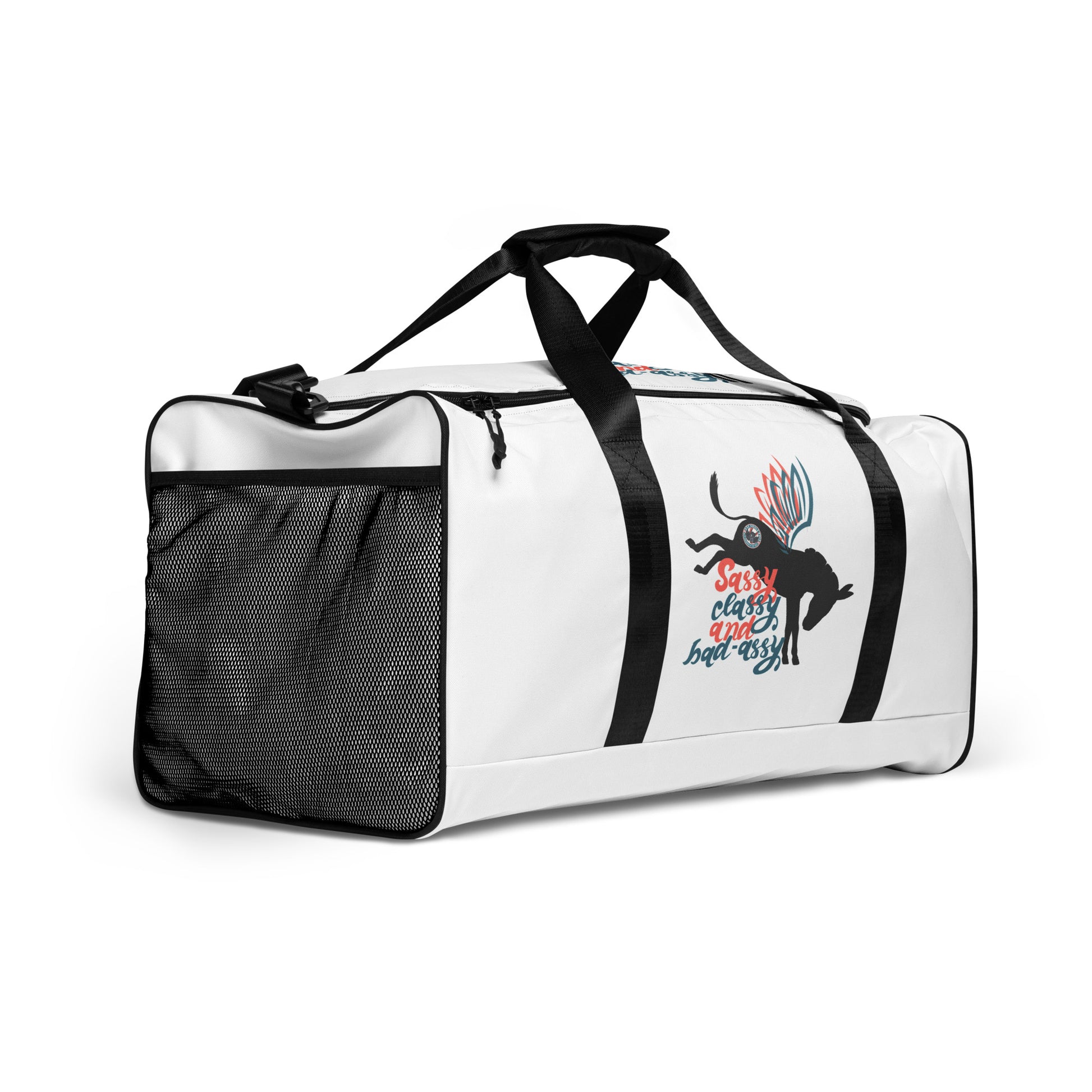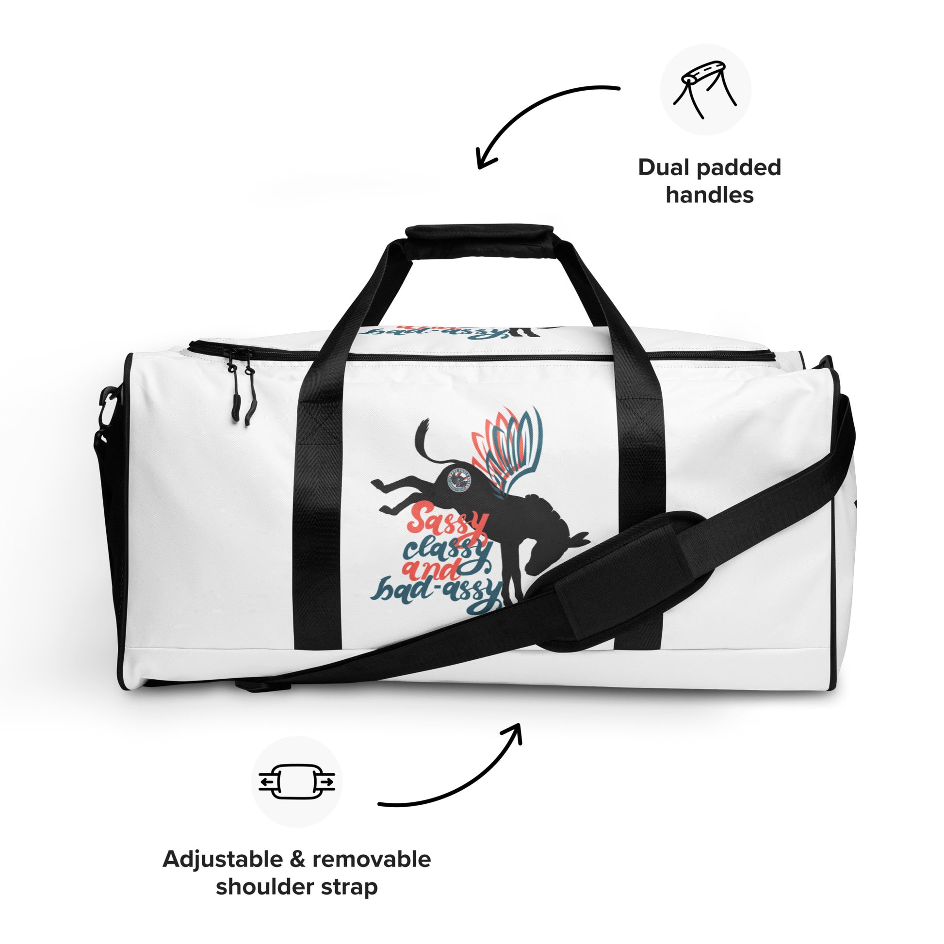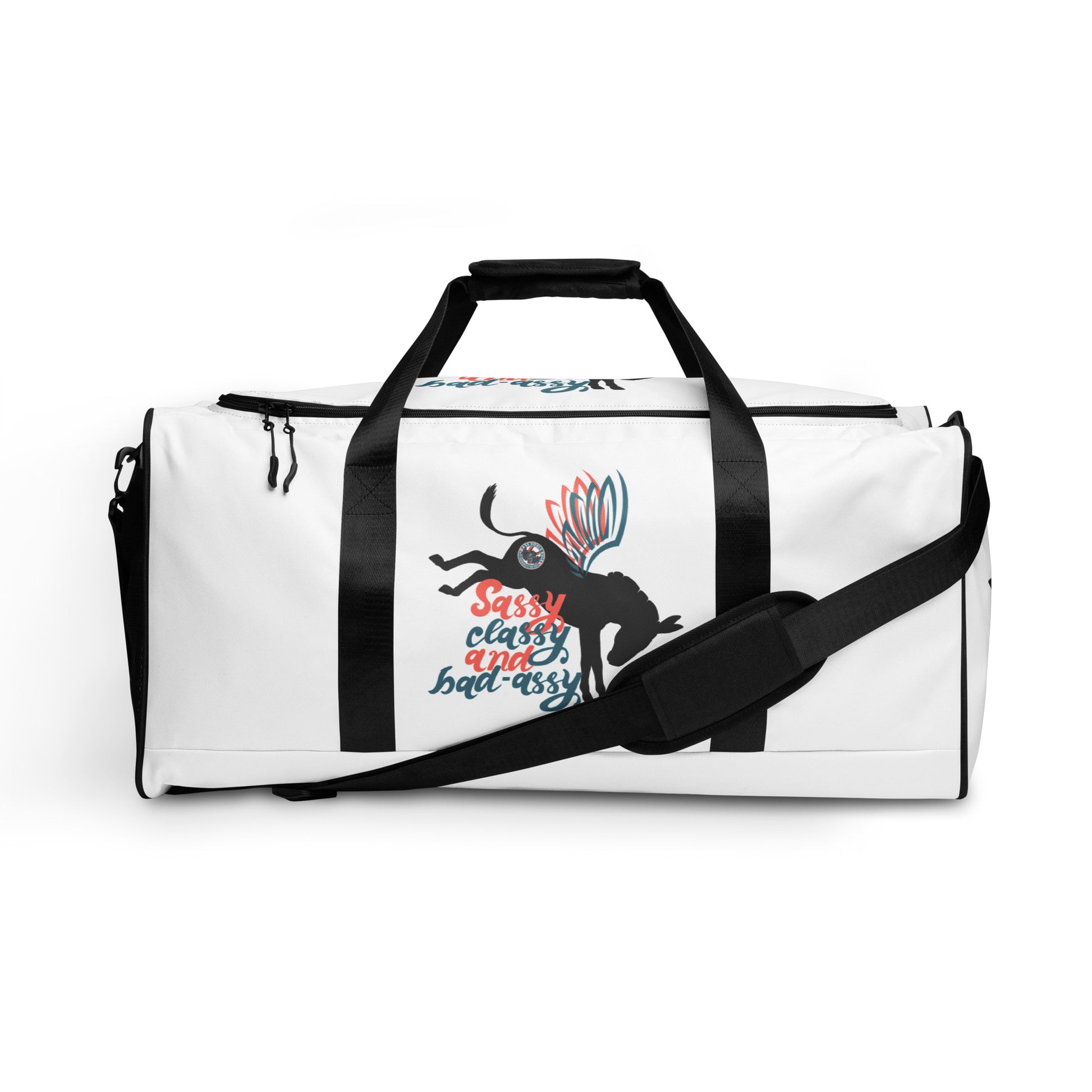 This Sassy, Classy, & Bad Assy duffle bag is the perfect companion for every occasion—take it with you when traveling, running daily errands, or going to the gym. The Sassy, Classy, & Bad Assy bag is spacious and will keep all your stuff neat and organized with its multiple pockets, including one with a zipper for your most valuable possessions. Adjust the padded shoulder strap when the bag’s helping you carry heavier things, and continue your daily run without a worry!