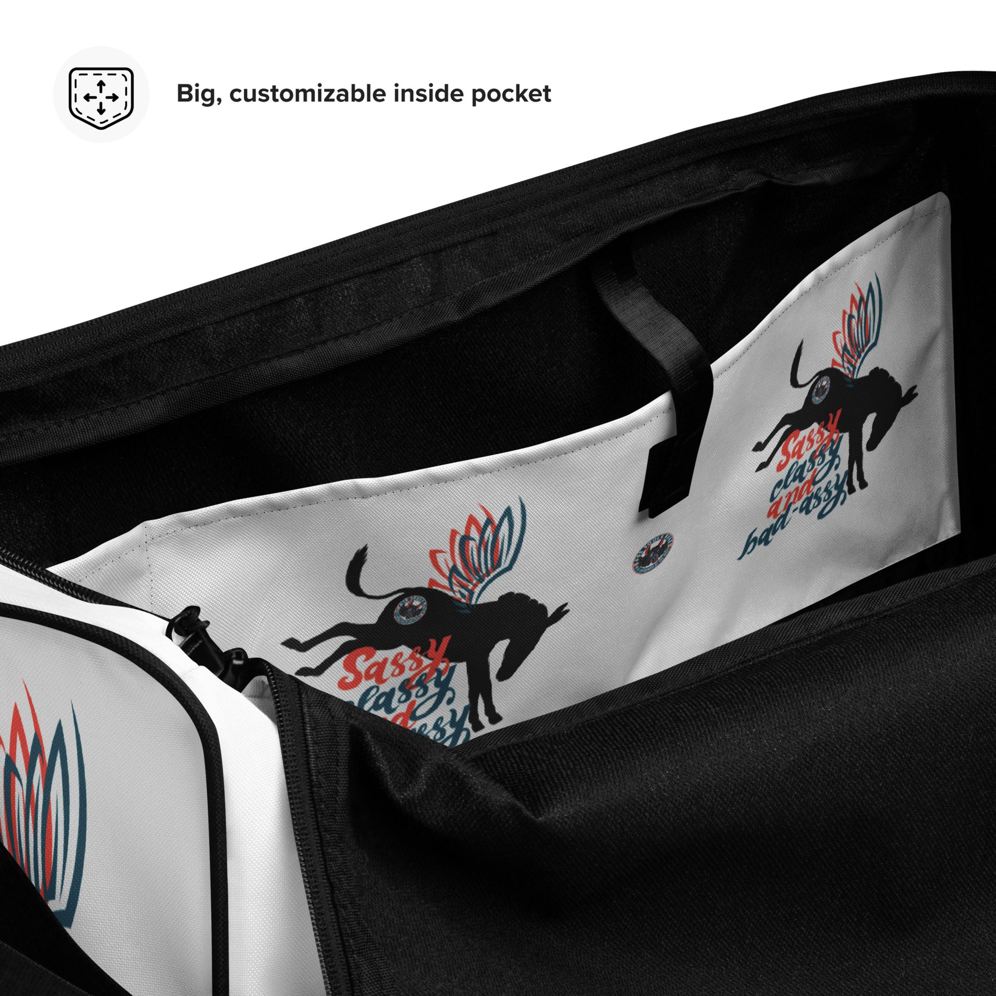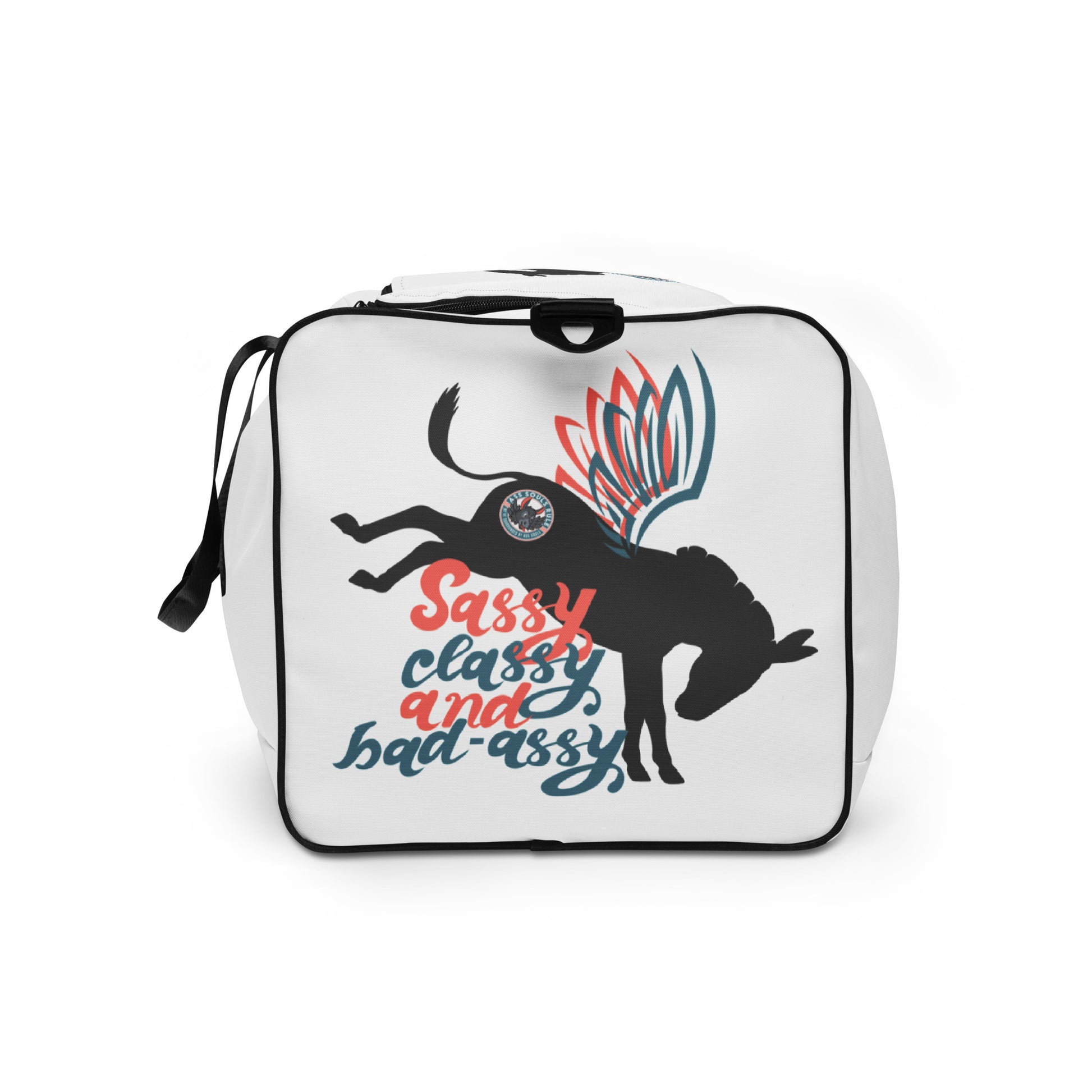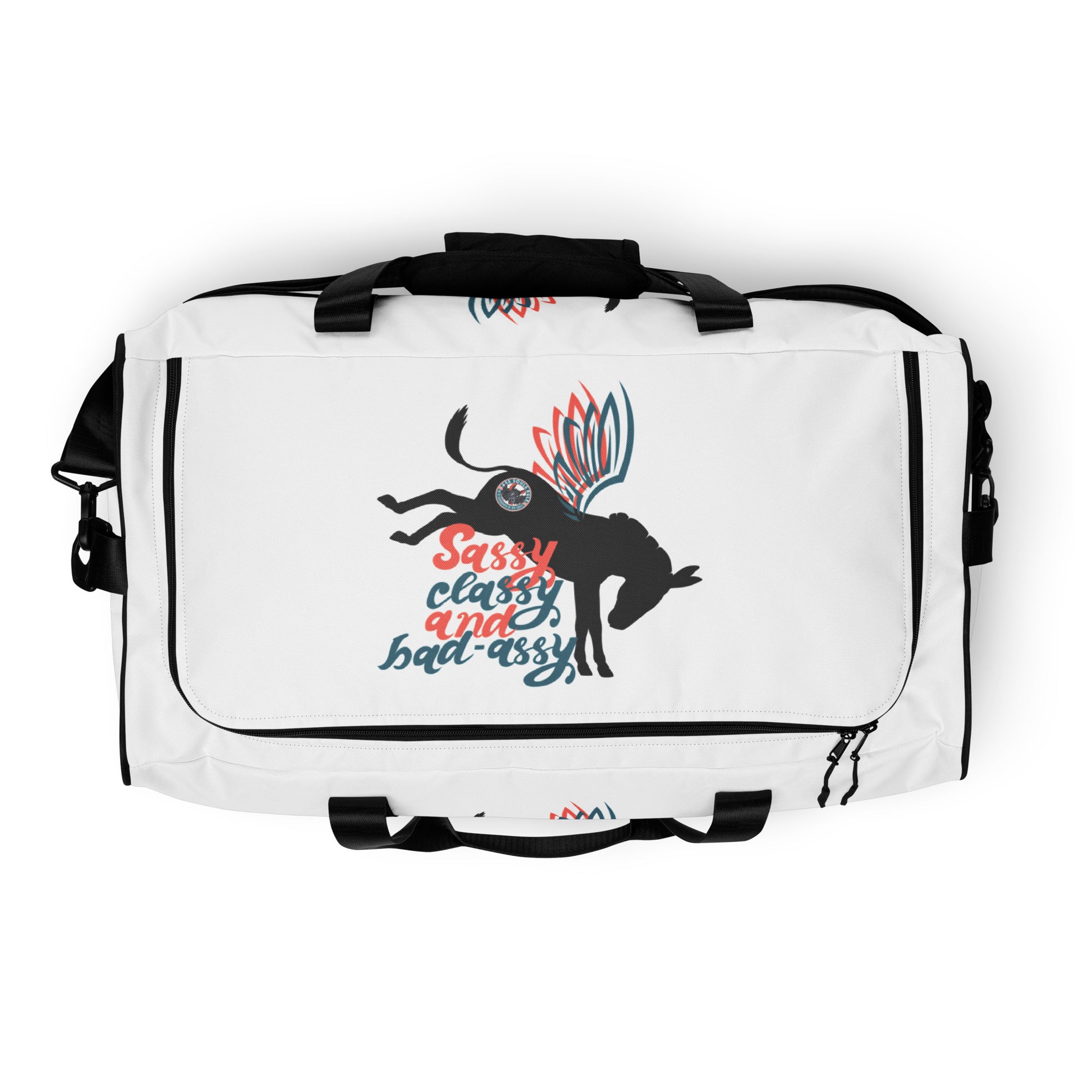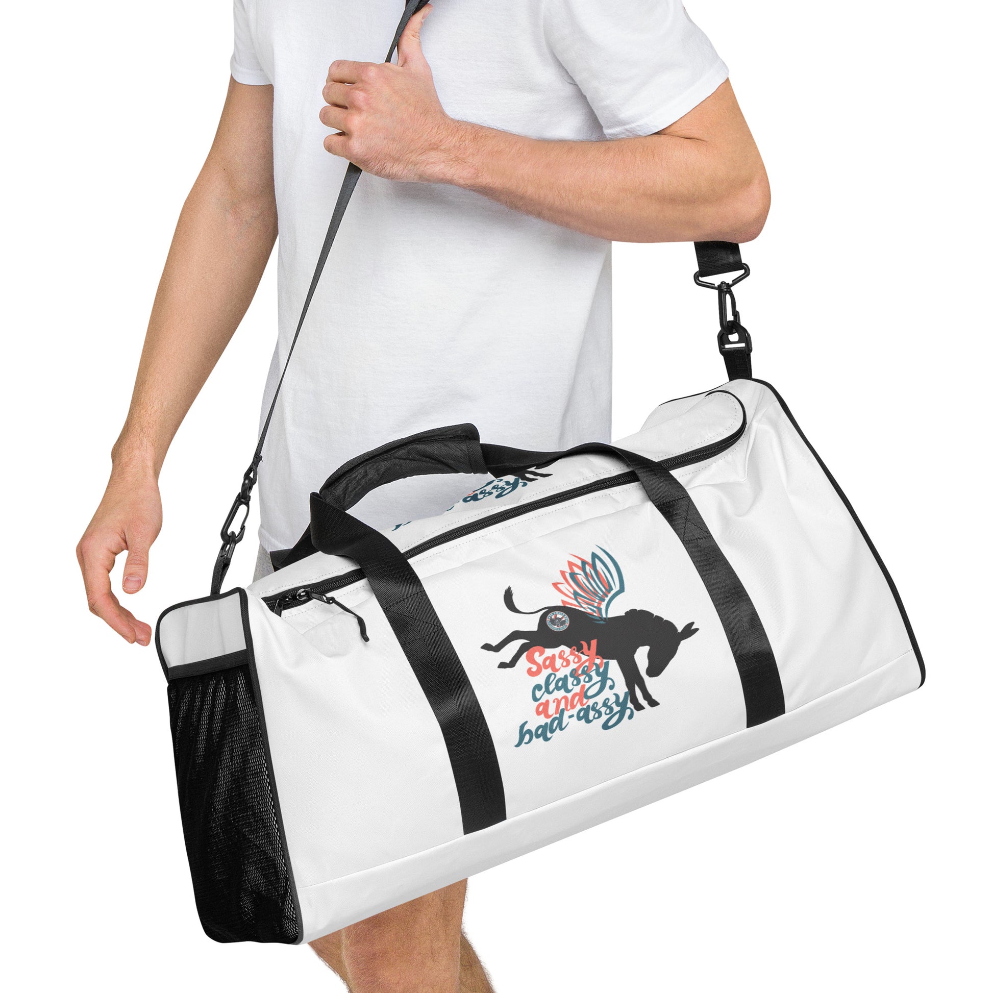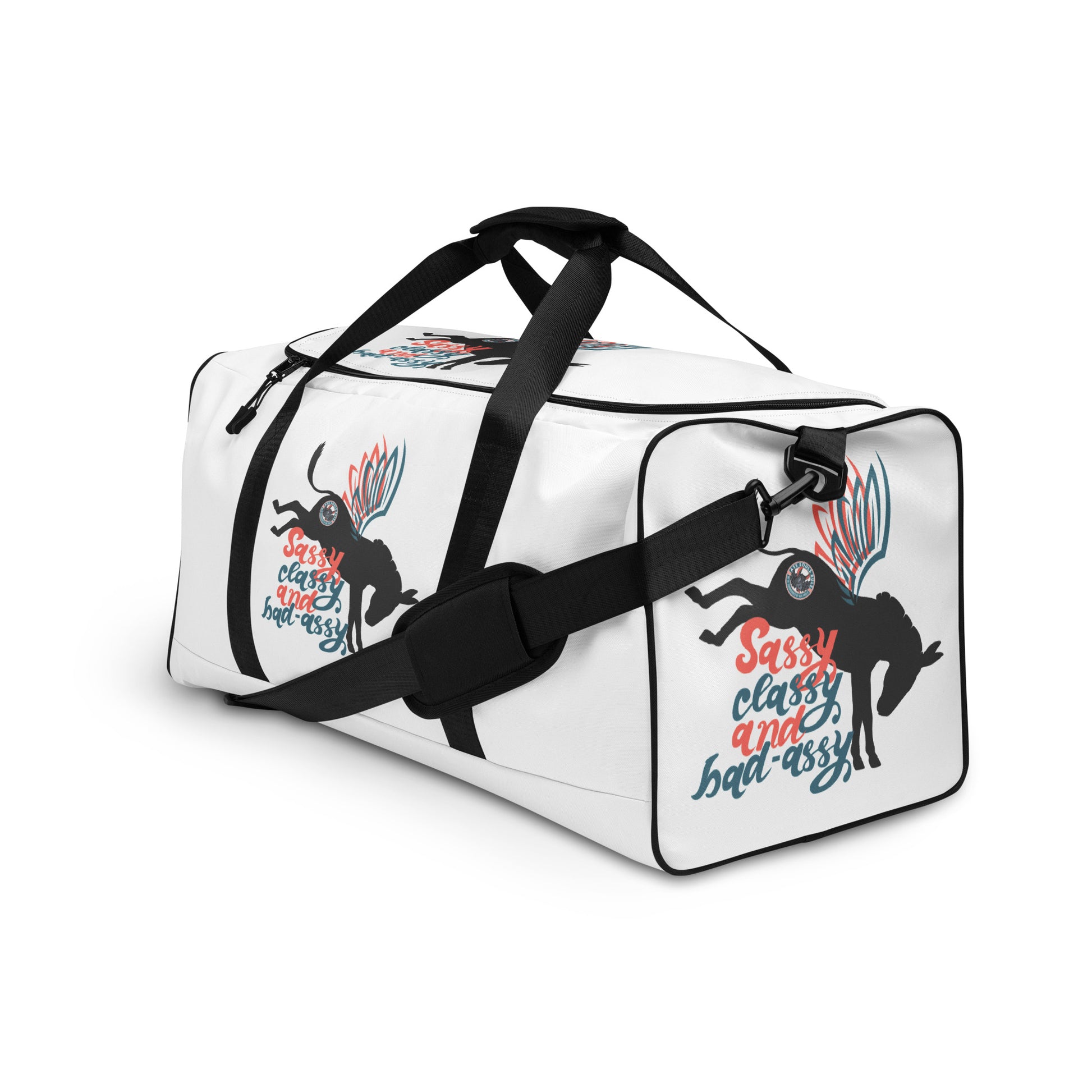 This Sassy, Classy, & Bad Assy duffle bag is the perfect companion for every occasion—take it with you when traveling, running daily errands, or going to the gym. The Sassy, Classy, & Bad Assy bag is spacious and will keep all your stuff neat and organized with its multiple pockets, including one with a zipper for your most valuable possessions. Adjust the padded shoulder strap when the bag’s helping you carry heavier things, and continue your daily run without a worry!