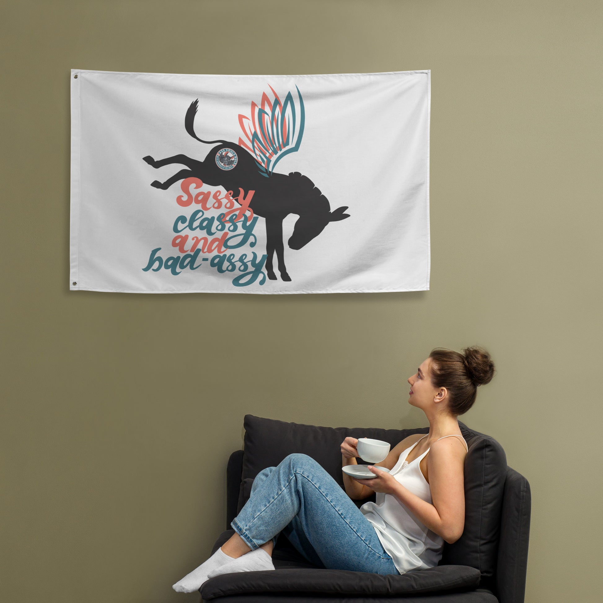 Who doesn’t want to turn their house into a Sassy, Classy, & Bad Assy home? Brighten up your space by adding this Sassy, Classy, & Bad Assy flag to your wall. Your flag won’t crease or shrink thanks to the polyester material and will last a long time. Great for boats, offices, or anywhere else you can think of!