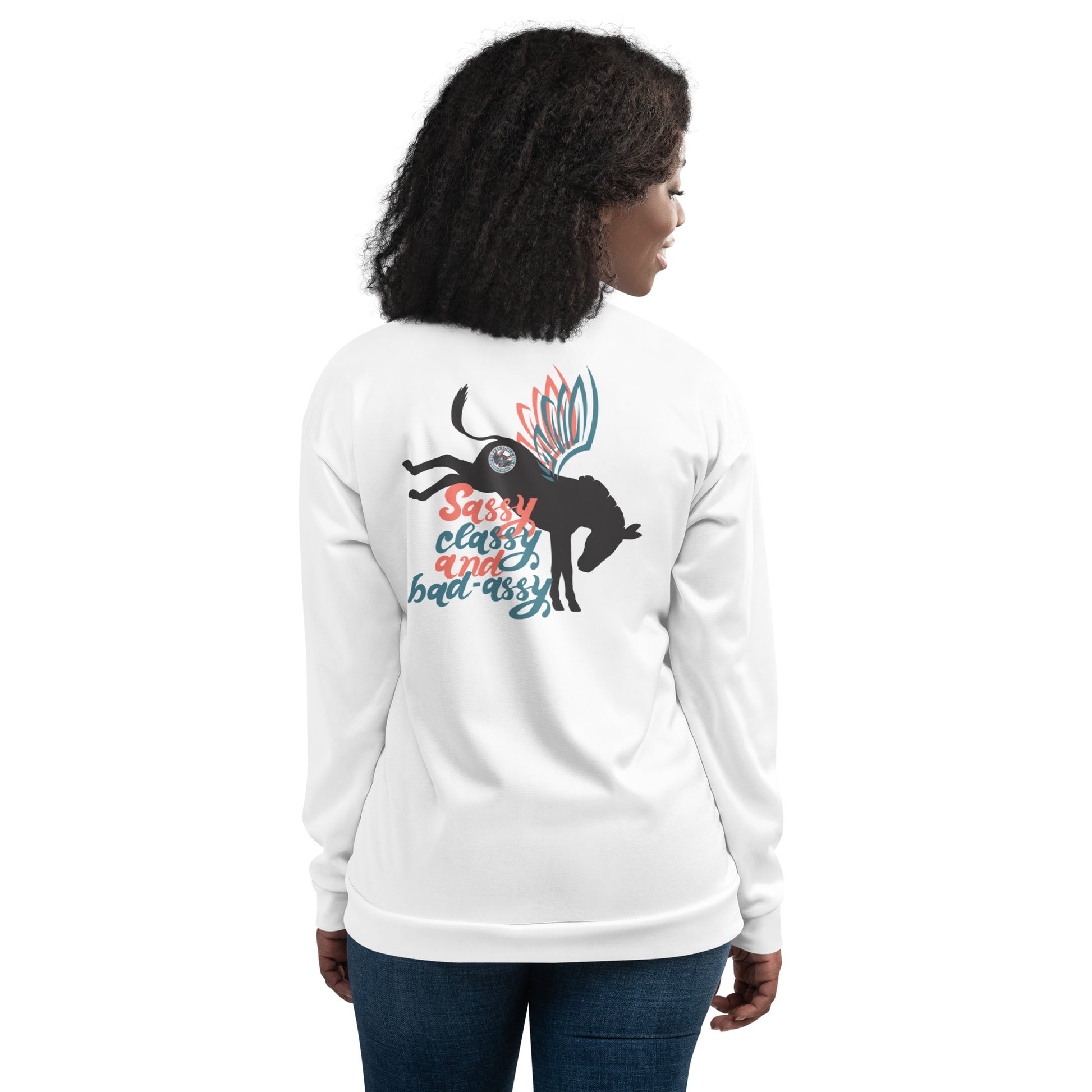 Sassy, Classy, & Bad Assy unisex bomber jacket