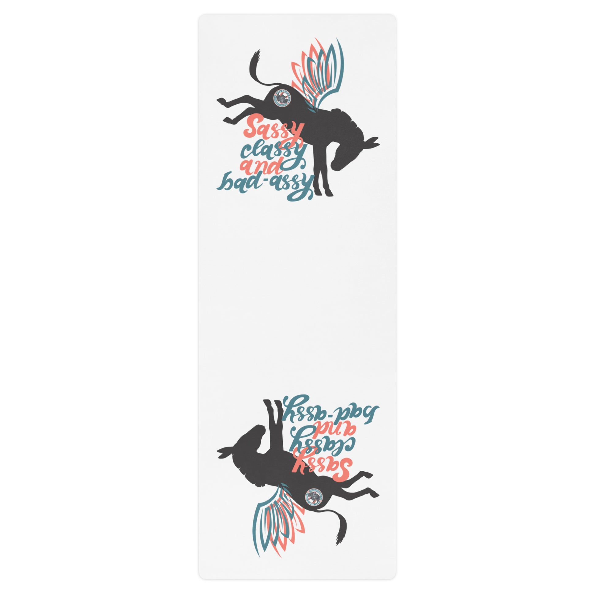 Whether you’re exercising, stretching, or meditating, it’s worth having a Sassy, Classy, & Bad Assy yoga mat that brings you joy and matches your Sassy, Classy, & Bad Assy style. It’s easy to carry and provides both stability and comfort with anti-slip rubber on the bottom and soft microsuede on top.
