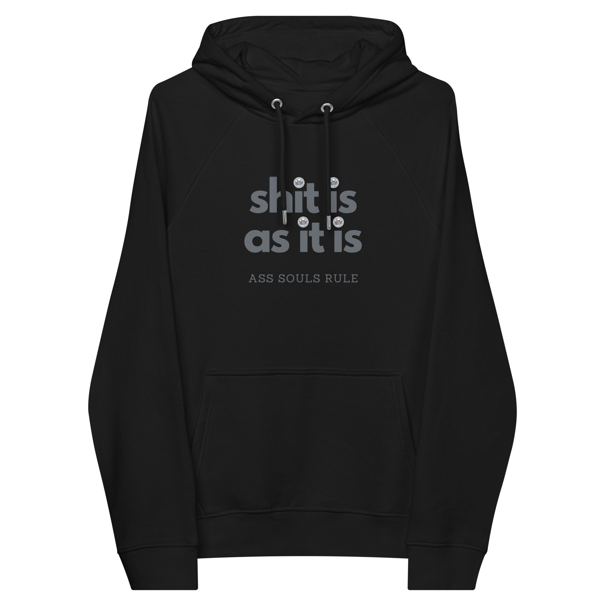 If there’s one fashion rule to live by, let it be that comfort doesn’t have to be compromised for the sake of style in The Game of Life while playing with your Ass Souls. Pair the super-soft unisex eco raglan hoodie with joggers for a relaxed look, or elevate the outfit with a skirt, oversized blazer, or classic trousers. The hoodie’s brushed inside ensures a comfy and snug feel, and will keep you warm during the colder days.