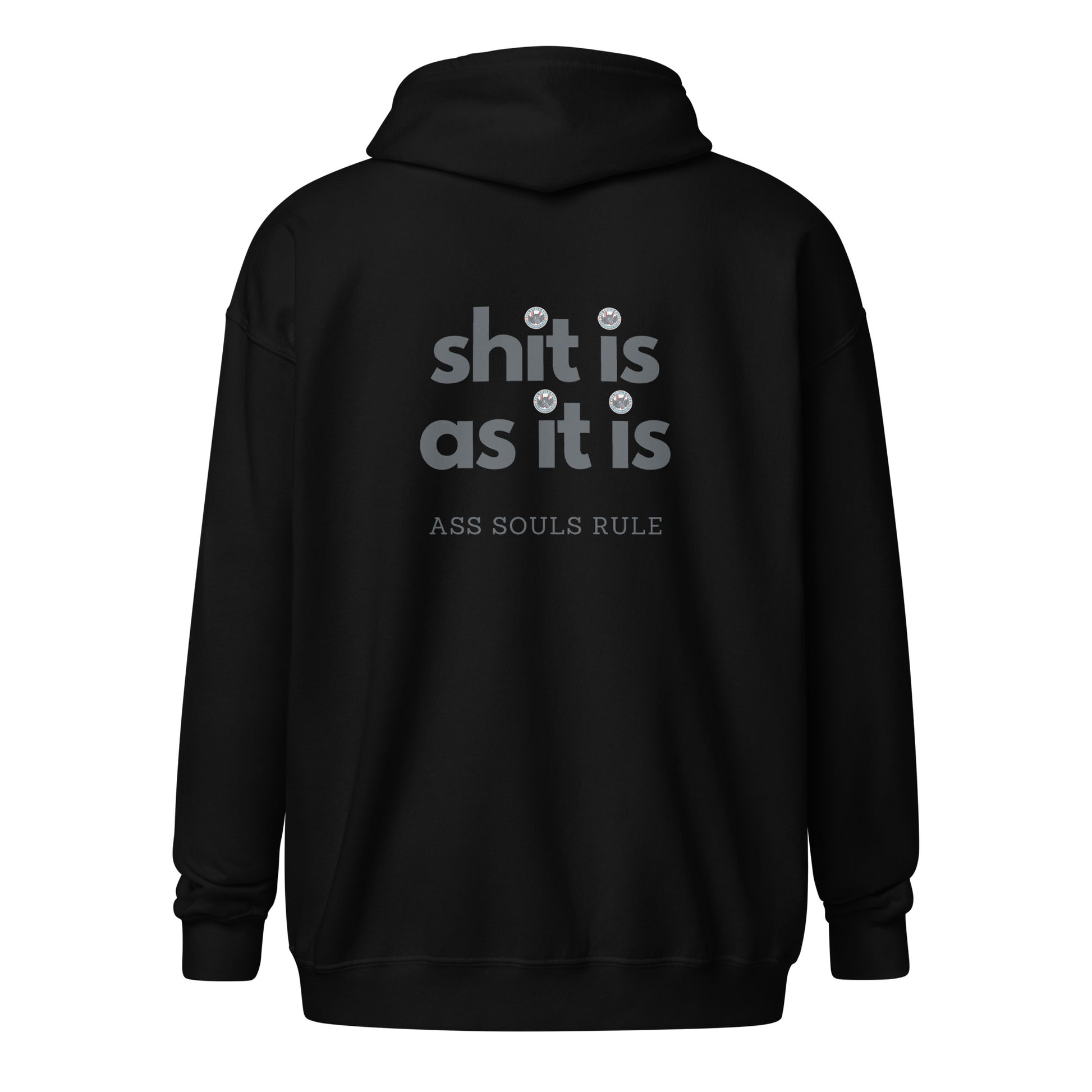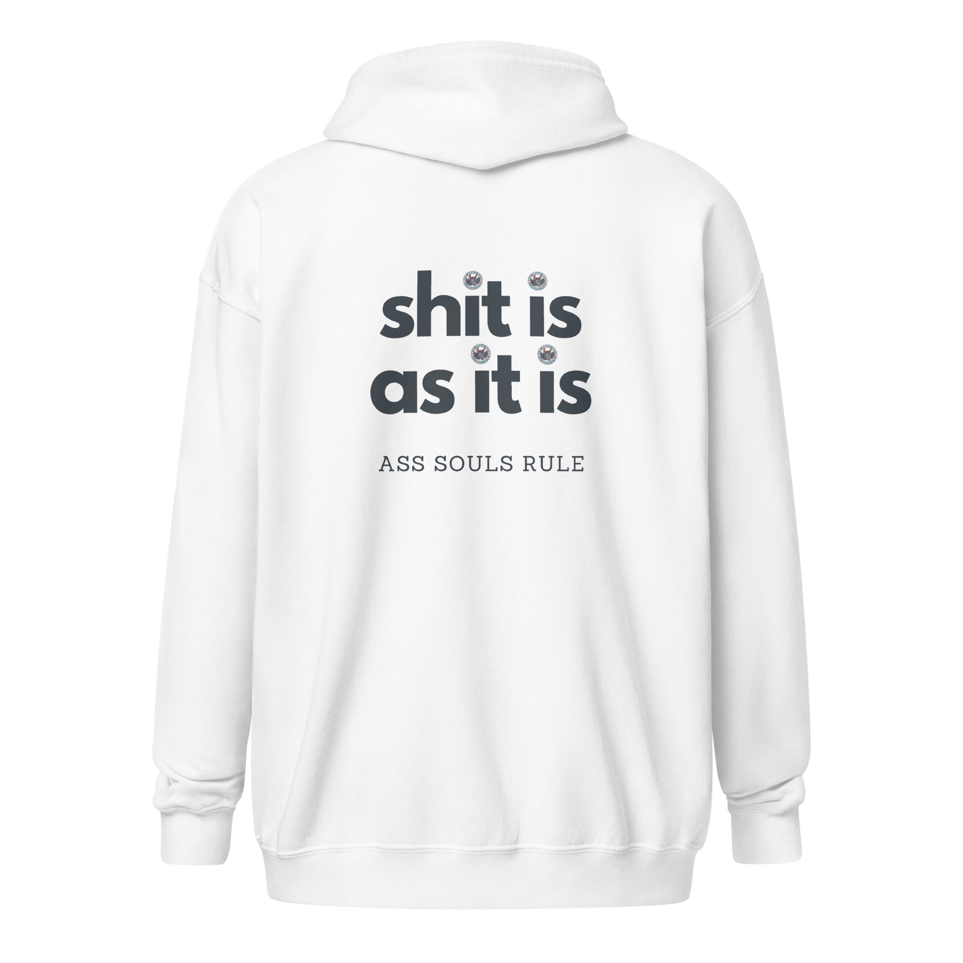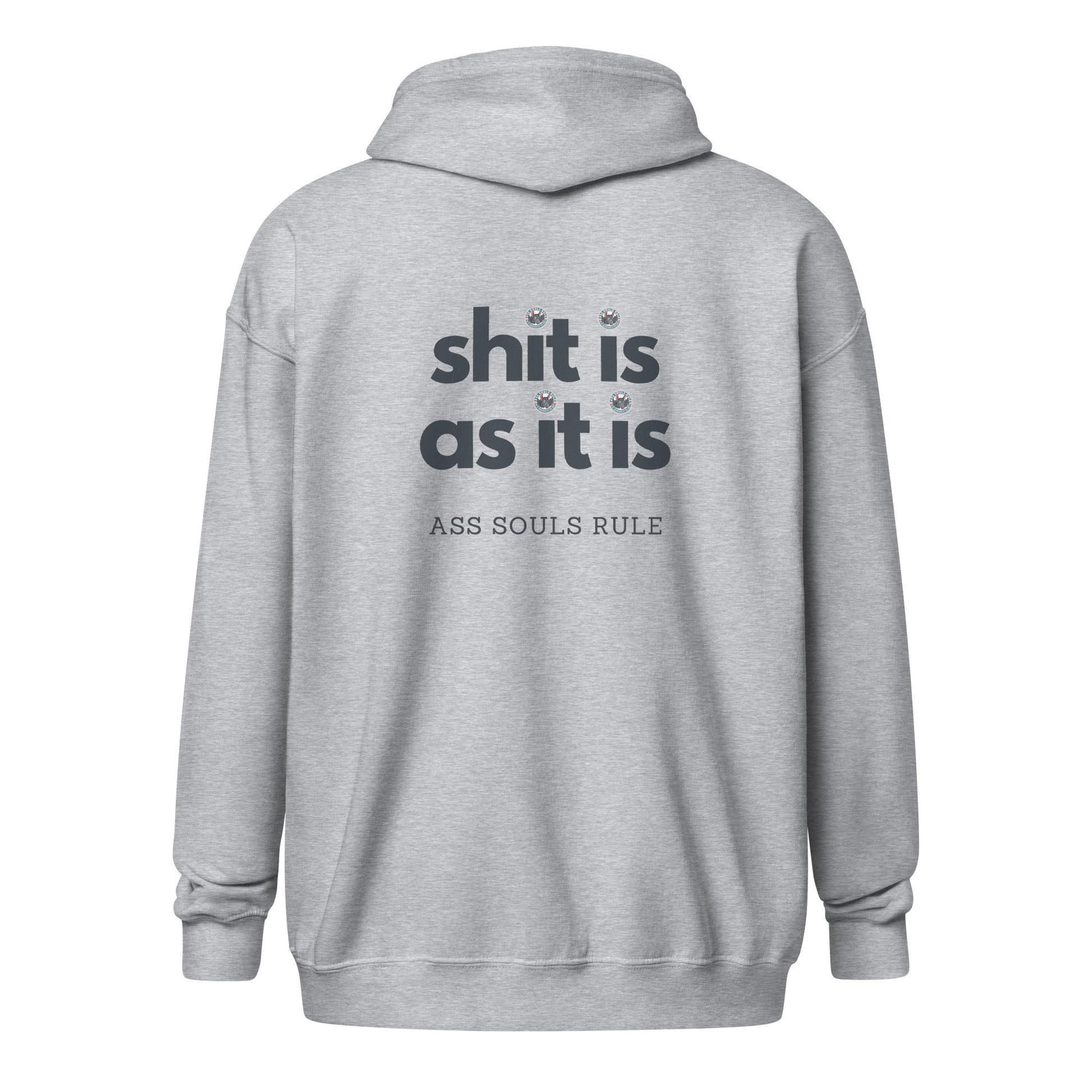 Designed with ASR style and your comfort in mind, this hoodie will quickly become your new ASR favorite. It’s made from soft fleece inside and outside, with a sturdy metal zipper, convenient front pockets, and a hood with color-matched drawstrings. Shit Is As It Is.