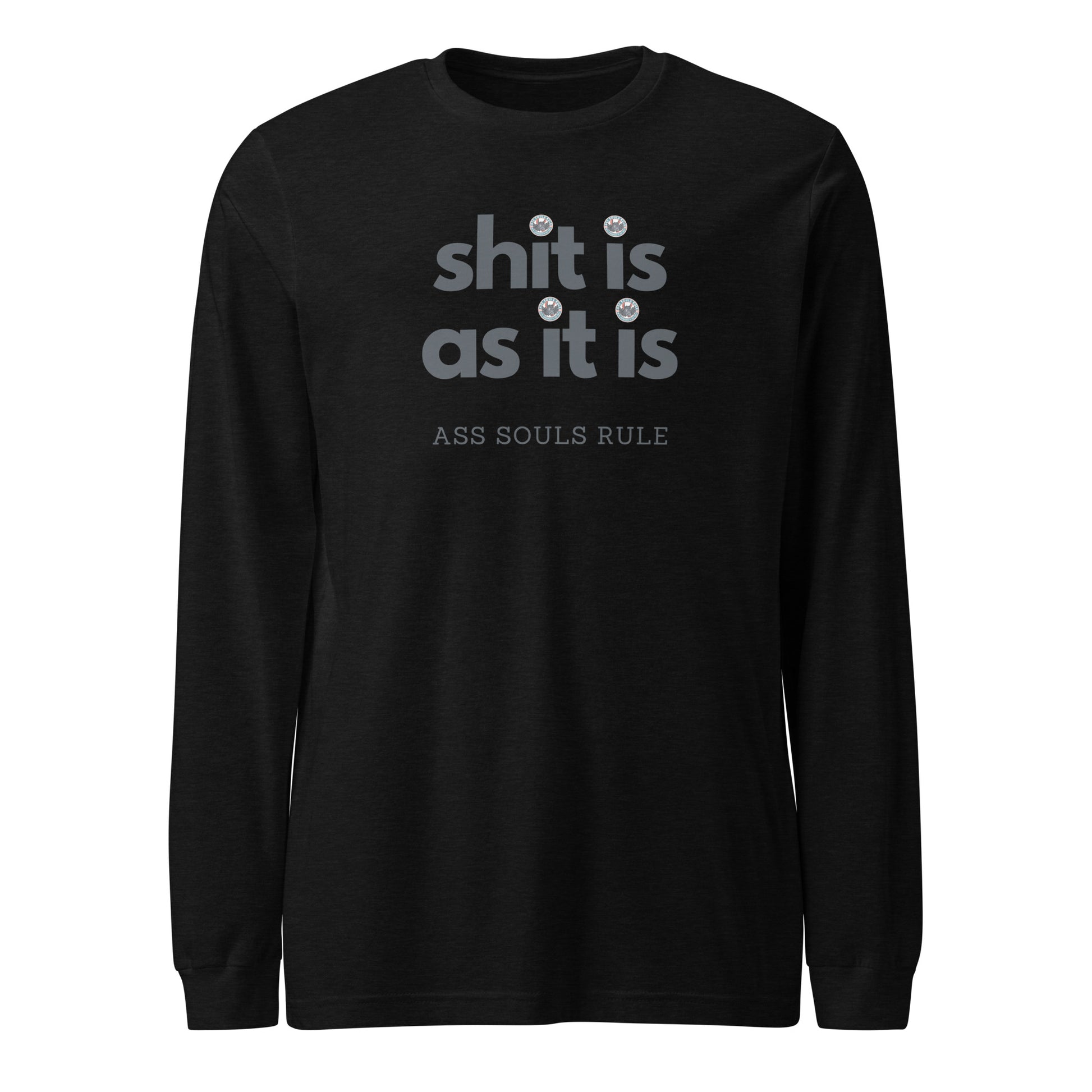Enrich your wardrobe with a versatile ASR long sleeve tee. For a casual look, combine it with your favorite jeans, and layer it with a button-up vest, a zip-up hoodie, or a jean jacket. Dress it up with formal trousers or chinos to achieve a more sort of professional look. Shit Is As It Is.