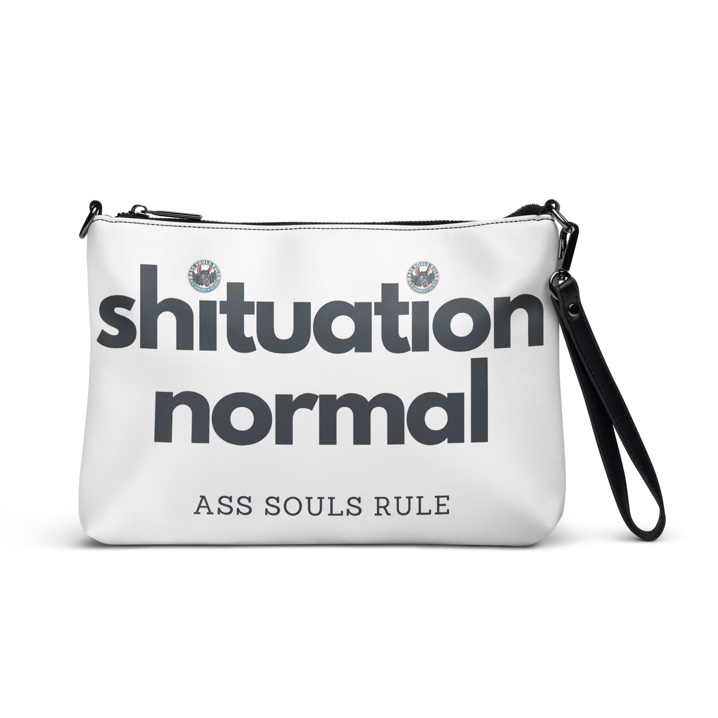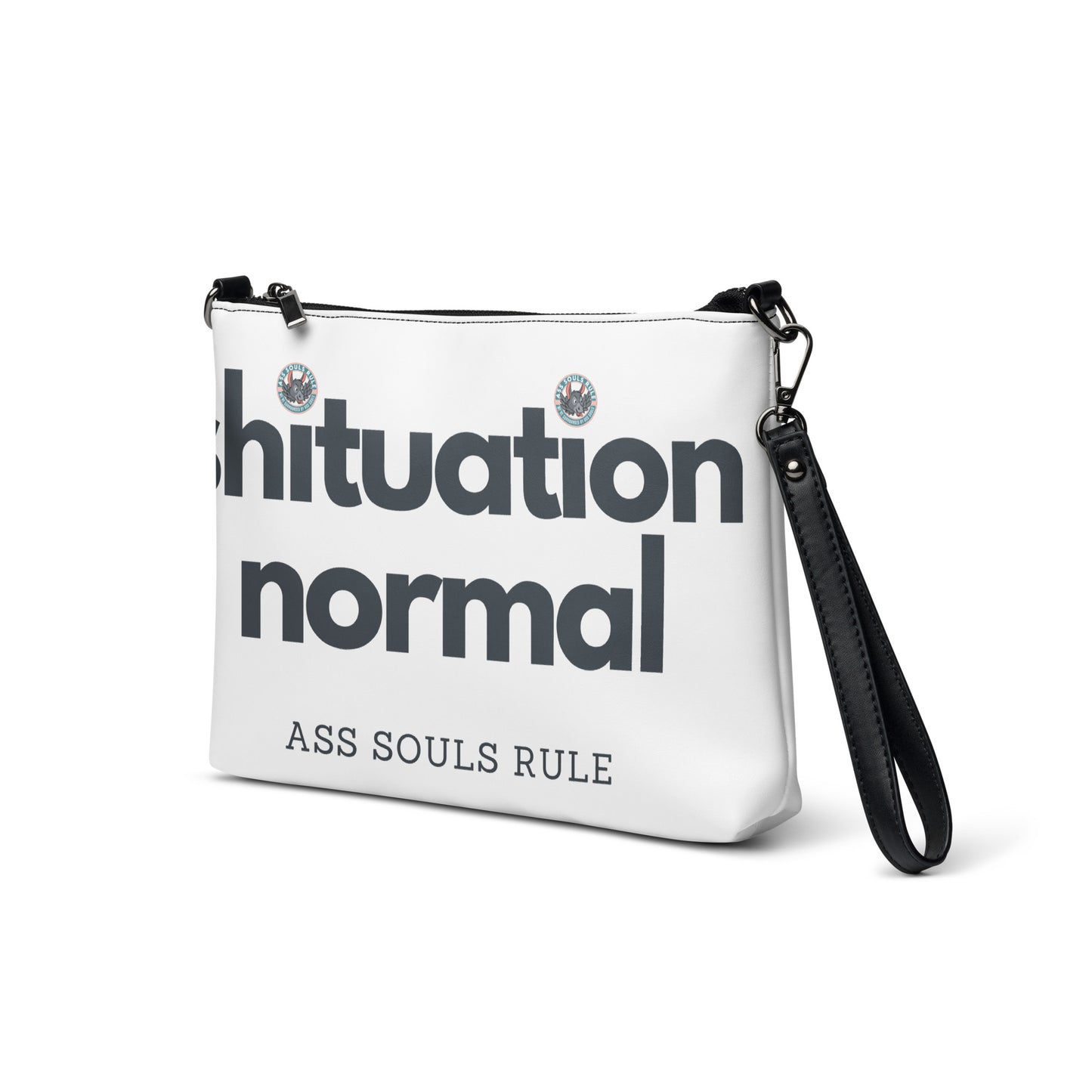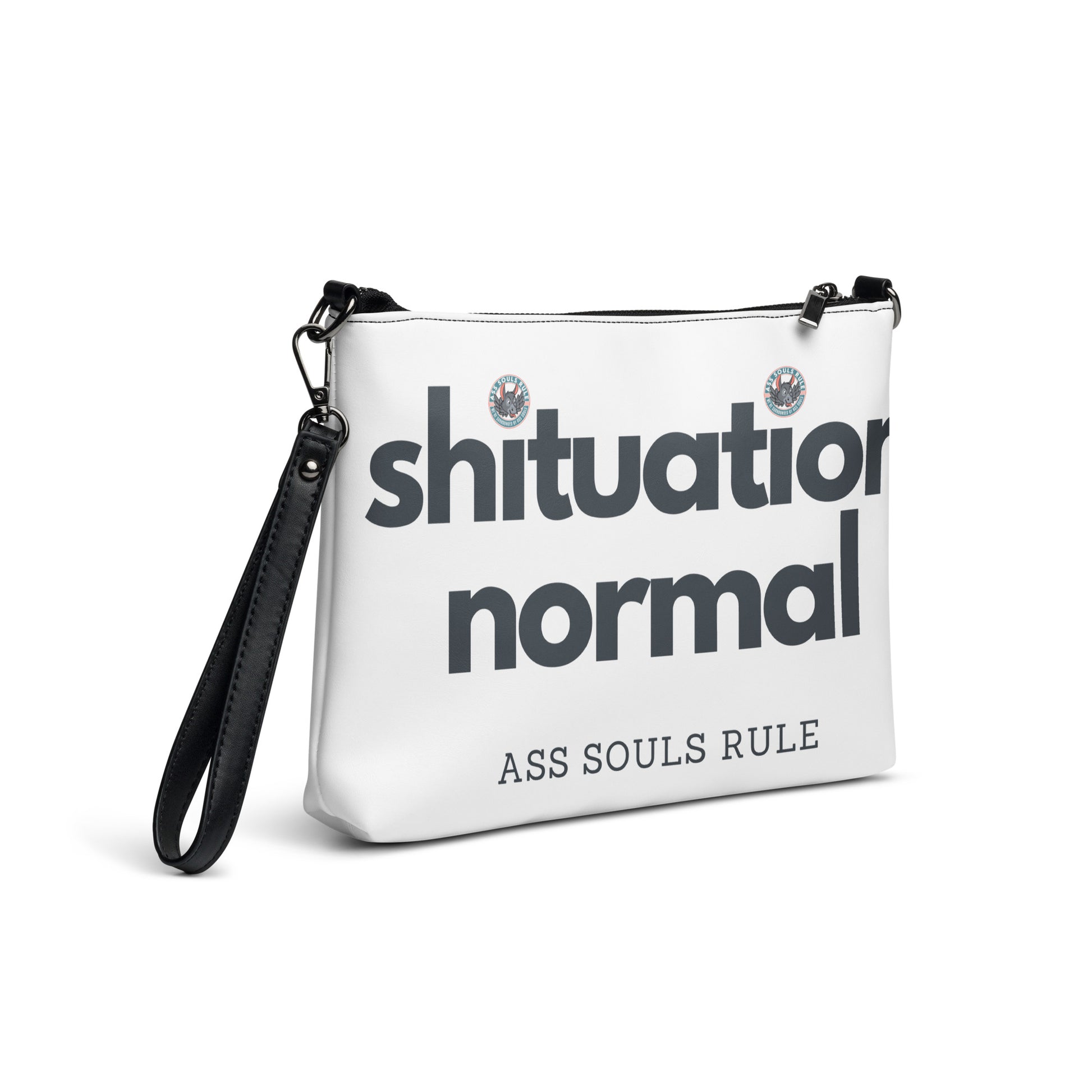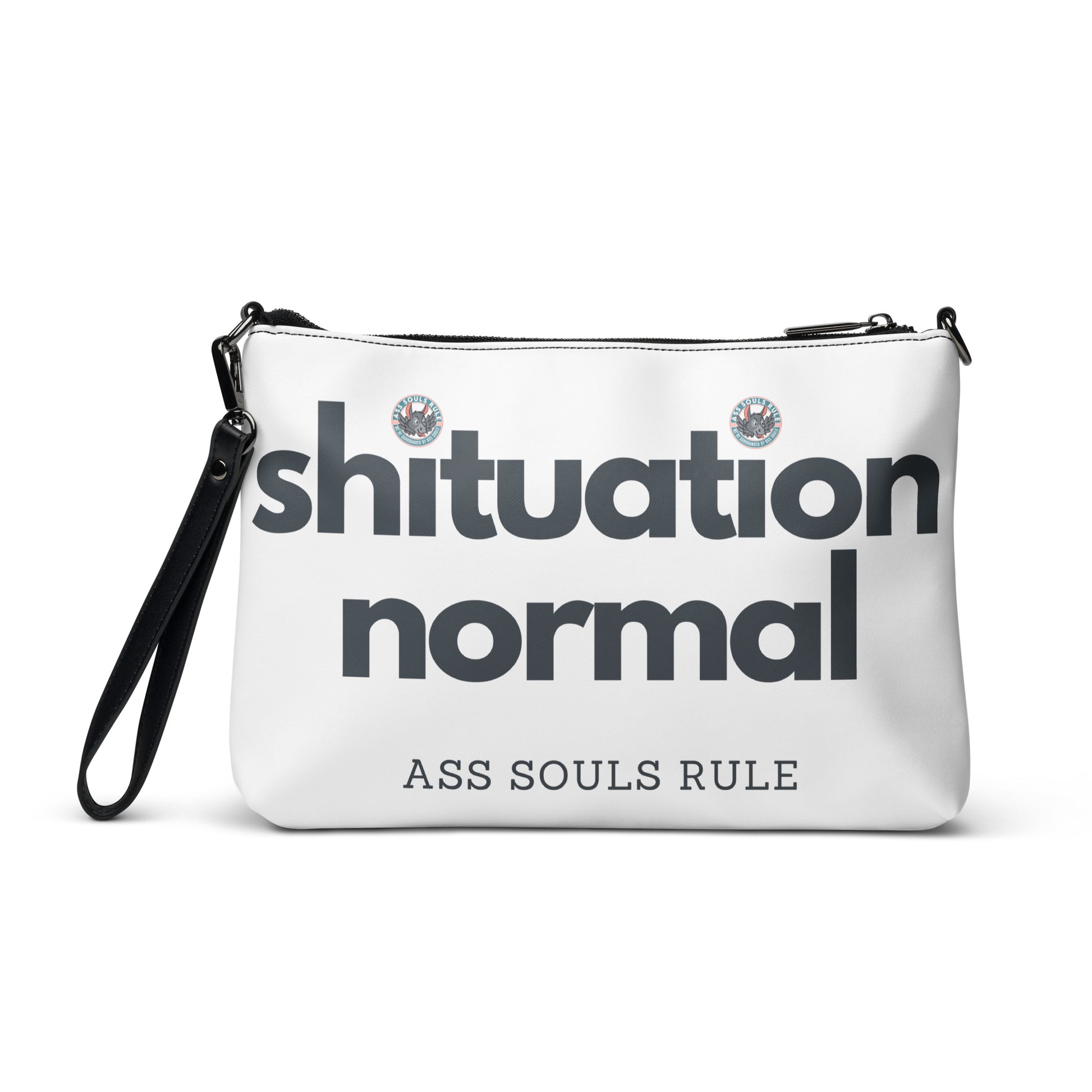 Keep your style Shituationly Normal and your hands free with our versatile crossbody bag. It’s made of premium faux leather and features dark gray hardware. Thanks to the zip-top closure and multiple inside pockets, you can keep your essentials secure and organized in The Game of Life amidst Ass Souls. Transform this crossbody bag with removable wrist and shoulder straps to style it for day-to-night looks.